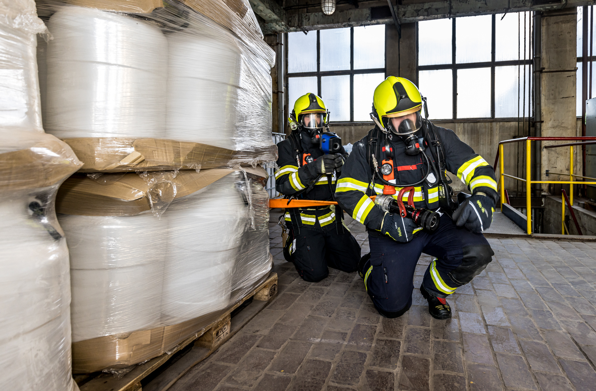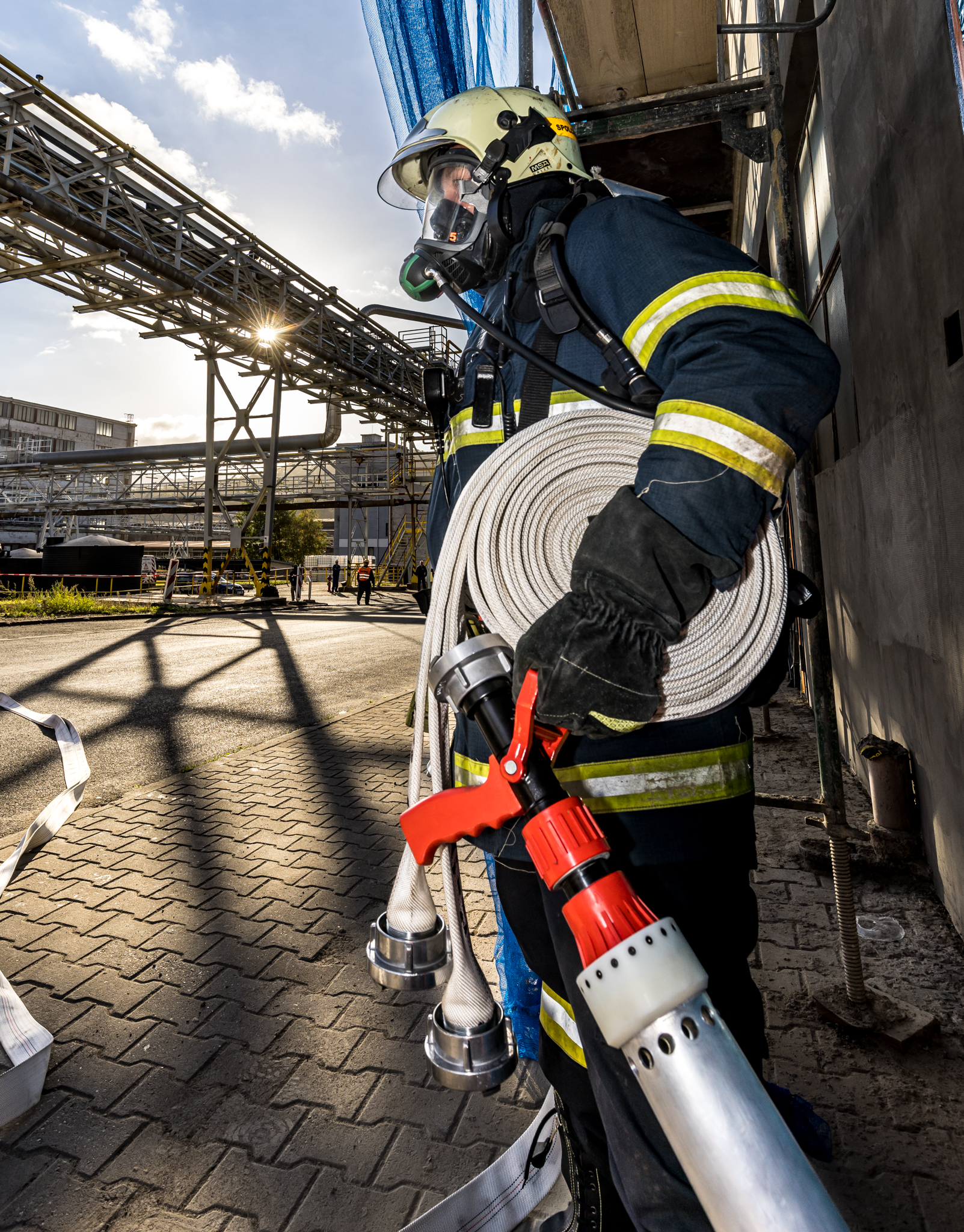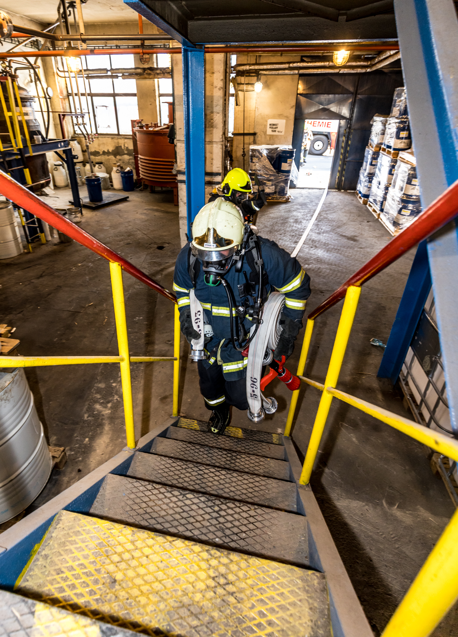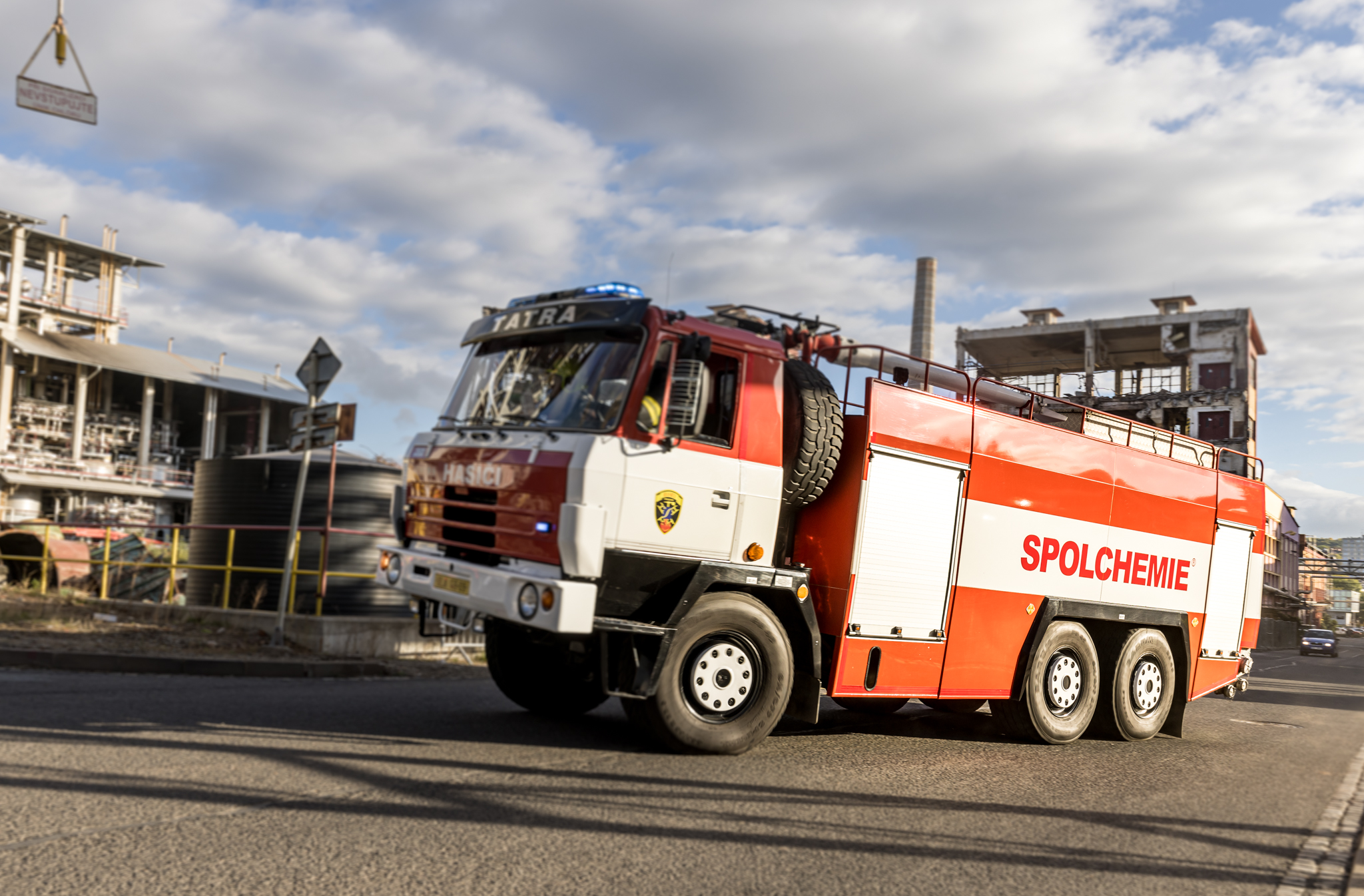Úterního cvičení se zůčastnili vnitropodnikové hasičské jednotky a HSZ Ústí nad Labem