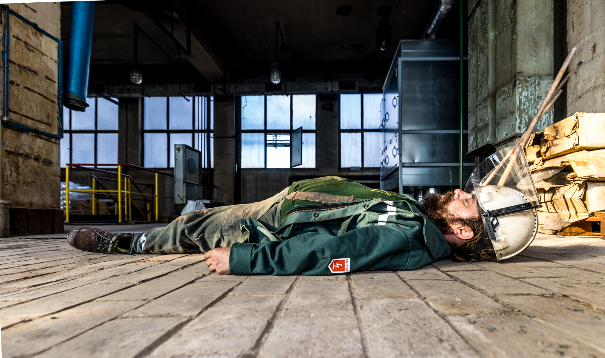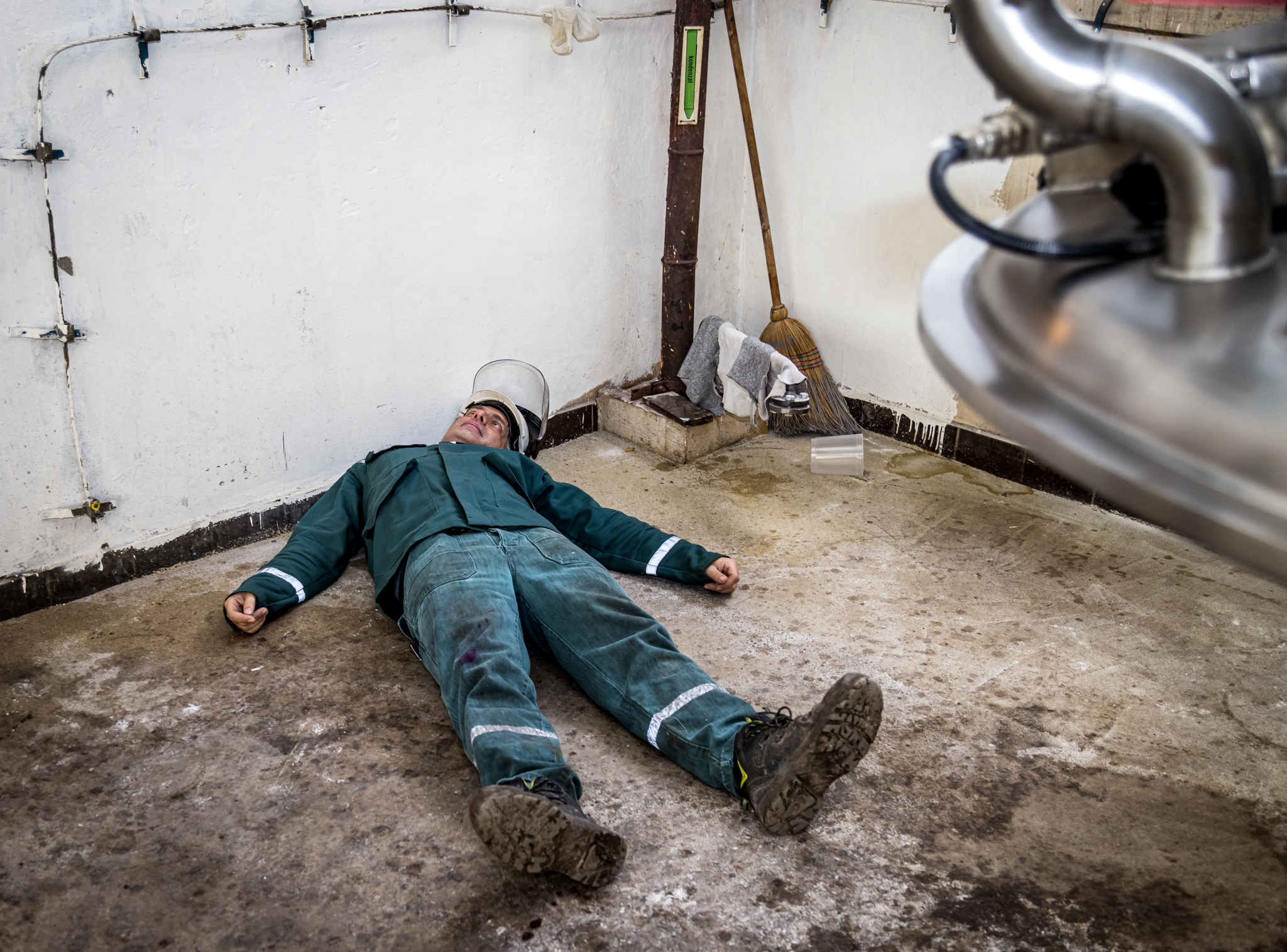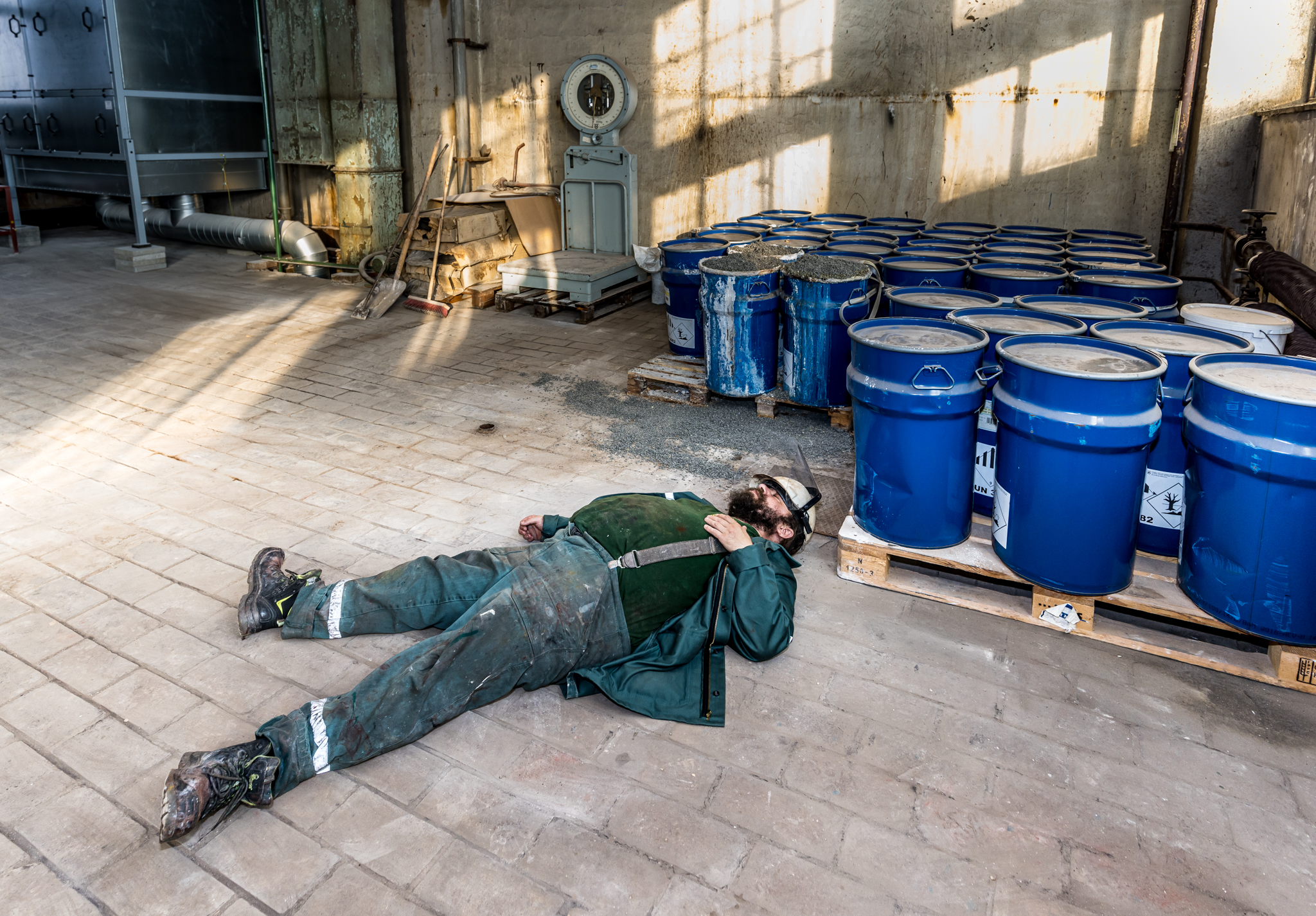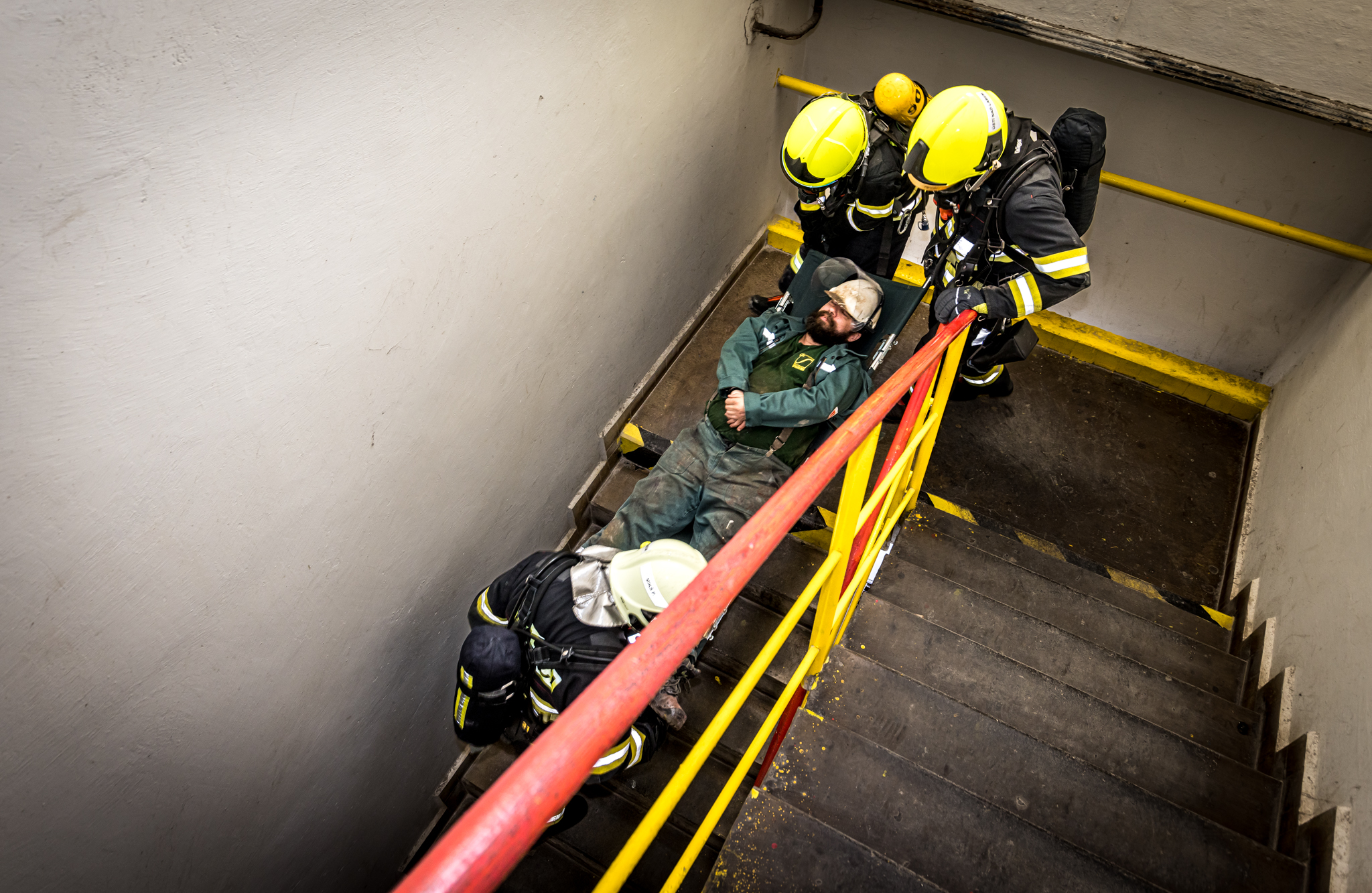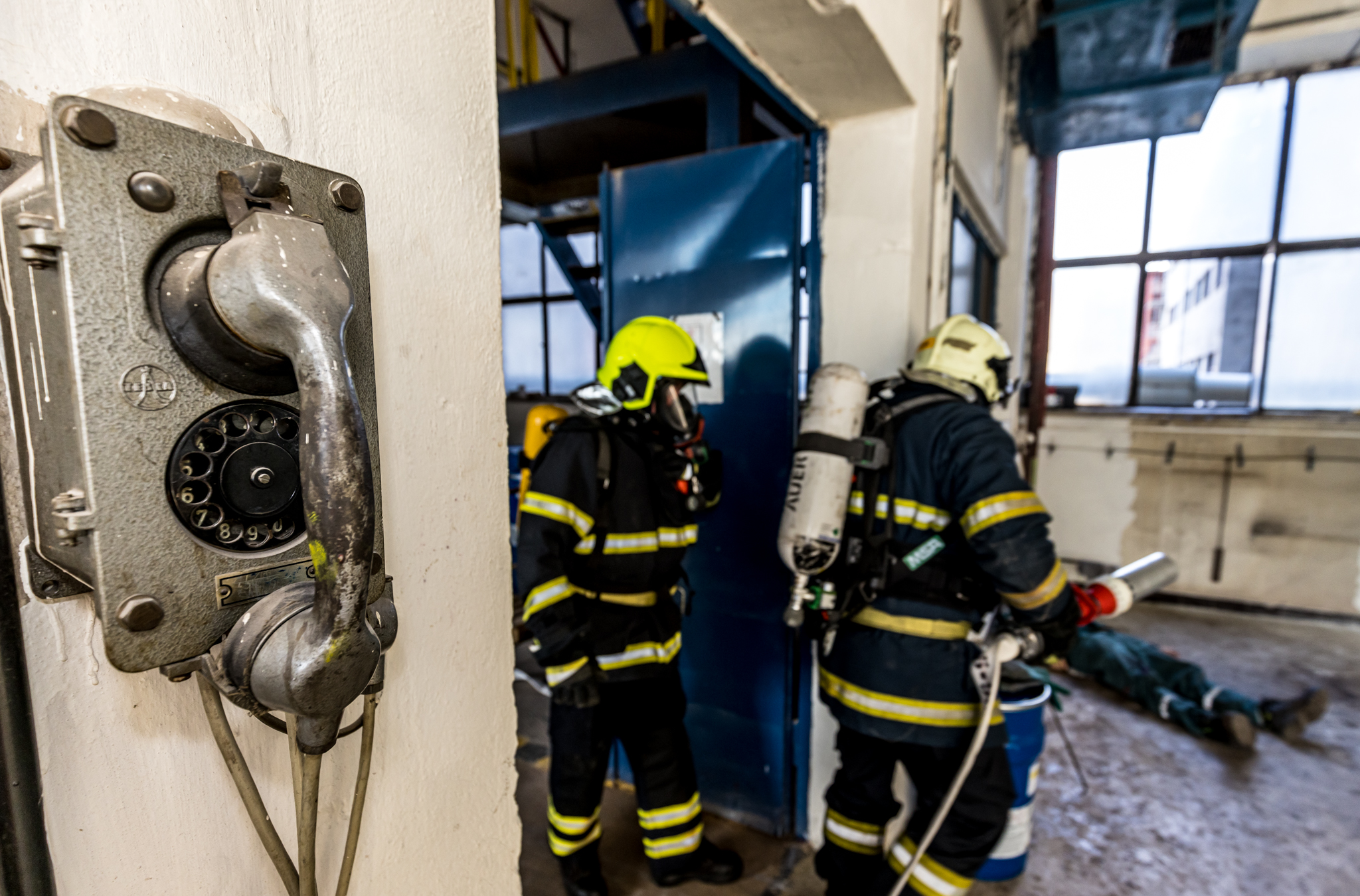 Jeden pracovník se nachází poblíž dissolveru v 2.NP a další pracovník se zraní při kontrole filtrační jednotky ventilace v 3.NP.