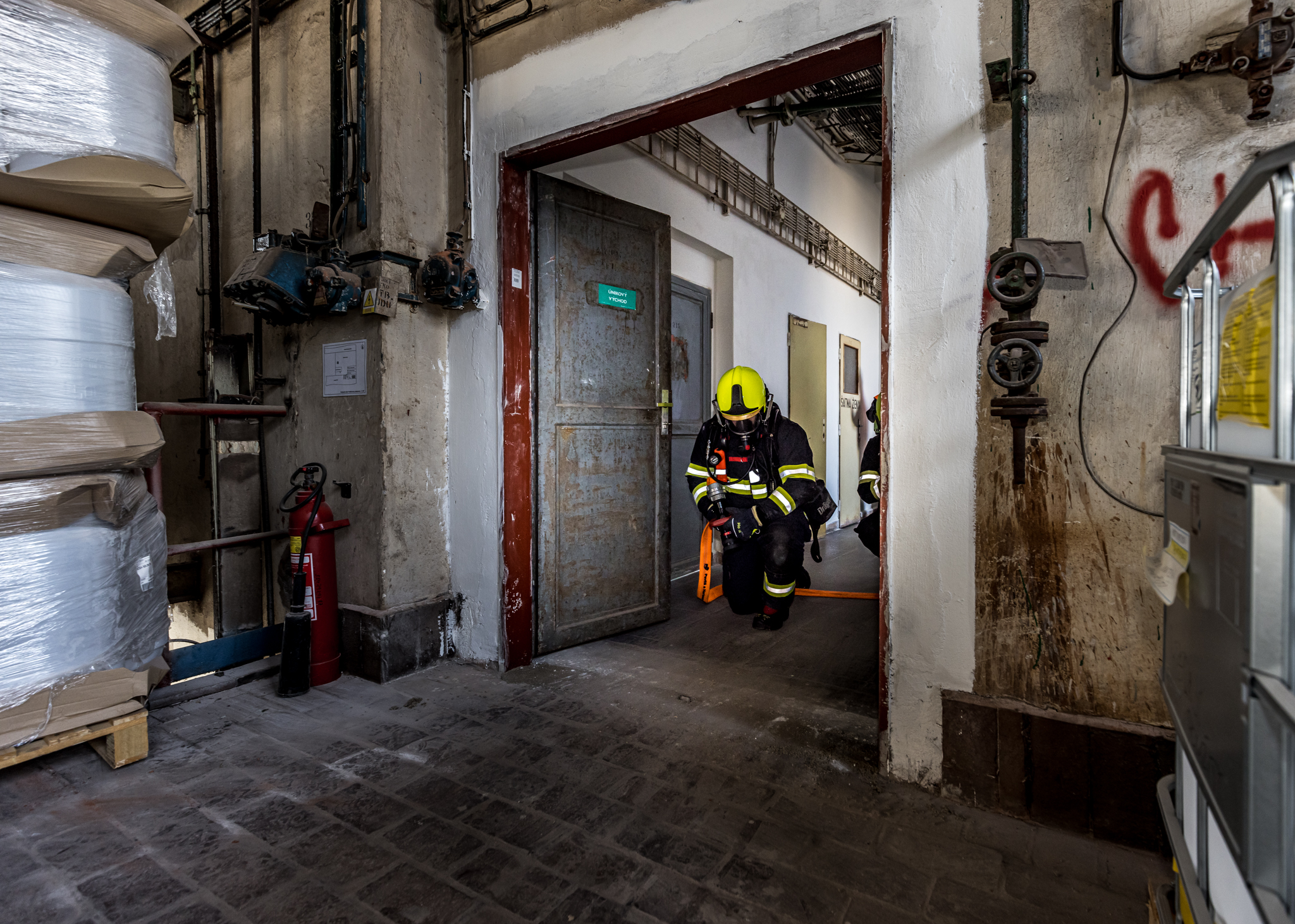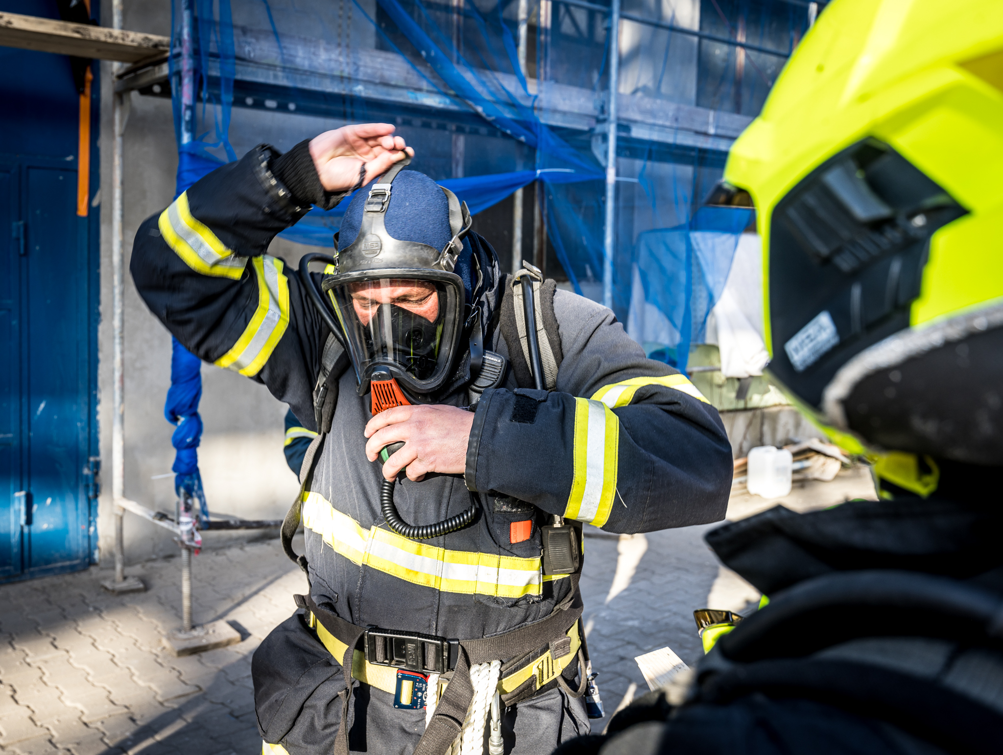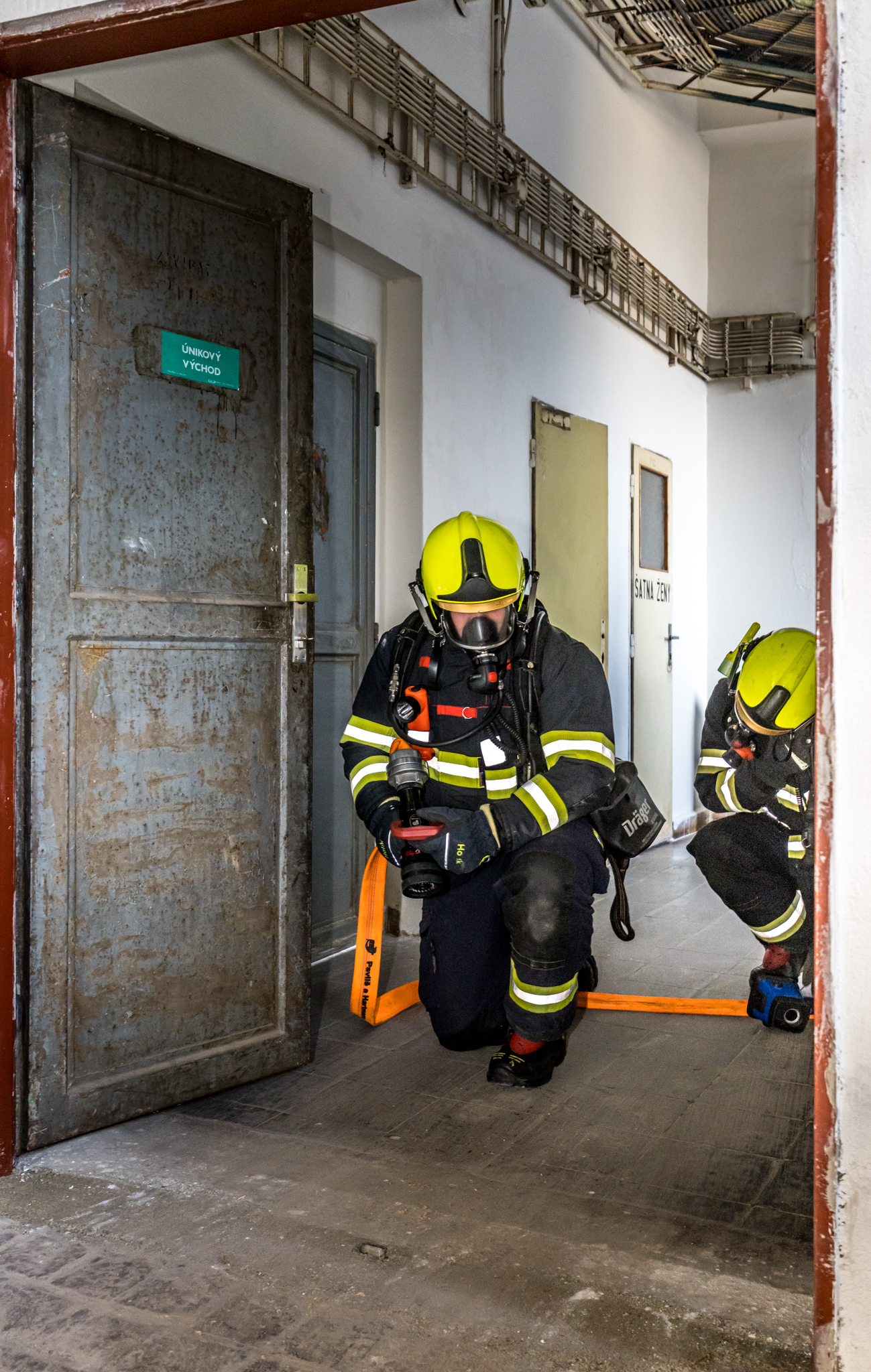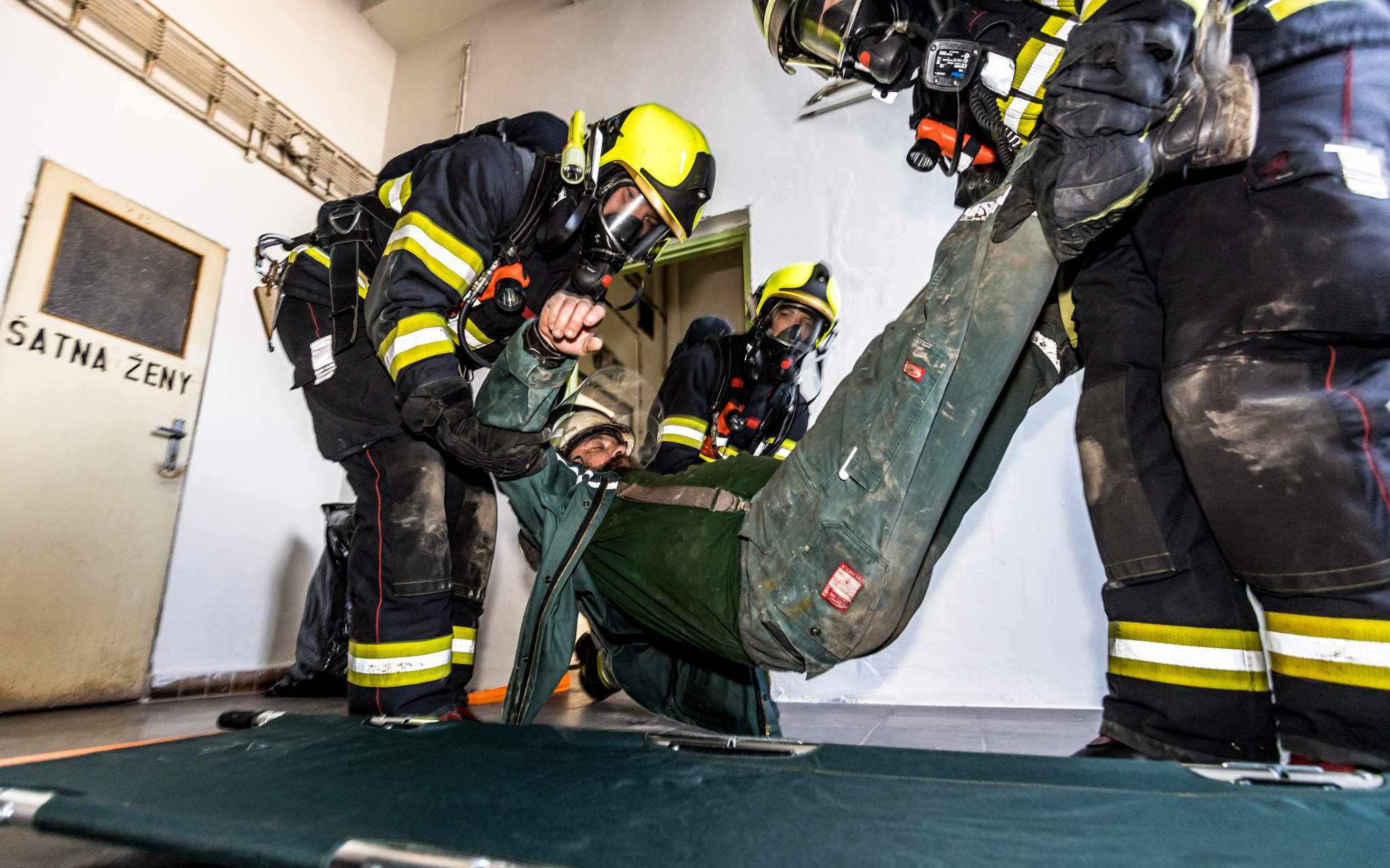 Námět cvičení: Téma cvičení byla likvidace požáru ve vícepodlažní budově, vyhledávání a záchrana osob.