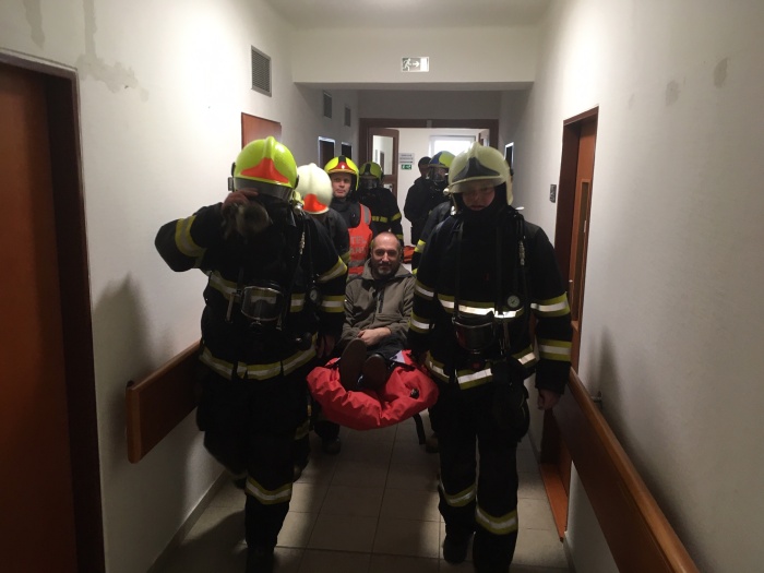 Hasiči si vyzkoušeli spolupráci se zaměstnanci, vyhledávání osob v zakouřeném prostředí, jejich záchranu pomocí automobilové plošiny AP27, záchranu zraněného s použitím vakuových nosítek, dosažitelnost nástupních ploch, vnitřní systém únikových cest, automatiku dveří apod...