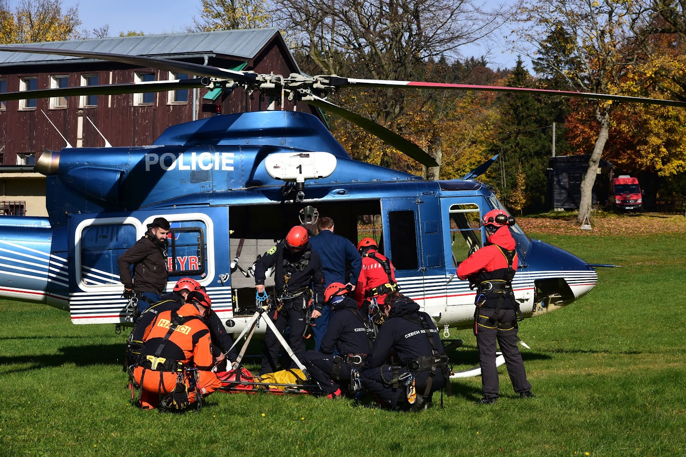 Letečtí záchranáři HZS hl. m. Praha uskutečnili tři výcviky s letkou Policie ČR s cílem cvičit více modelových situací záchrany osob v horském terénu za pomoci jeřábování s vrtulníkem Bell 412.