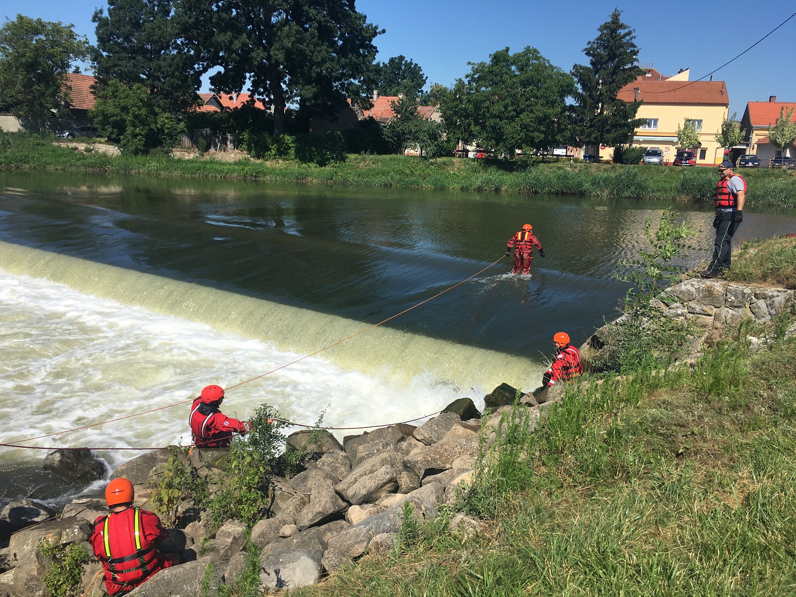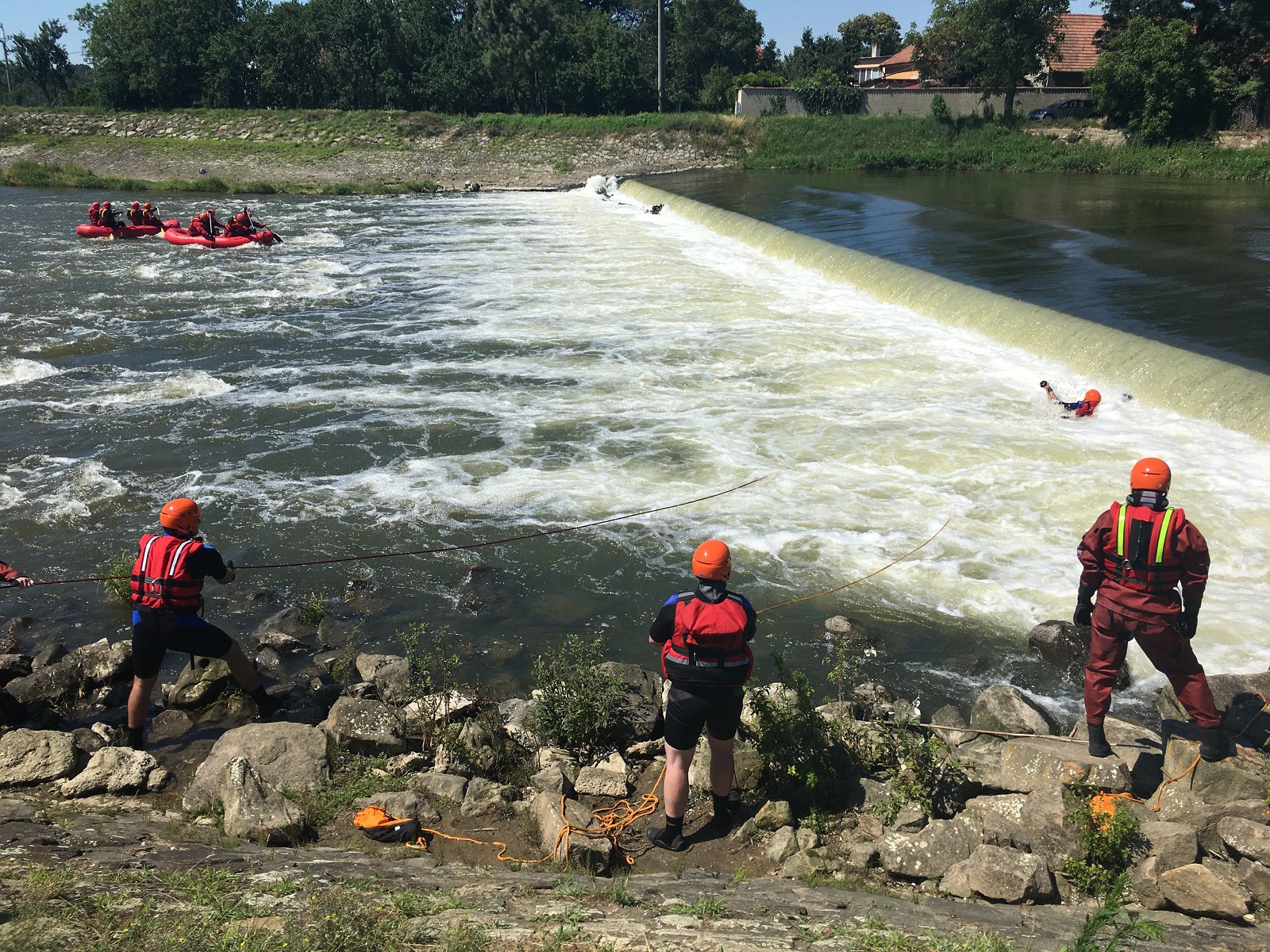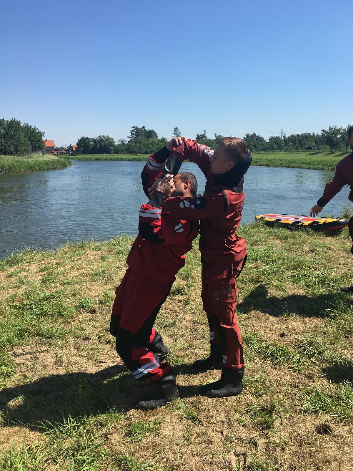 První stanoviště bylo zaměřeno na záchranu osob z divoké vody. Zde se hasiči zdokonalovali v záchraně osob z břehu pomocí házecích pytlíků a dalších prostředků z výbavy profesionálních hasičů. Následně byla prováděna přímá záchrana z prostoru jezu, což bylo díky zvýšenému průtoku vody v řece velmi náročné. Hasiči si také osobně přímo vyzkoušeli, jaké to je, když jsou uvězněni ve vodním válci pod jezem a že bez řádného záchranářského vybavení je téměř nemožné se z tohoto prostoru dostat svépomocí.