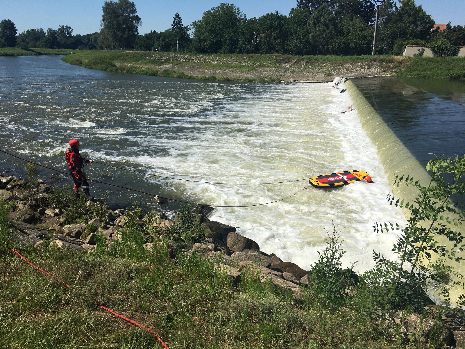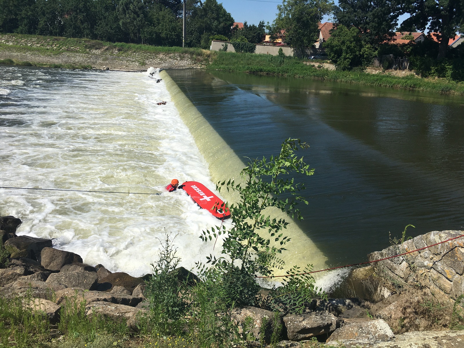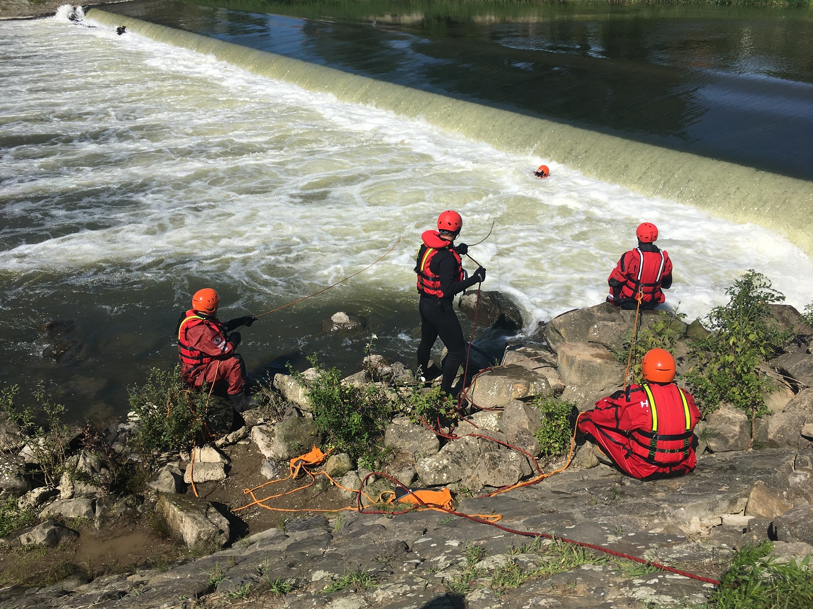 První stanoviště bylo zaměřeno na záchranu osob z divoké vody. Zde se hasiči zdokonalovali v záchraně osob z břehu pomocí házecích pytlíků a dalších prostředků z výbavy profesionálních hasičů. Následně byla prováděna přímá záchrana z prostoru jezu, což bylo díky zvýšenému průtoku vody v řece velmi náročné. Hasiči si také osobně přímo vyzkoušeli, jaké to je, když jsou uvězněni ve vodním válci pod jezem a že bez řádného záchranářského vybavení je téměř nemožné se z tohoto prostoru dostat svépomocí.