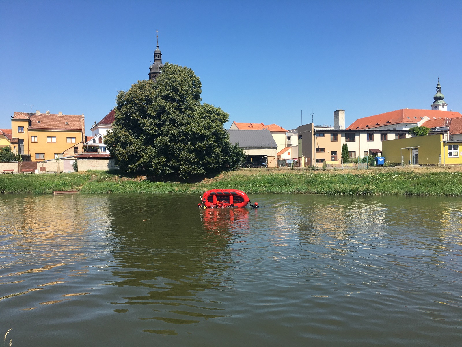 V pátek 10. 7. 2020 proběhl na řece Moravě poblíž plavební komory v Uherském Ostrohu výcvik příslušníků HZS Zlínského kraje, při kterém hasiči trénovali práci na vodě a záchranu tonoucích osob.