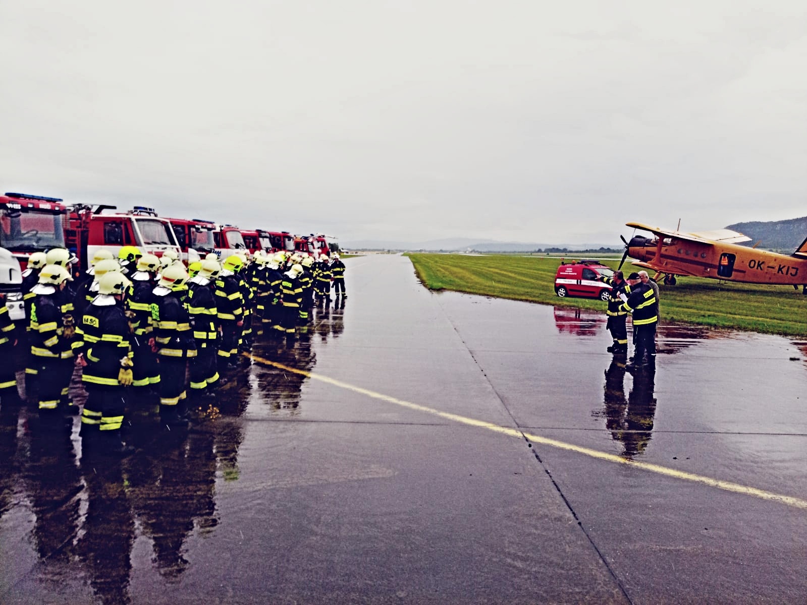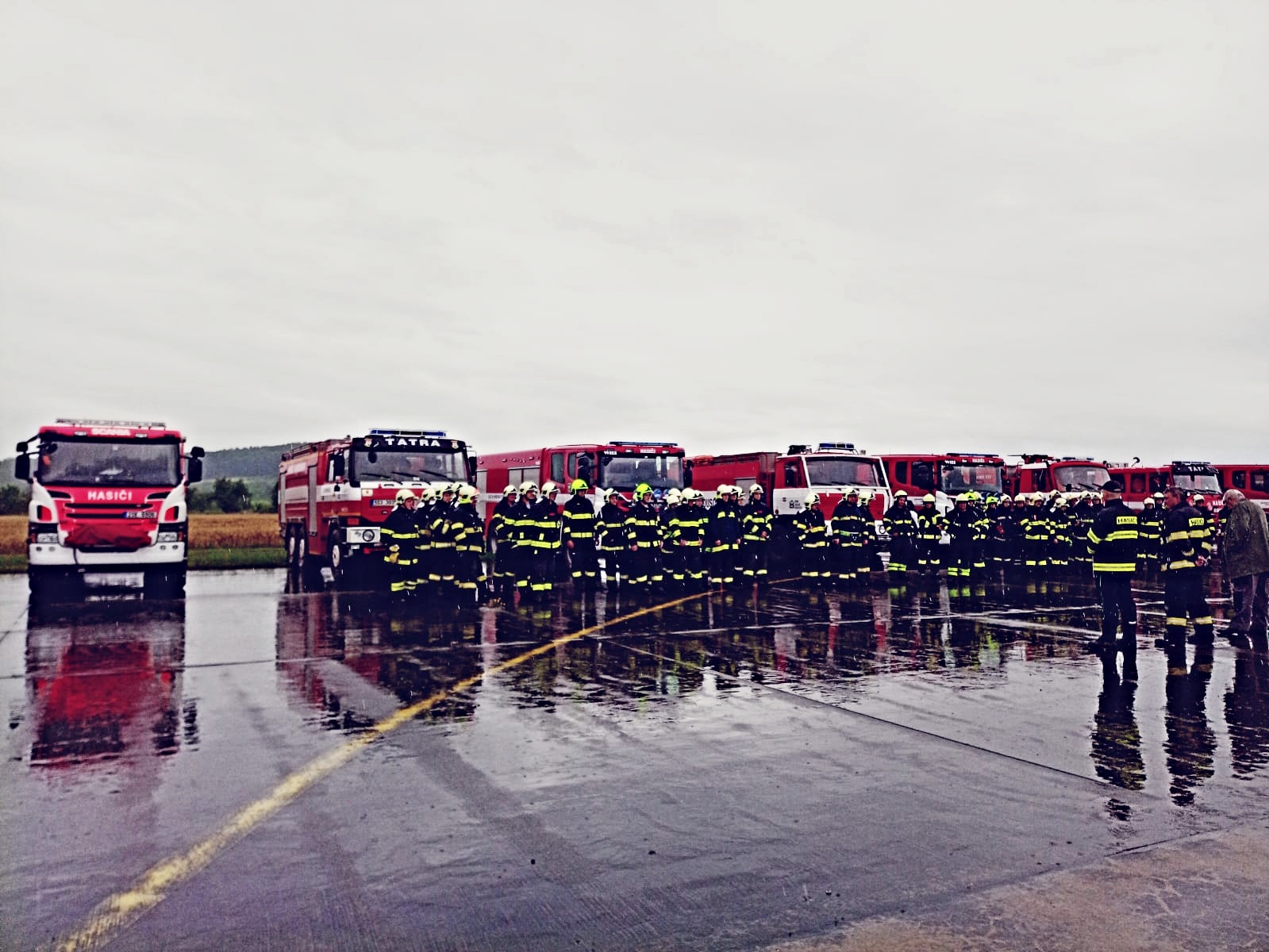 Profesionální i dobrovolné jednotky procvičovaly plnění hasičského letadla