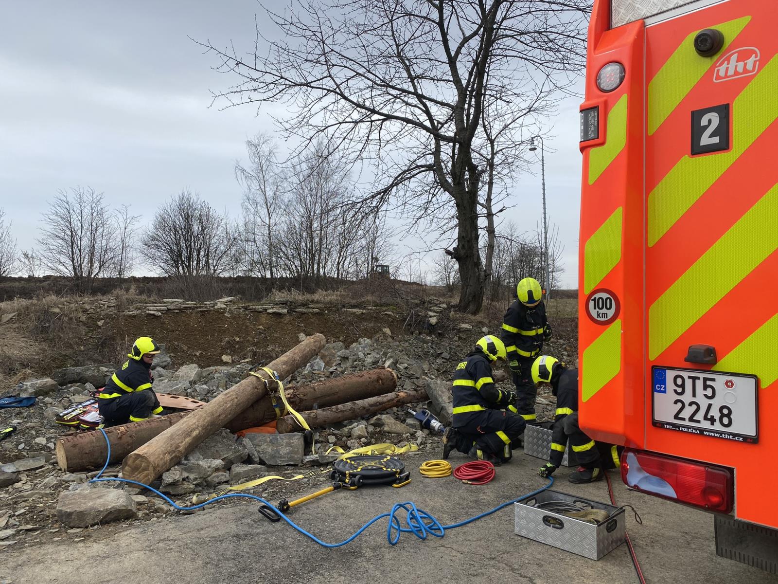Hasiči při výcviku použili hydraulické vyprošťovací zařízení, pneumatické zvedací vaky, stabilizační prostředky a páteřovou desku.