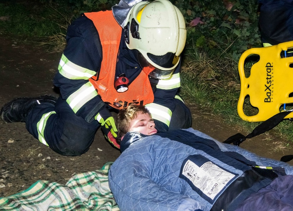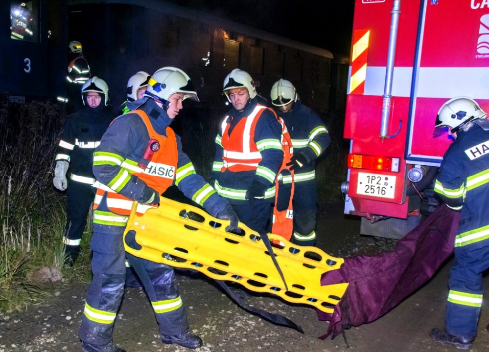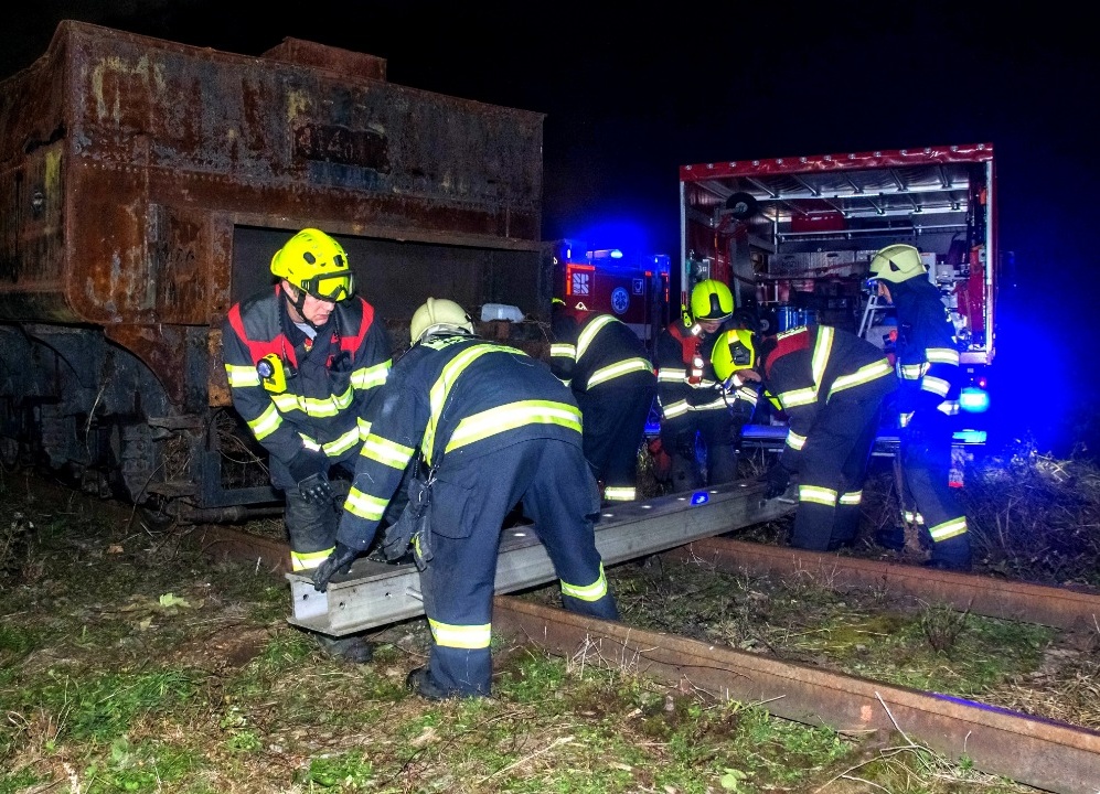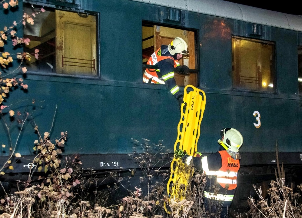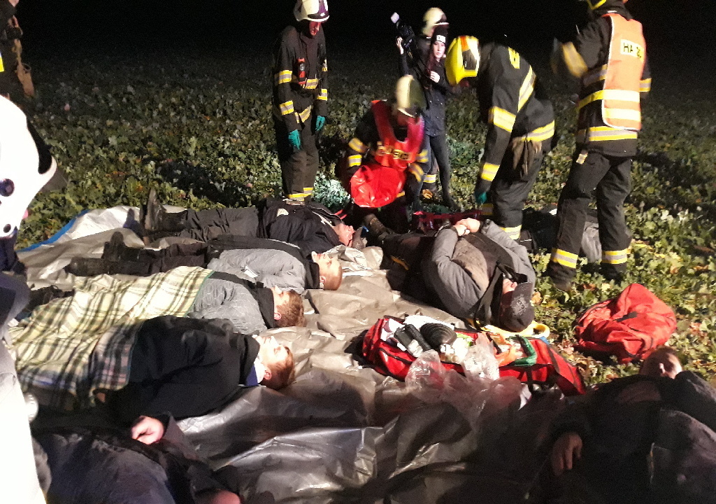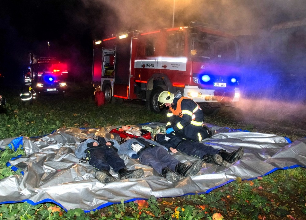 Další část hasičů prováděla průzkum a zachraňovala z vagonů 10 „zraněných“ osob. Kromě toho bylo zapotřebí nasvítit místo zásahu, protože se celé cvičení odehrávalo již za tmy.