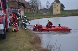 Na Krajské operační středisko bylo oznámeno tonutí dvou osob. Hasiči ze stanice Louny a Bitozeves cvičili 26.1.2021 dopoledne na...