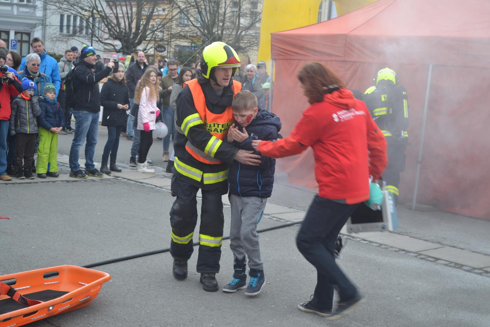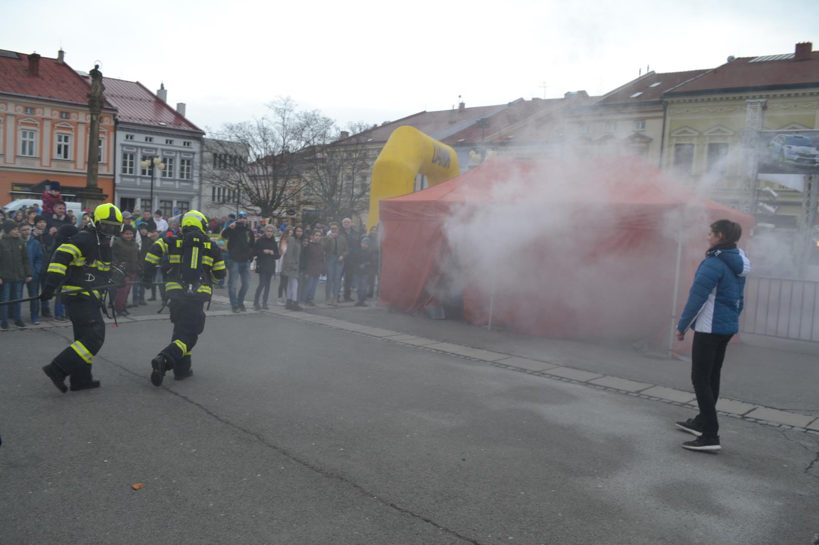Hasiči měli připravenou simulaci požáru, při které divákům předvedli jak postupovat, když v nějakém objektu hoří, jak nahlásit událost na tísňovou linku 150 a jak se chovat do příjezdů hasičů.