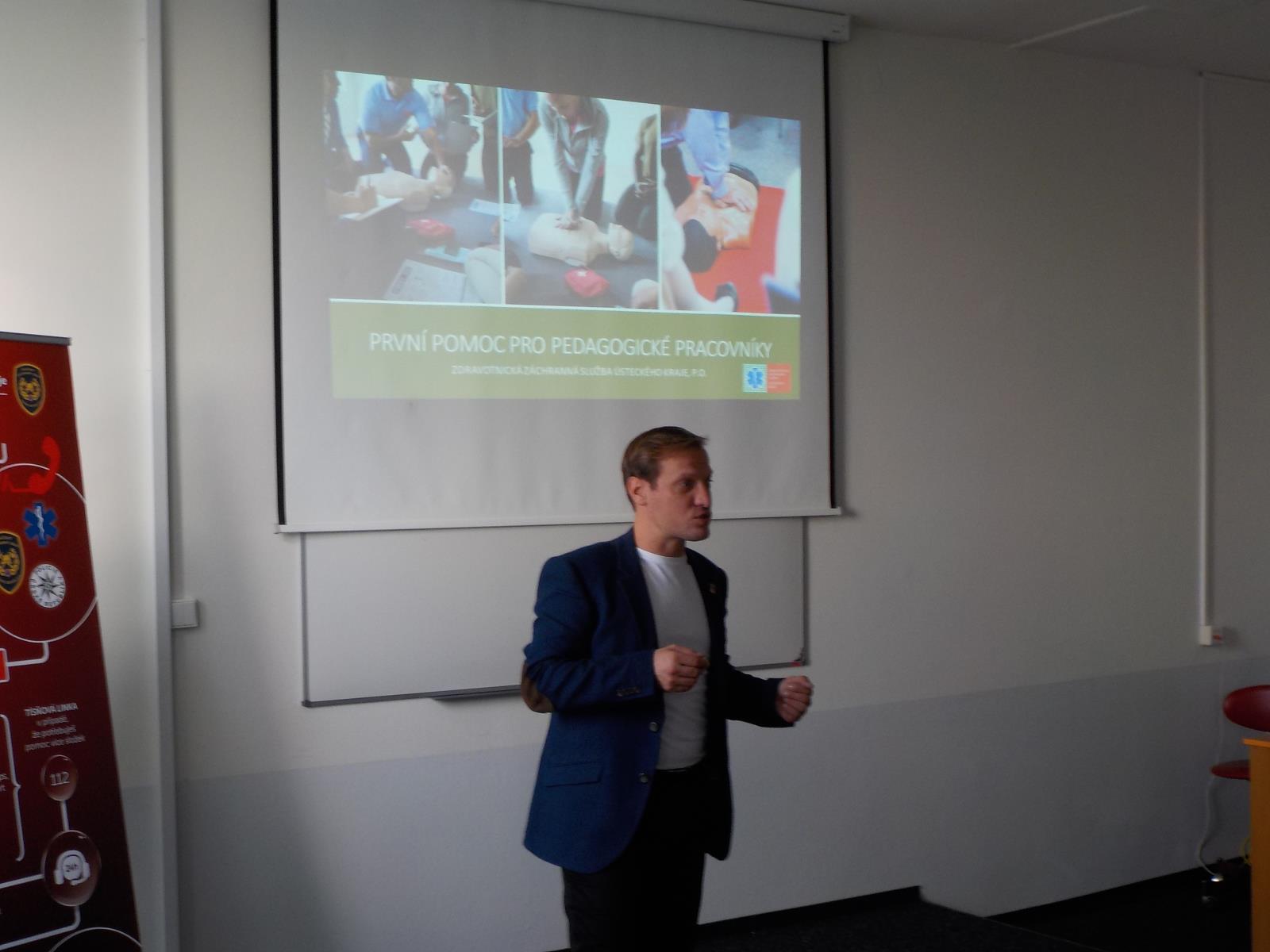 Seminář byl realizován ve spolupráci s pracovníky Zdravotnické záchranné služby Ústeckého kraje. Přítomní pedagogové byli seznámeni s nejnovějším postupem laické resuscitace, včetně odkazů na relevantní výukové podklady dané problematiky.