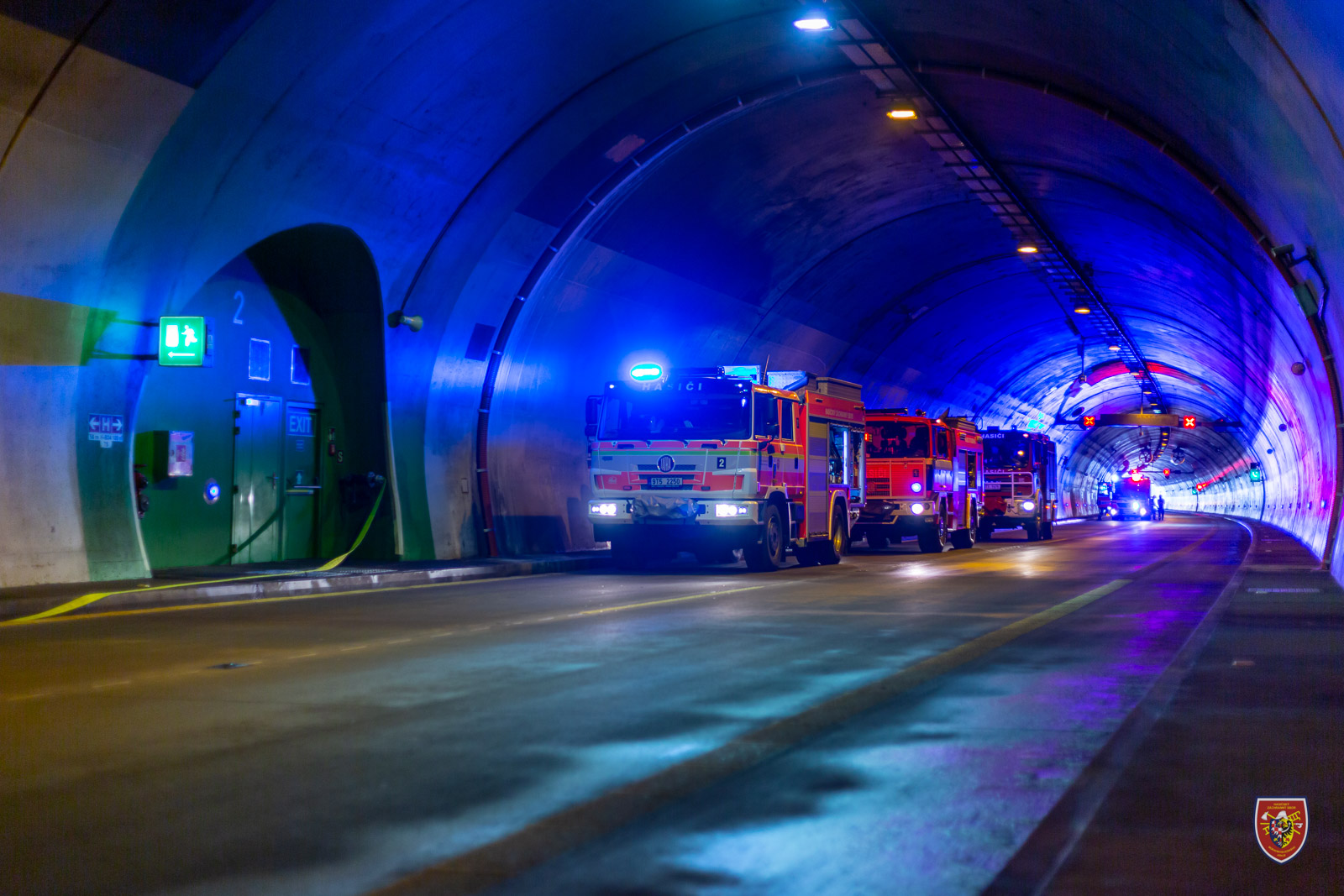 Hasiči jako vždy využili pravidelné servisní práce na této liniové stavbě a v tunelové troubě, ve které byl právě uzavřen silniční provoz, nasimulovali dopravní nehodu osobního a nákladního automobilu.