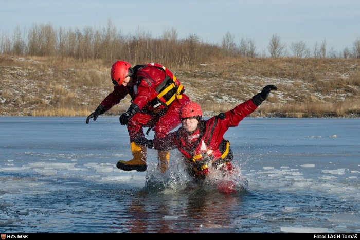 Ostravské jednotky Hasičského záchranného sboru Moravskoslezského kraje (HZS MSK) tak dvakrát trénovaly minulý týden na tajícím ledě umělého jezera na rekultivované haldě v Ostravě-Hrabůvce, kolegové ze stanice Vítkov na nedaleké, ještě dobře zamrzlé vodní ploše Balaton, a například opavští profesionální hasiči v pondělí 25.1.2021 na zdejším Stříbrném jezeře – formou taktického cvičení, spojeného se záchranou tonoucího bruslaře.
