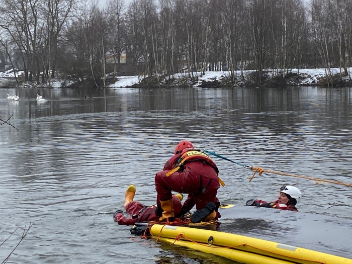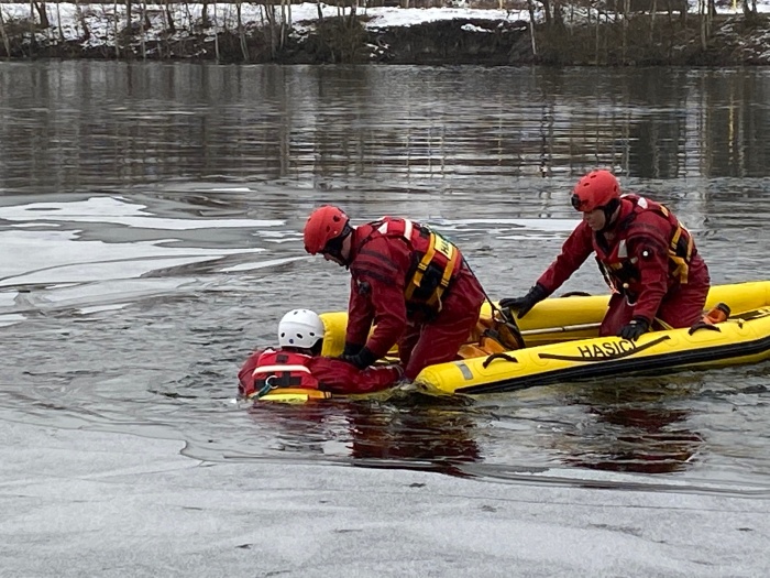 Na několik vodních plochách v Moravskoslezském kraji měli profesionální hasiči (z HZS MSK) ve druhé polovině ledna 2021 konečně možnost – díky předchozím vydatným mrazům – praktického výcviku záchrany bruslařů a dalších osob, pod nimiž se propadl nedostatečně silný led.