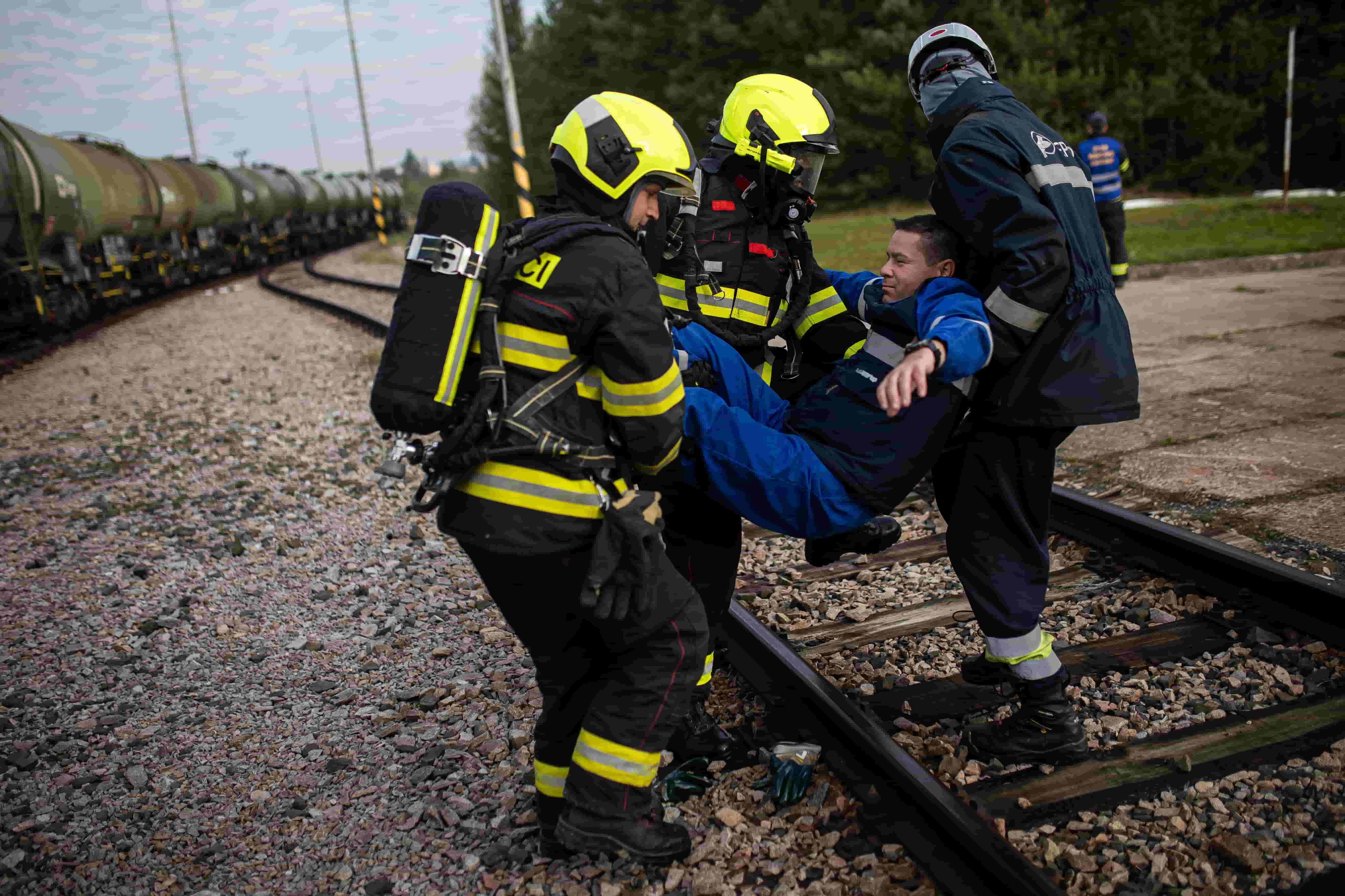 Modelová situace vycházela z reálného rizika: při posunu železniční soupravy došlo k vykolejení a poškození cisteren s pohonnými hmotami, které začaly unikat a následně vzplály. V důsledku události byla zraněna obsluha, což vyžadovalo zásah zdravotníků.