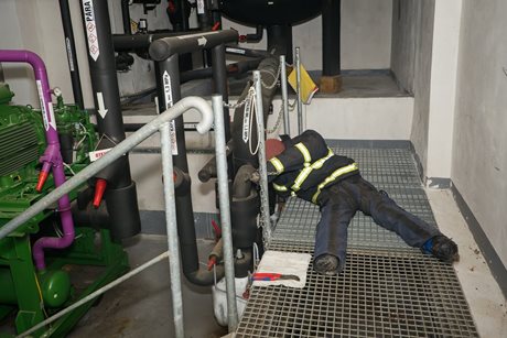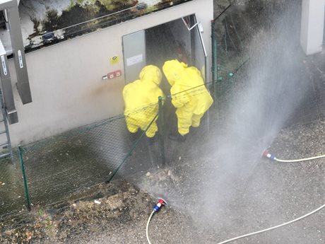 V blízkosti stadionu bylo zřízeno dekontaminační stanoviště s nafukovacím stanem, které sloužilo pro očištění zasahujících i lehce zraněných. Jeden z figurantů představoval pracovníka, který se při zásahu „udusil“ výpary čpavku – lékař pak po dekontaminaci konstatoval jeho „úmrtí“, což bylo součástí scénáře.