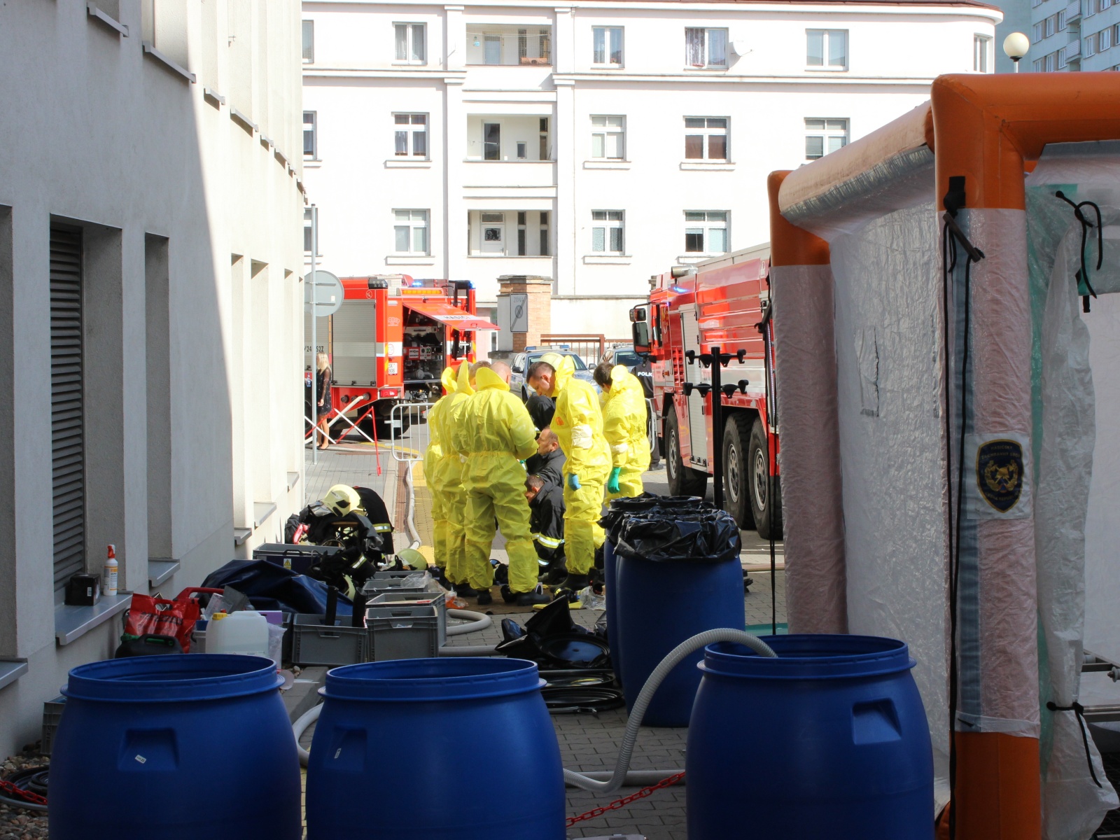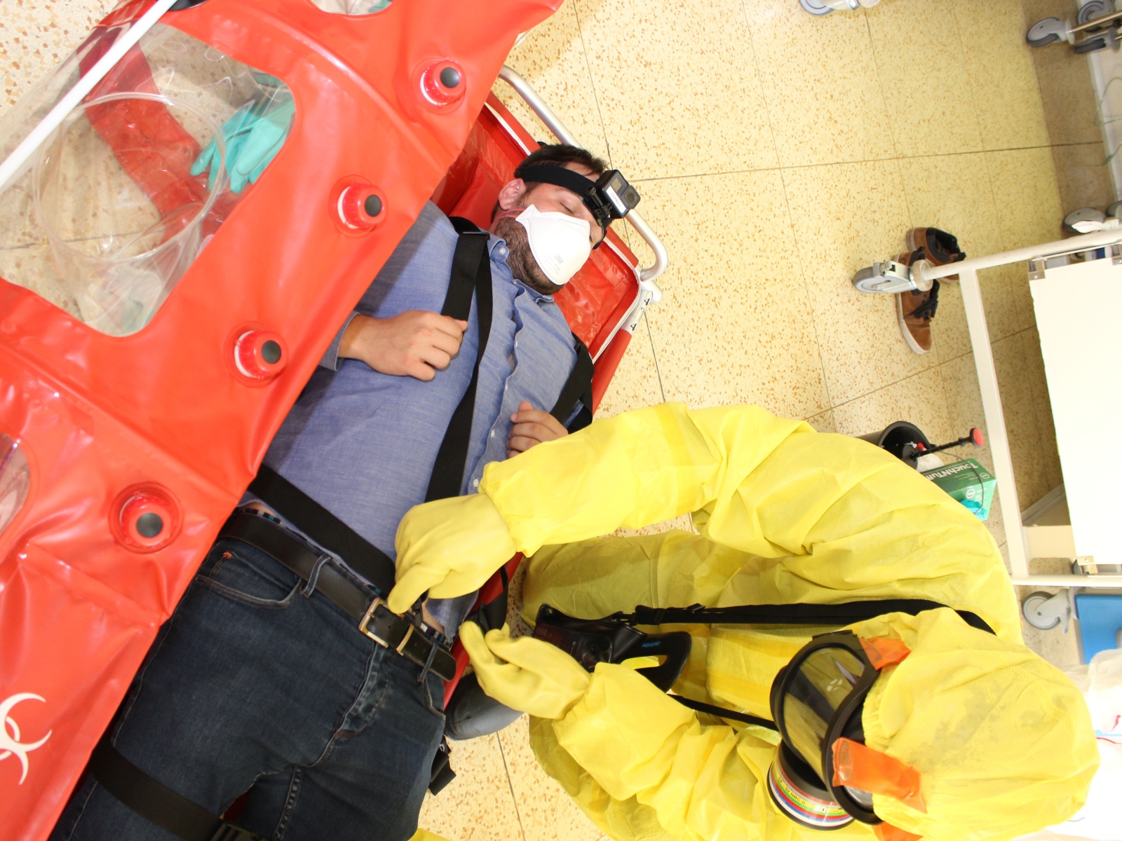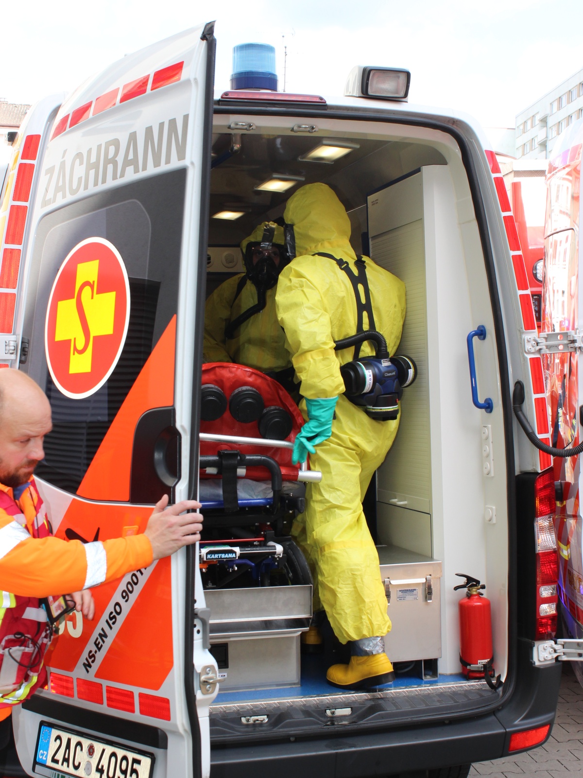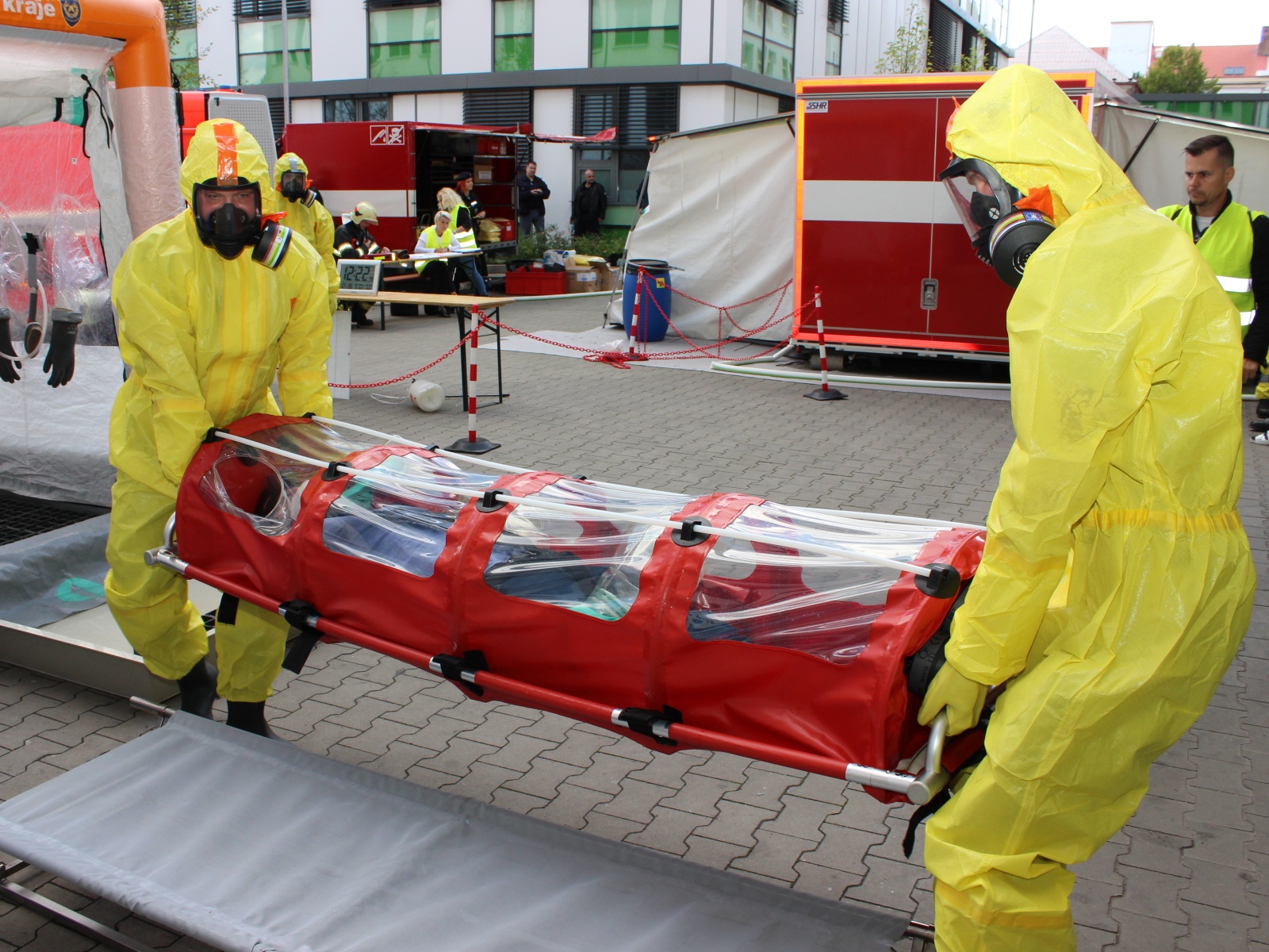 Po ustavení dekontaminačního stanoviště se jednotliví hasiči oblékli do ochranných obleků a vydali se do ordinace, odkud nejprve odvedli osoby z čekárny a následně i zdravotnický personál, který se zasaženou osobou přišel do styku. Nakonec vynesli ve speciálním biovaku nakaženého muže, kterého v tomto vaku také dekontaminovali a následně předali k transportu do cílového zařízení.