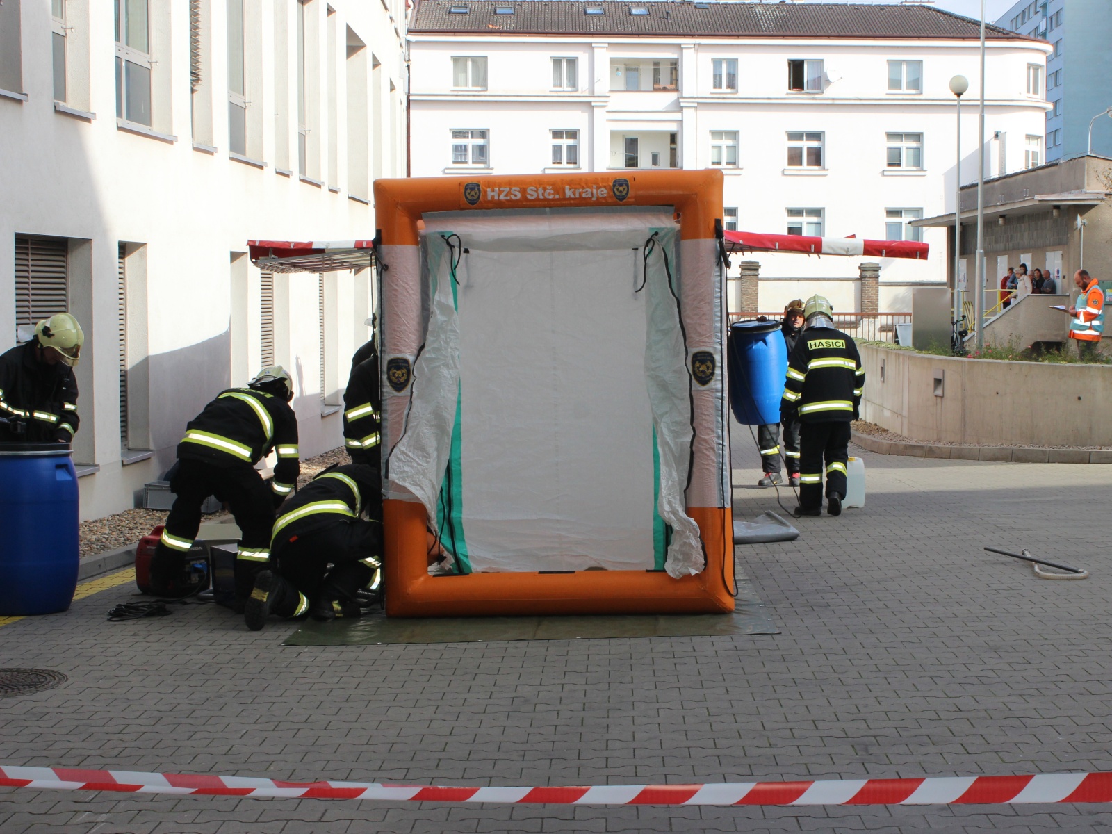 Takový byl námět taktického cvičení složek IZS, které proběhlo v Klaudiánově nemocnici v Mladé Boleslavi. K události se sjely všechny složky, které jsou podle typové činnosti na takový zásah předurčené. Krajské operační a informační středisko Hasičského záchranného sboru Středočeského kraje povolalo profesionální jednotky ze stanic HZS Mělník, Mladá Boleslav, Říčany a Stará Boleslav.