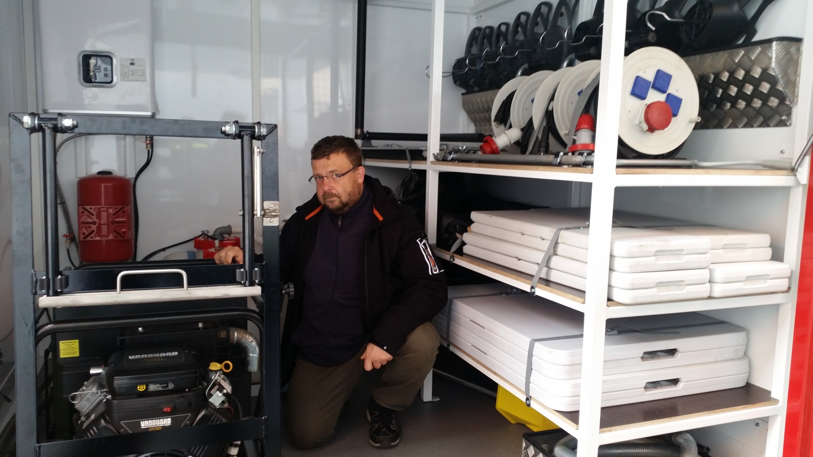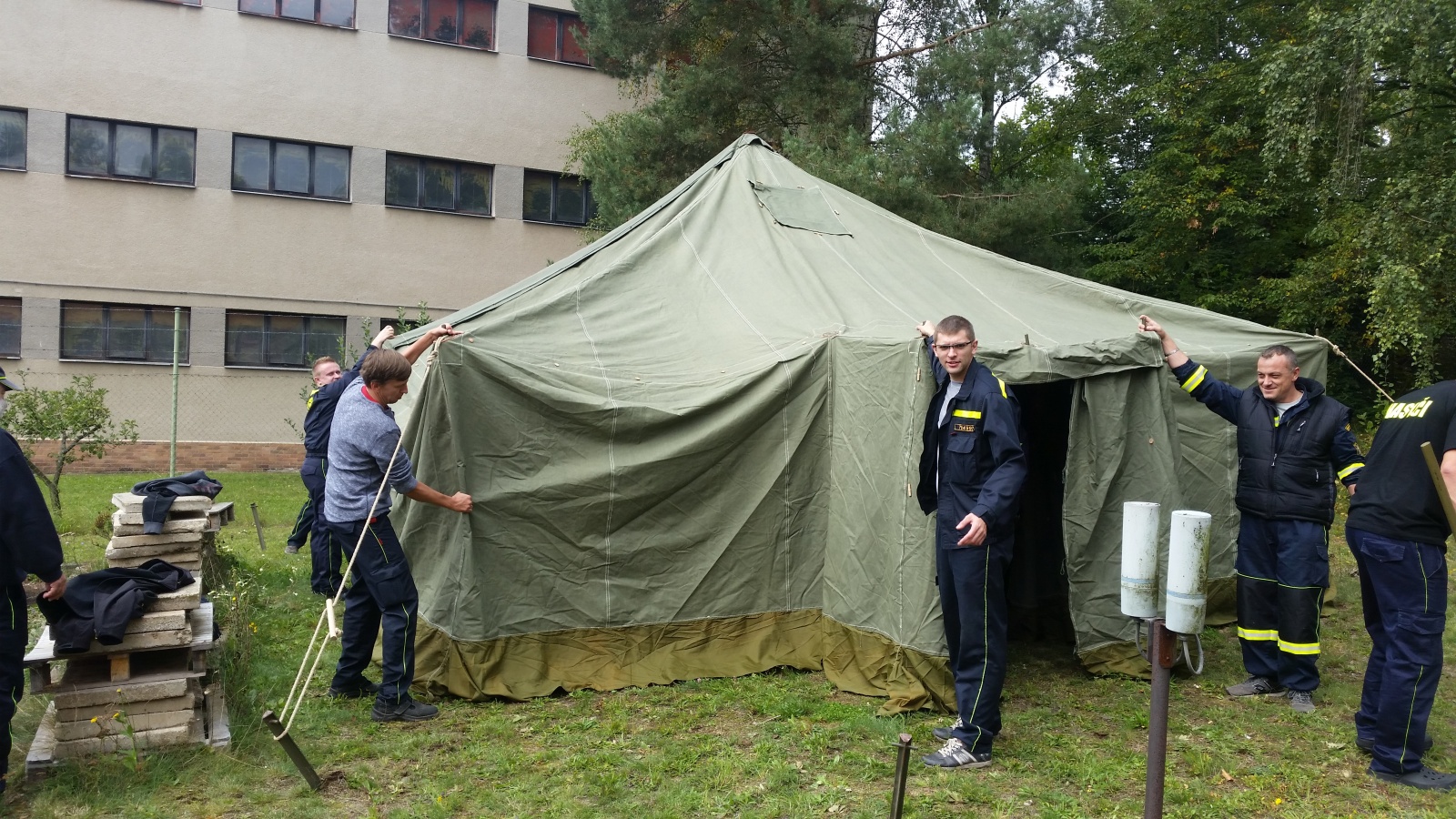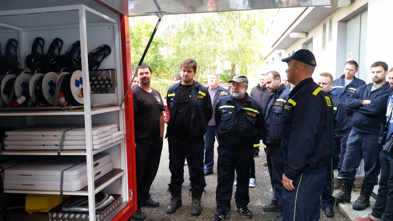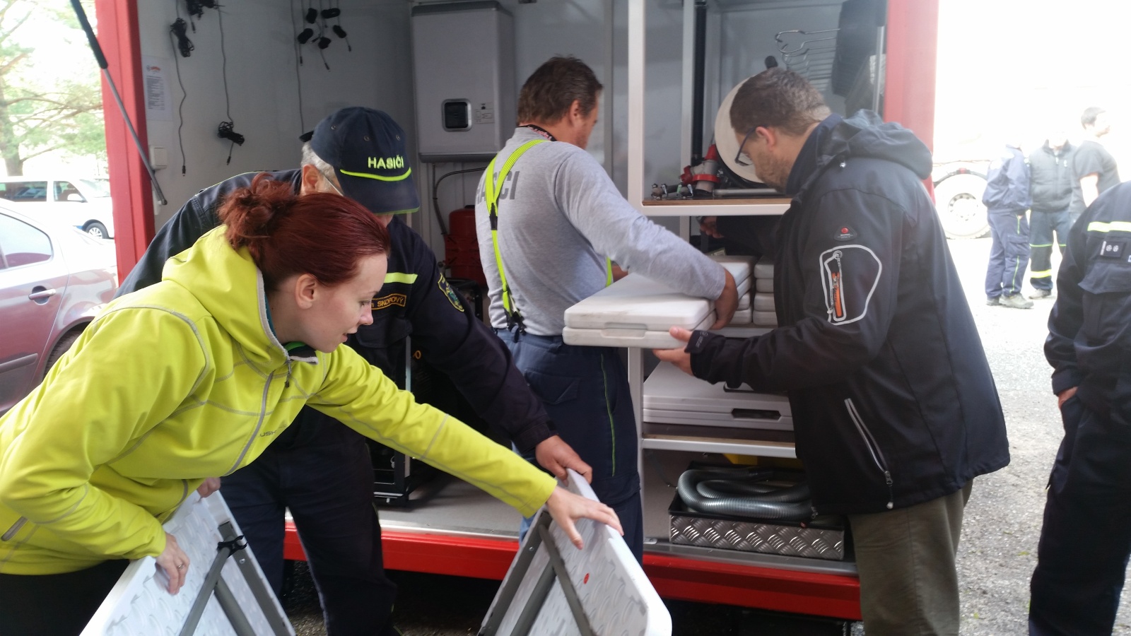 V praktické části jim hasiči předvedli materiální vybavení týlového a povodňového kontejneru, včetně manipulace při sundávání a nakládaní na nosič. Na závěr si všichni účastníci společně vyzkoušeli výstavbu části základny humanitární pomoci.