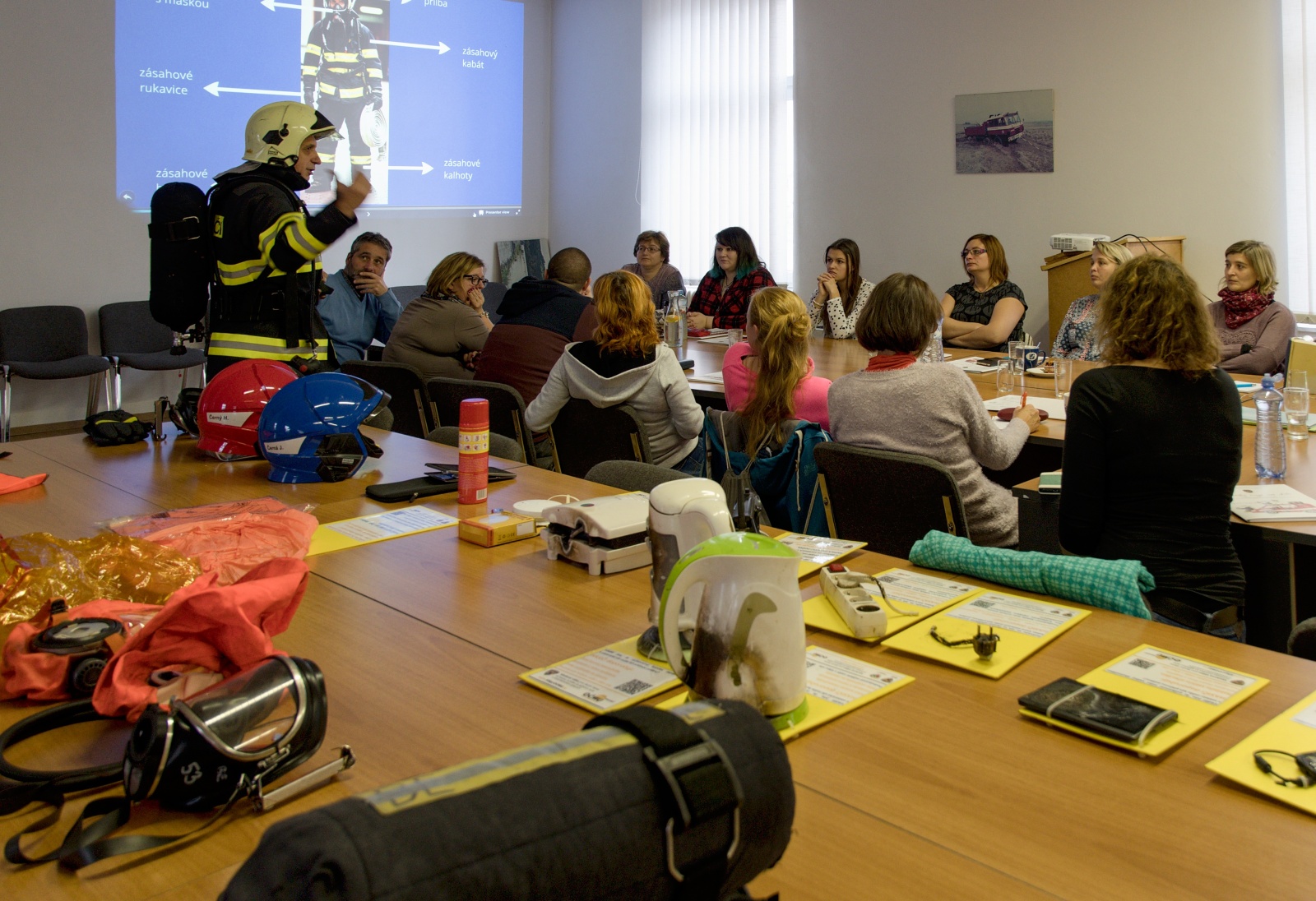 Touto formou se pedagogové seznamují s běžnými riziky, která je mohou potkat, a dozvídají se, jak jim předcházet a jak se co nejlépe zachovat, aby následky nebyly velké. Jednou z nejzajímavějších částí je přednáška a následná diskuze s hasičskou psycholožkou. Praktickou částí letos byly ukázky hašení přenosným hasicím přístrojem a návštěva krajského operačního střediska. V průběhu školení bylo pamatováno i na malé občerstvení.