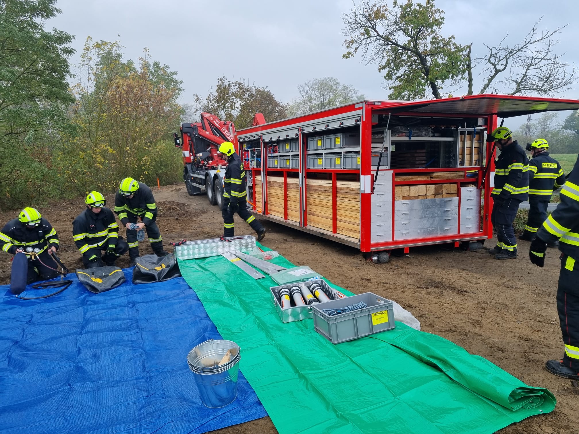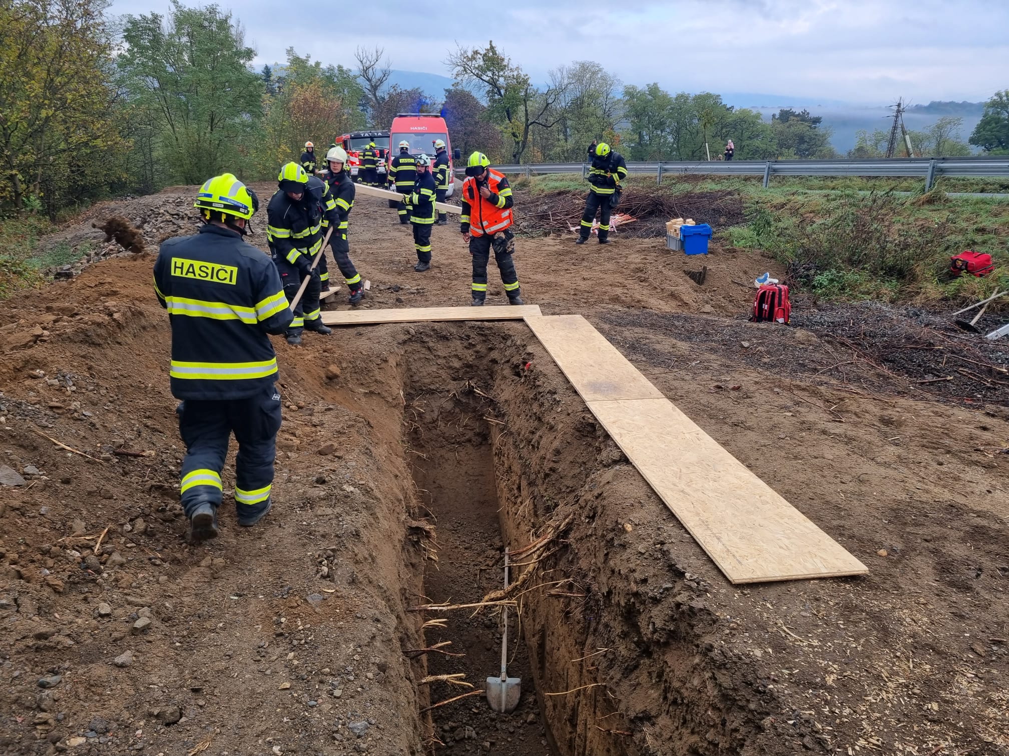 Profesionální jednotka z hasičské stanice Řevnice a dobrovolné jednotky obcí Hlásná Třebáň a Karlštejn se v dopoledních hodinách zúčastnily taktického cvičení, jehož námětem byla záchrana a vyproštění zasypané osoby z nestabilního výkopu.