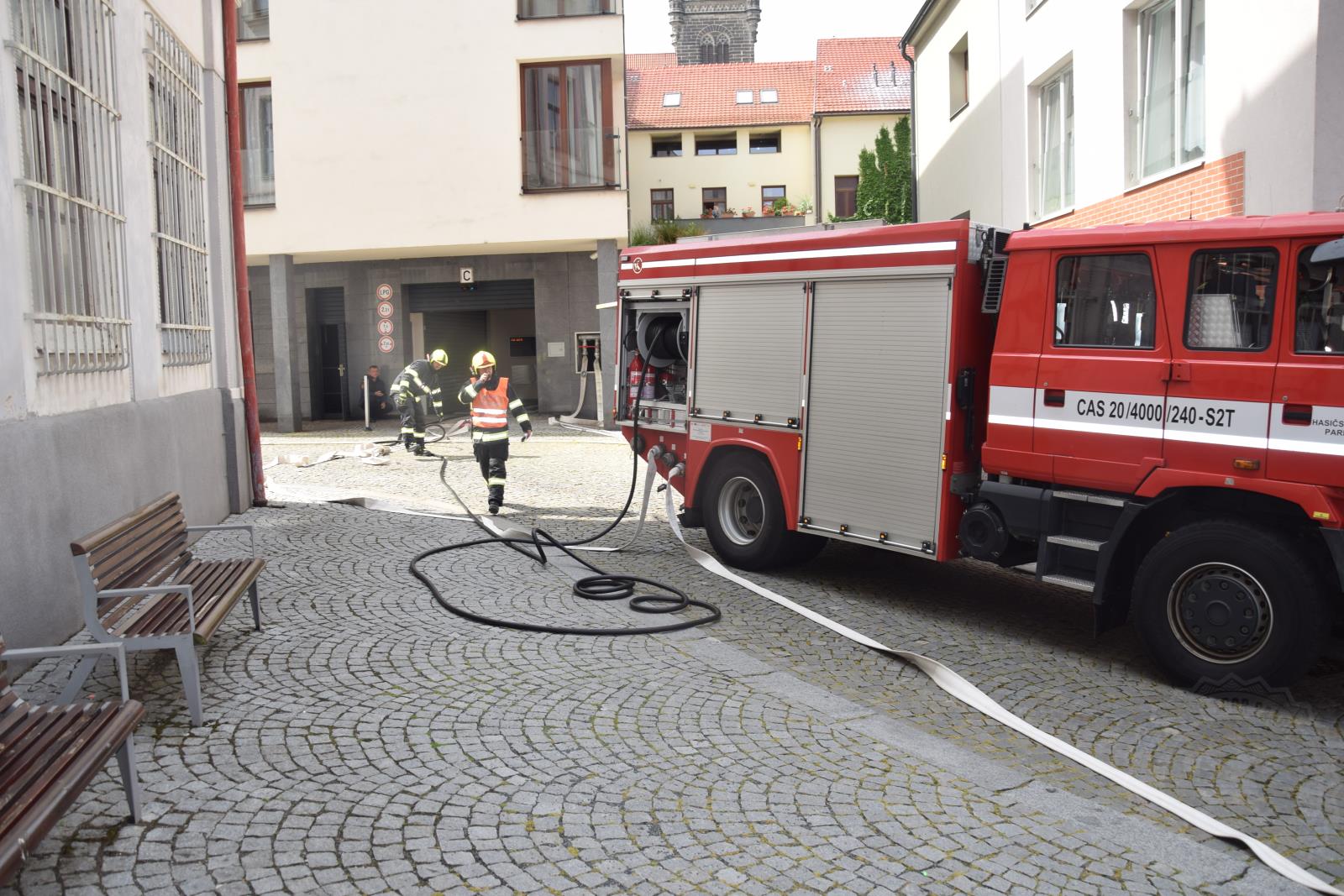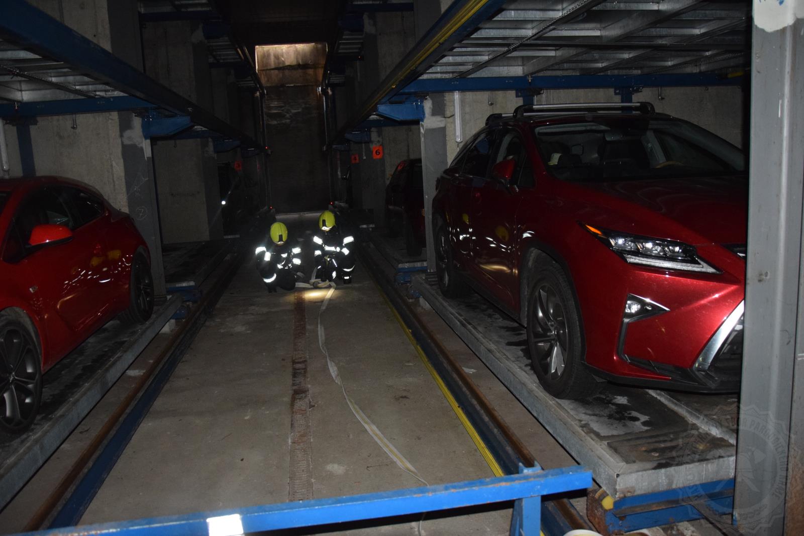 Požár osobních vozidel v podzemním automatickém parkovacím systému Balustráda na Resselově náměstí v Chrudimi byl ve středu 8. června dopoledne námětem taktického cvičení profesionálních a dobrovolných hasičů z Chrudimi.