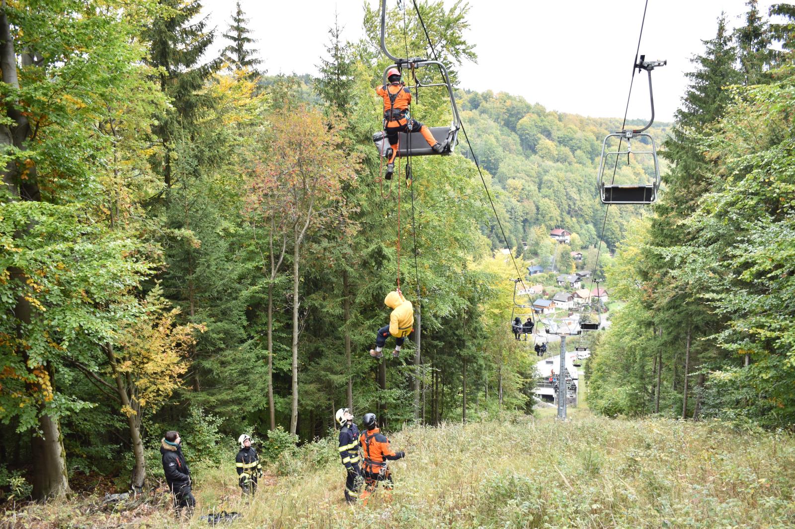 Taktické cvičení IZS Záchrana osob ze sedačkové lanovky