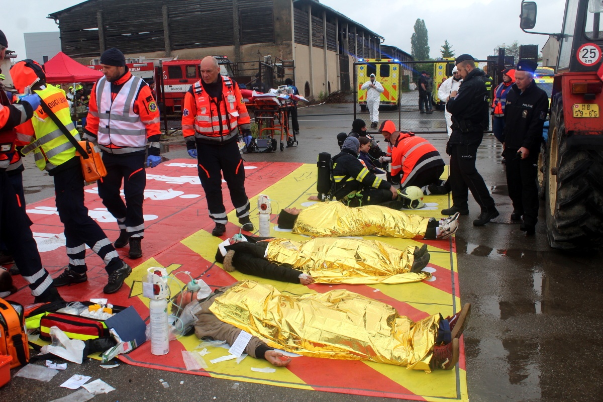 Zdravotnická záchranná služba v místě zásahu zbudovala prostor pro třídění zraněných osob, kde pak poskytovala potřebnou přednemocniční neodkladnou péči a připravila je následný odsun. Zraněnými osobami byli figuranti z řad Policie ČR, kteří měli namaskovaná velmi reálně vypadající zranění pracovníky Českého červeného kříže.