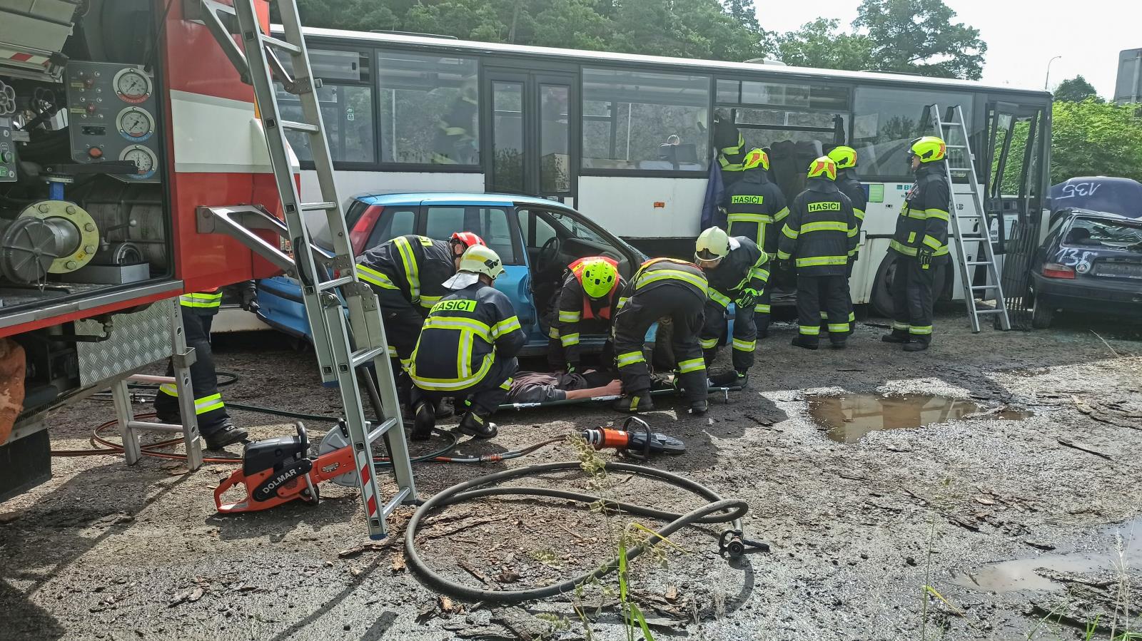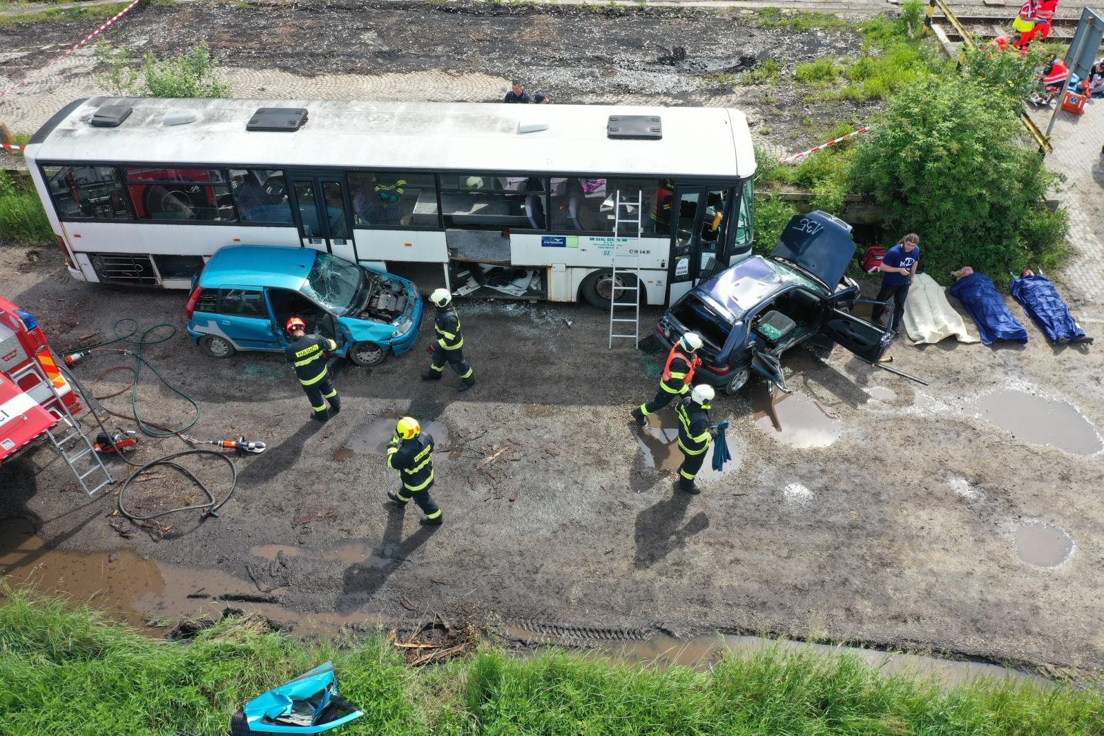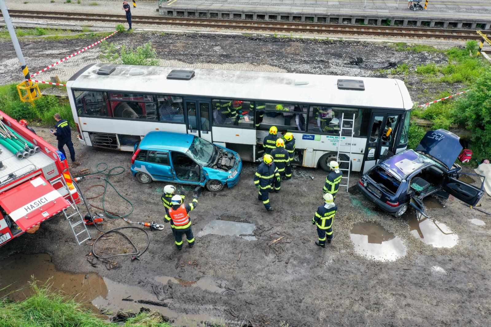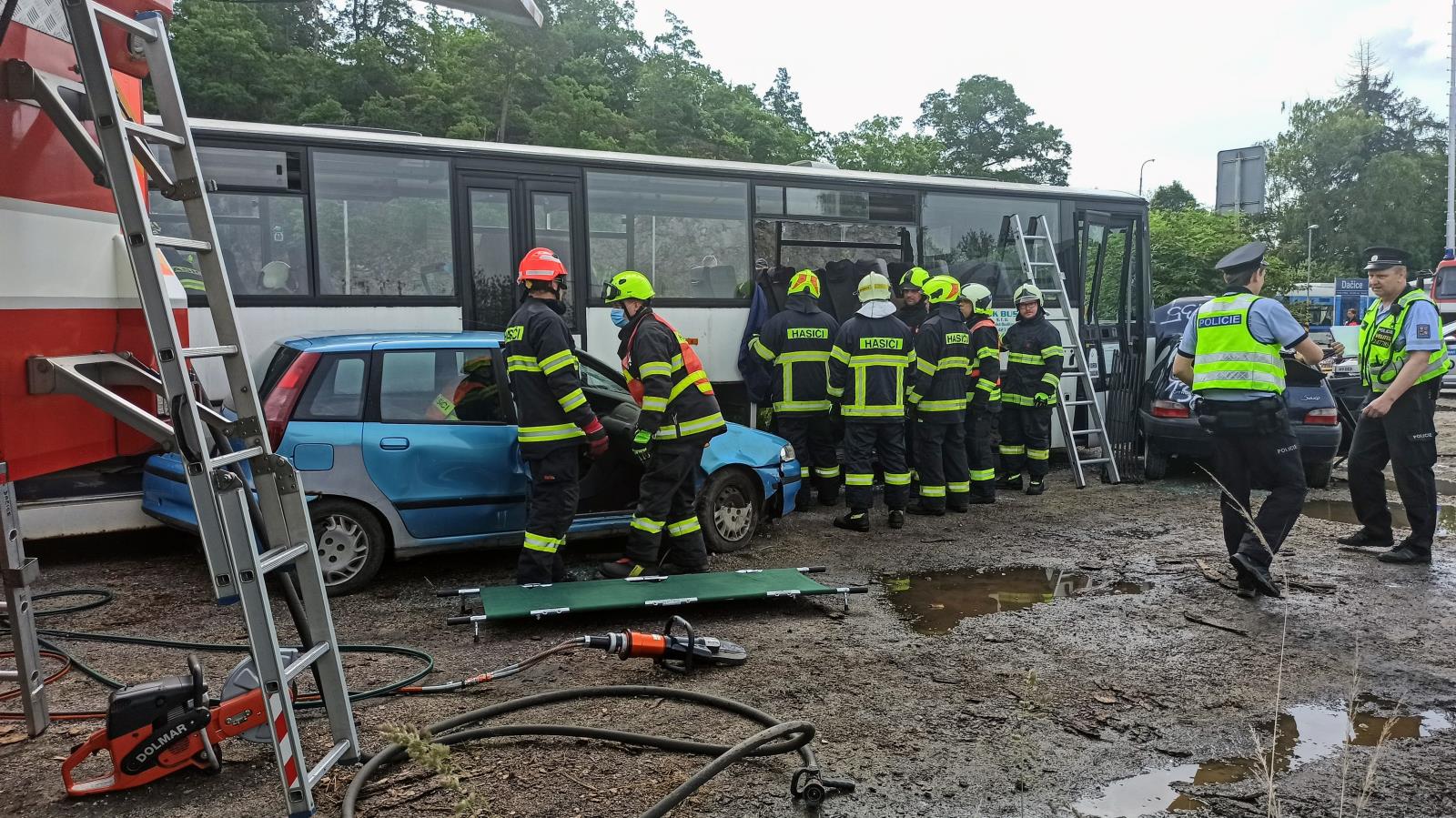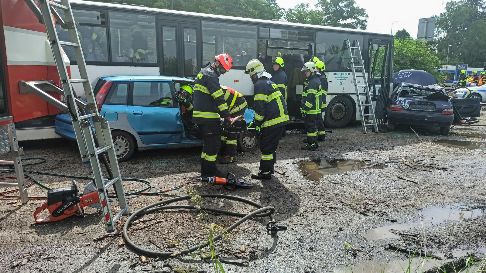 Taktické cvičení - nehoda linkového autobusu a dvou osobních vozidel v Dačicích