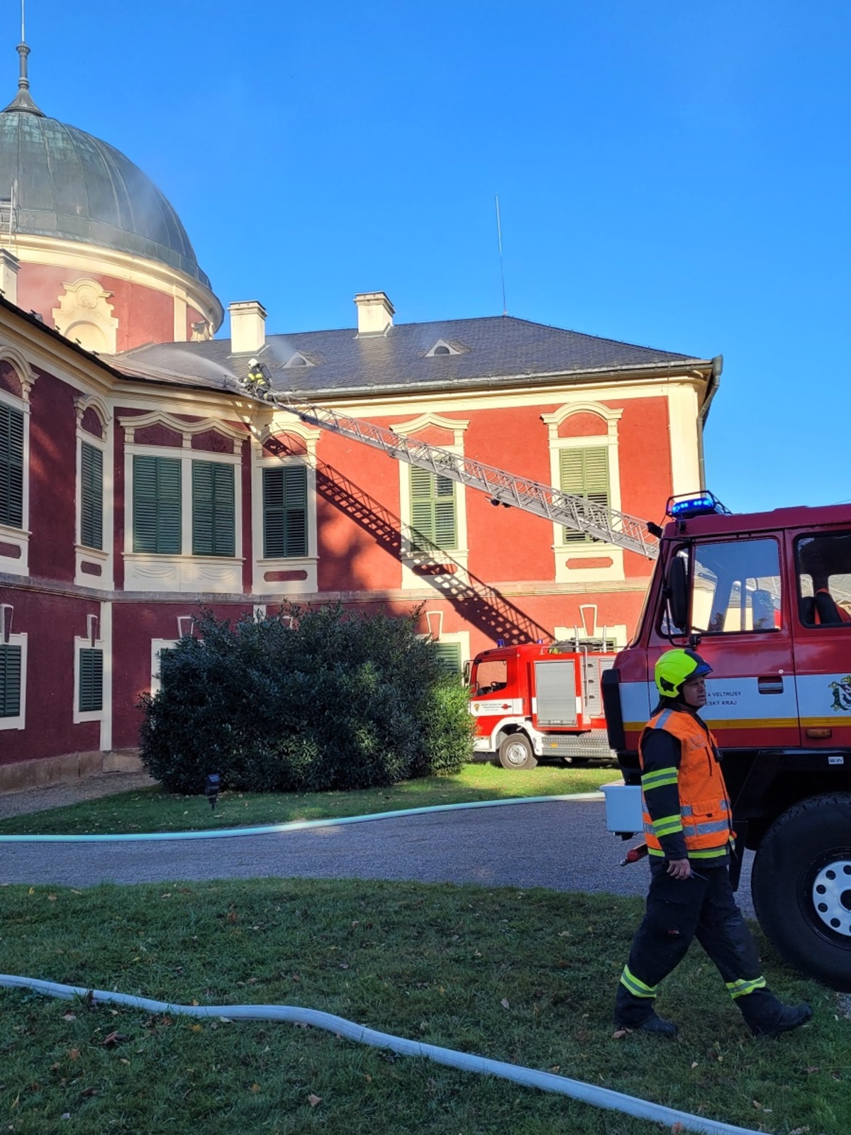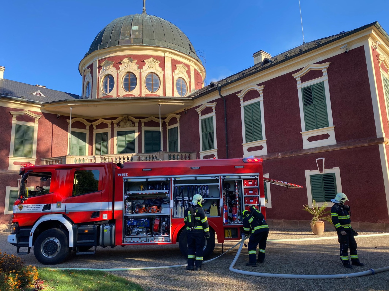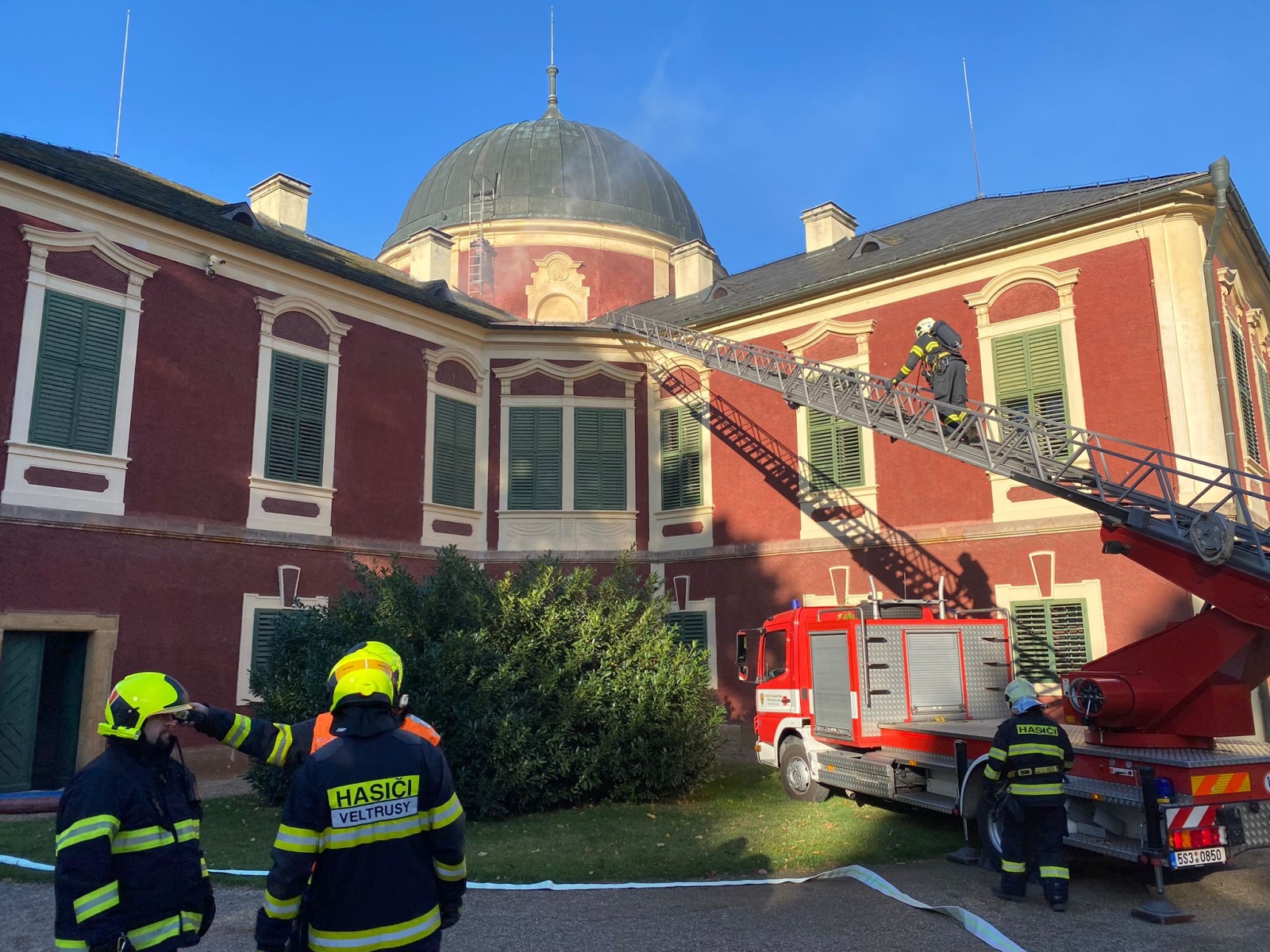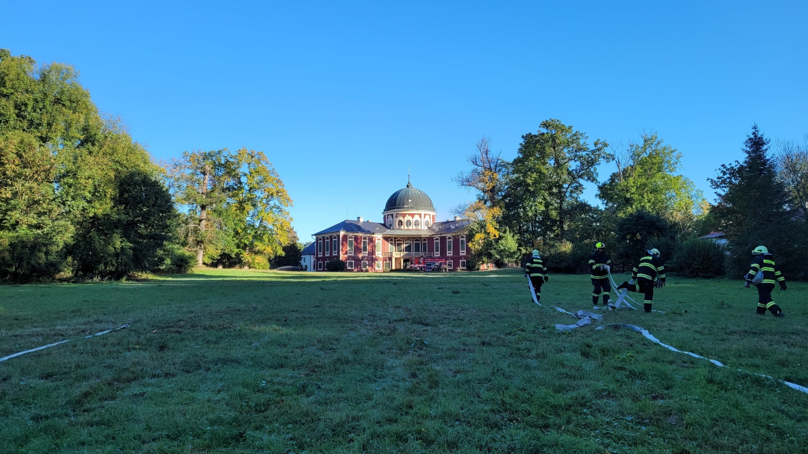 V pondělí 16. října dopoledne se na Mělnicku uskutečnilo taktické cvičení, jehož námětem byl požár v půdním prostoru zámku Veltrusy při opravě střechy.