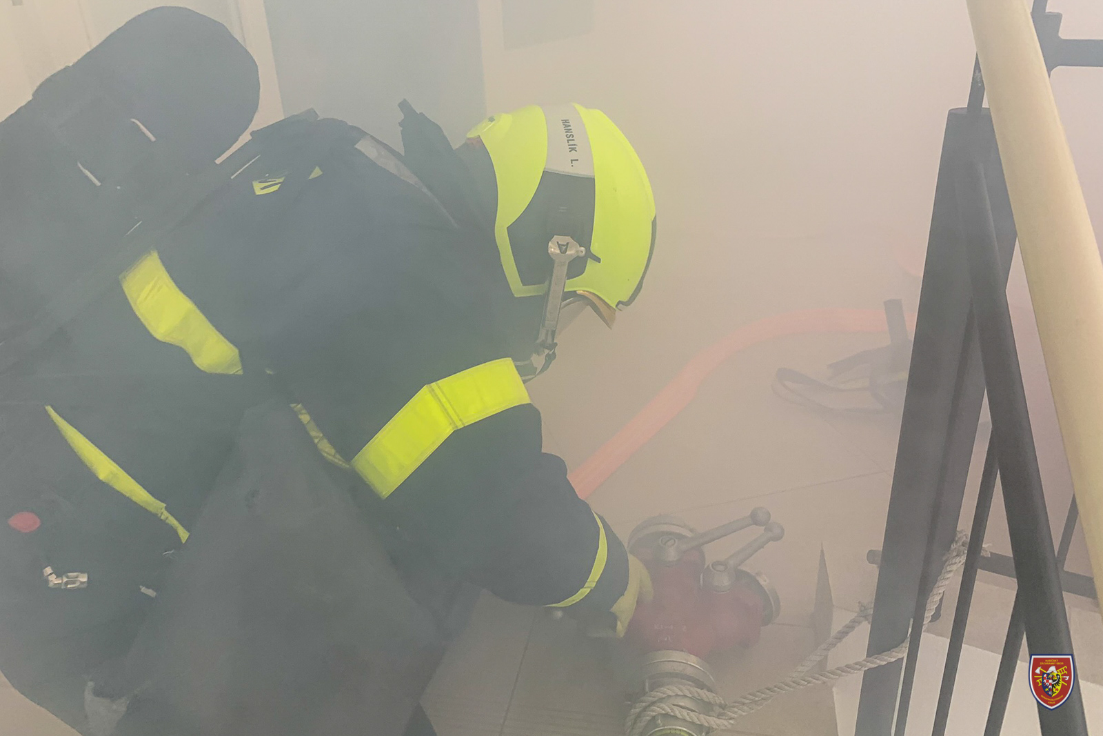 Hasiči během přibližně hodinového cvičení zachránili všechny tři figuranty, vyzkoušeli si komunikaci radiostanicemi, signály pažemi i bojová rozvinutí hadicemi do poschodí.