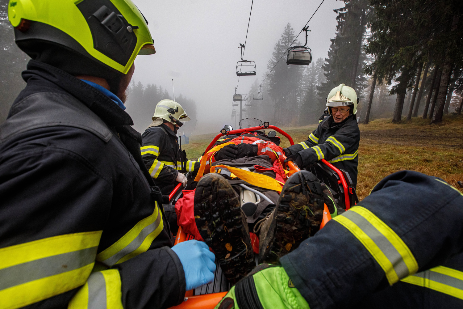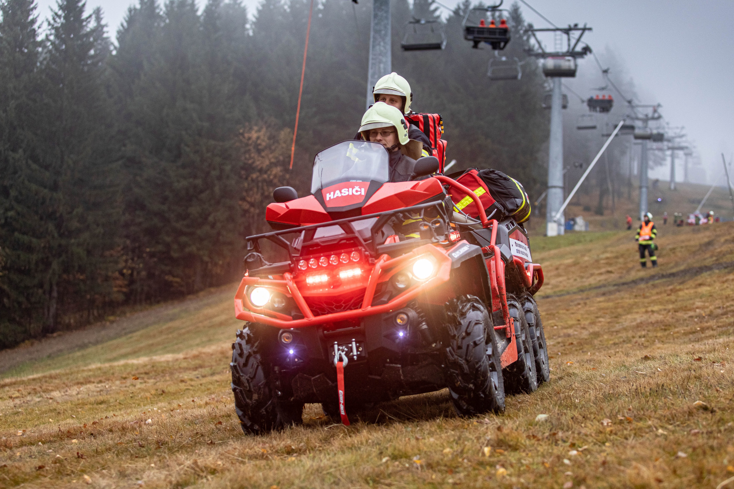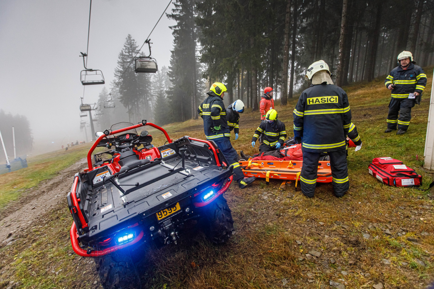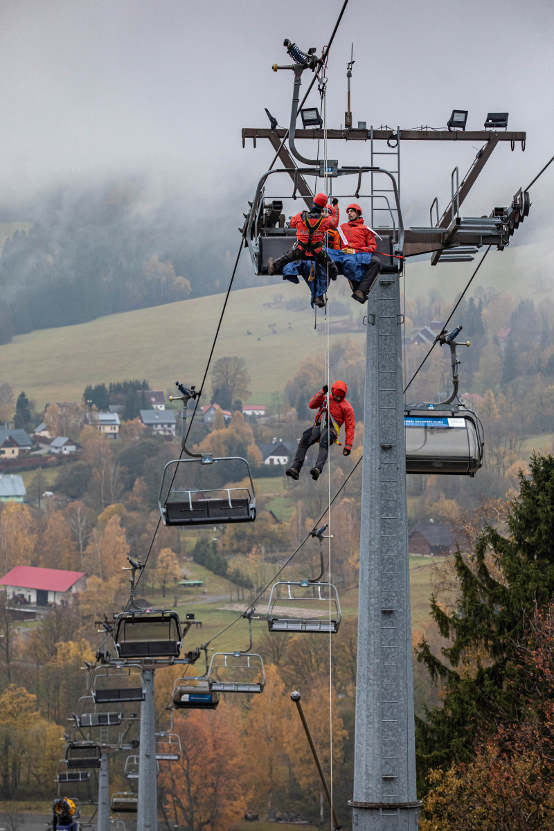 Skicentrum v Deštném v Orlických horách bylo dějištěm taktického cvičení složek integrovaného záchranného systému, předmětem byla záchrana osob ze sedačkové lanové dráhy Marta II.
