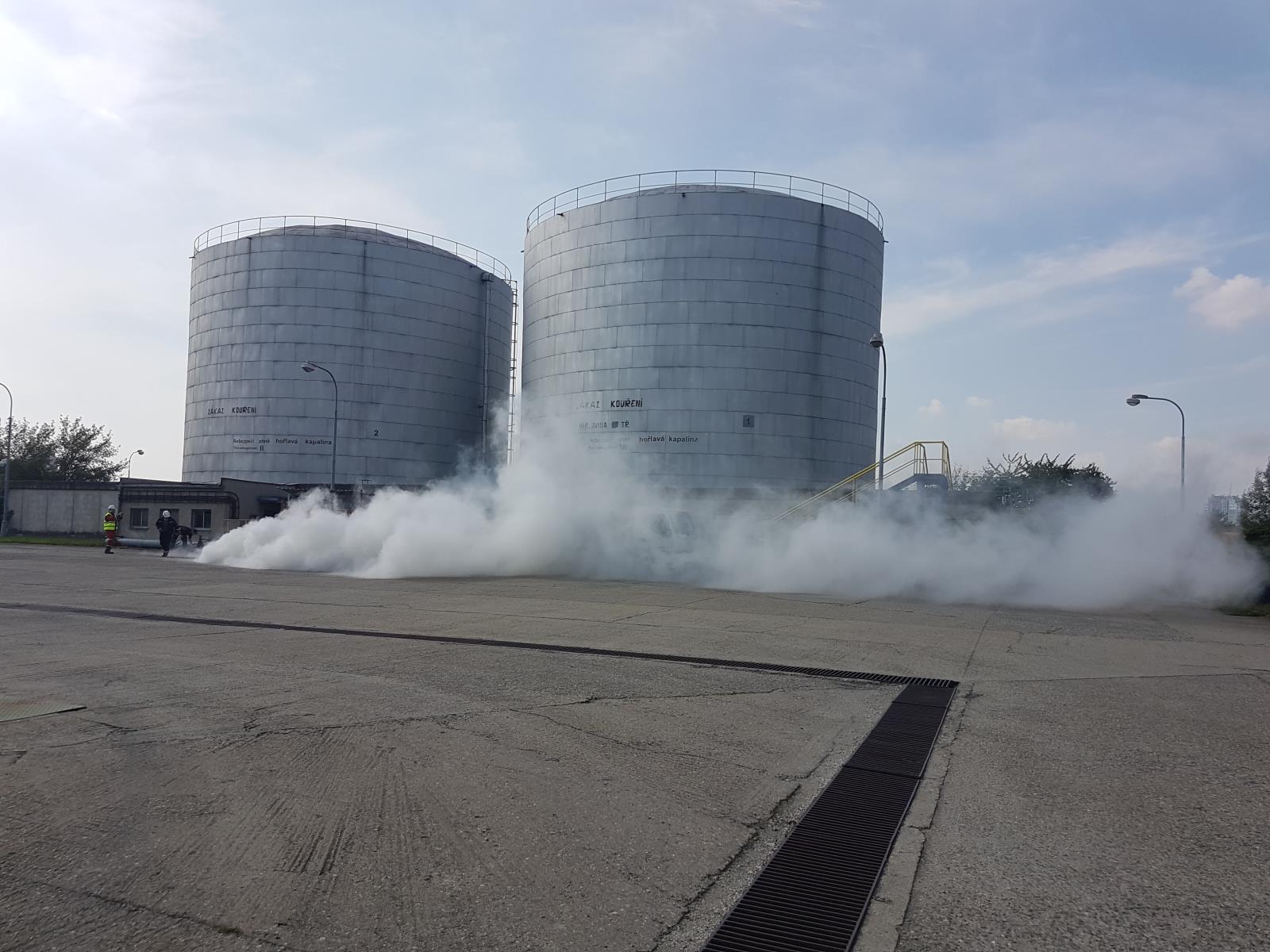 Cílem cvičení bylo prověřit rychlost evakuace zaměstnanců, připravenost provozního personálu na krizovou situaci i spolupráci s velitelem zásahu. Prověřovali jsme rovněž vodní monitor, jeho dostřik a účinnost při ochlazování nadzemních zásobníků i využití deflektorů k ochraně elektrifikace a technologií uvnitř areálu.