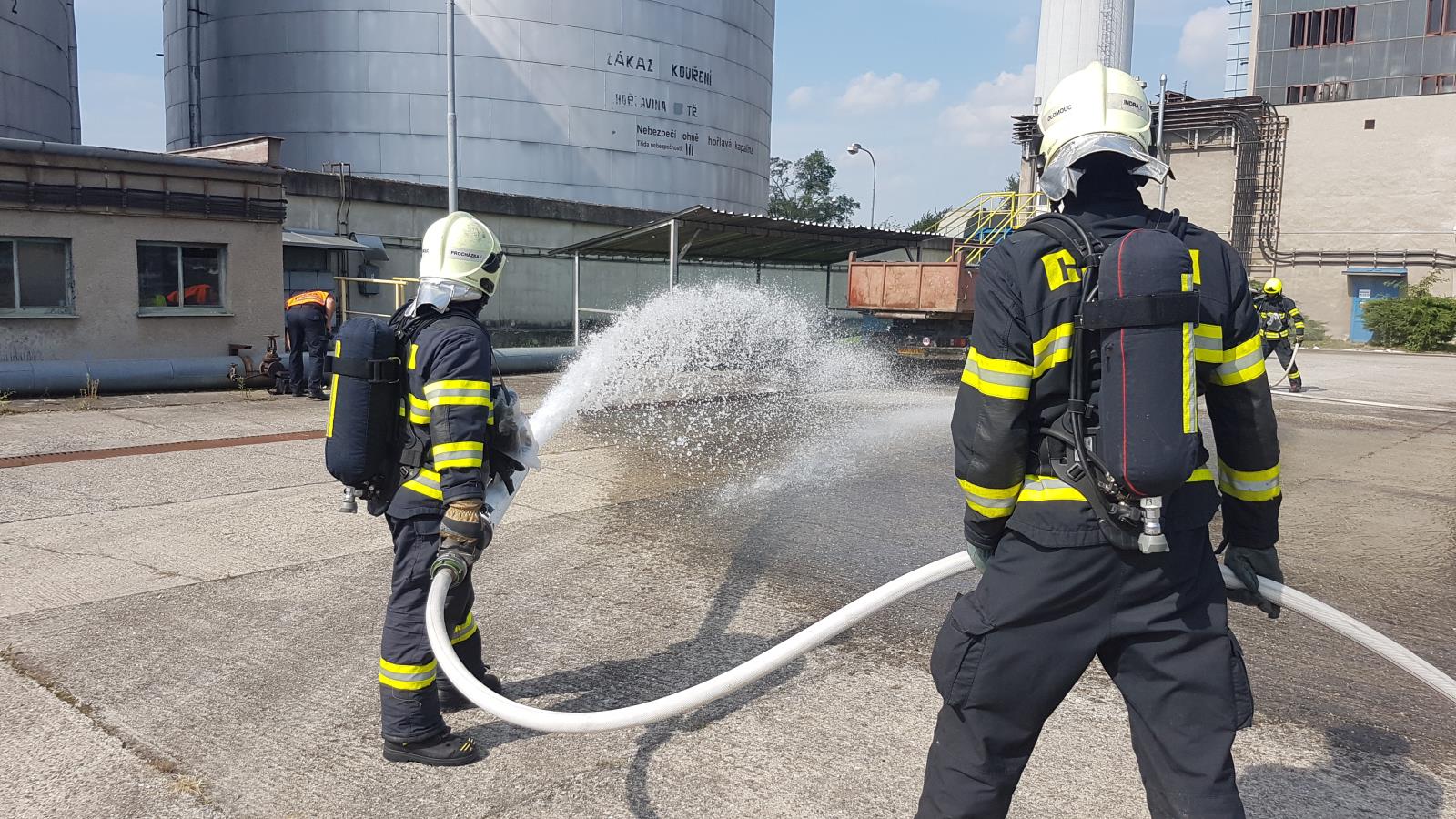 Taktické cvičení prověřilo zásah při úniku těžkého topného oleje a následný požár