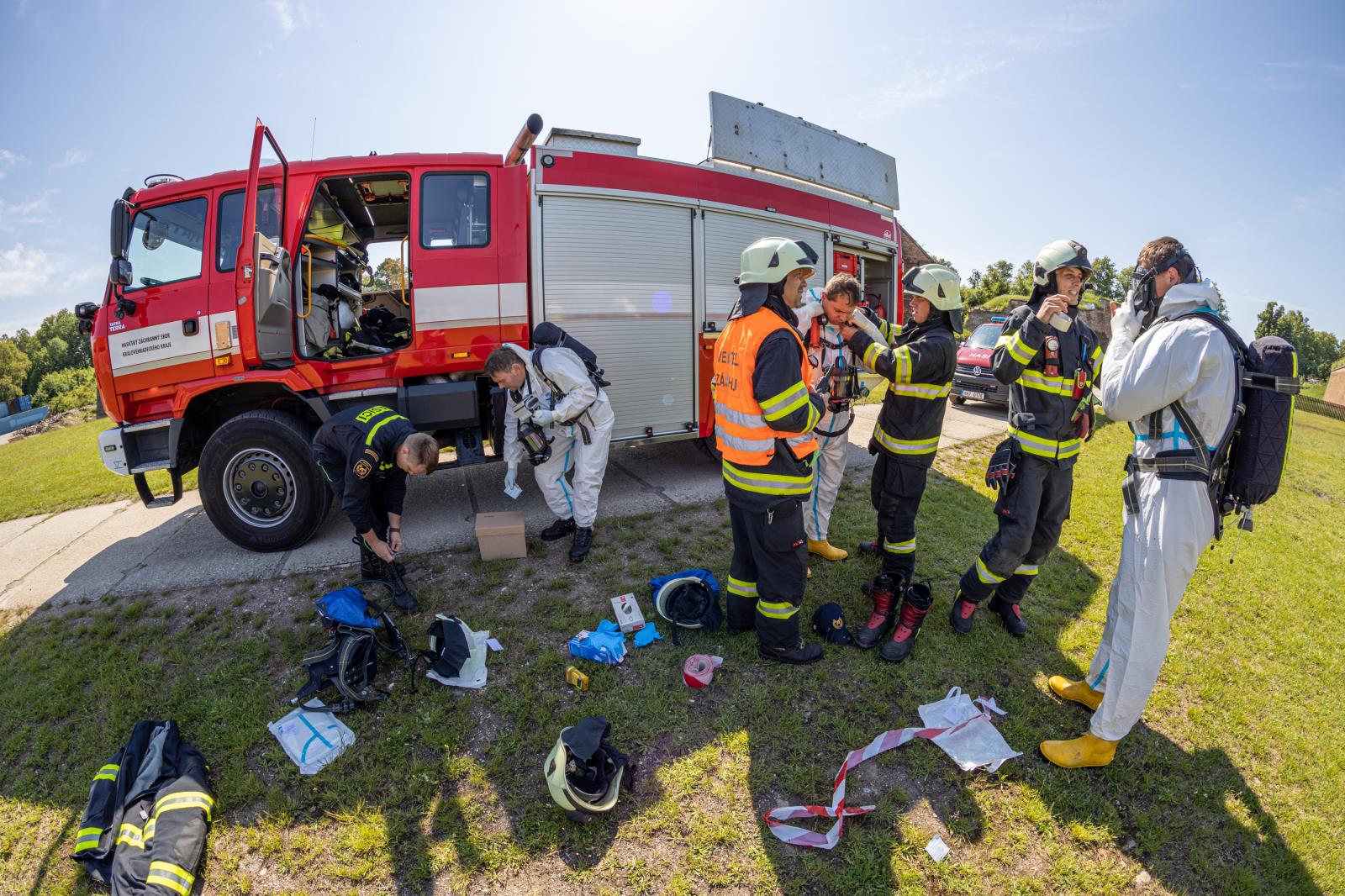 Při cvičení si mohli místní profesionální hasiči ověřit způsob identifikaci zdroje ionizačního záření („ZIZ“), procvičit měření dávkového příkonu a zajištění a manipulaci se ZIZ.