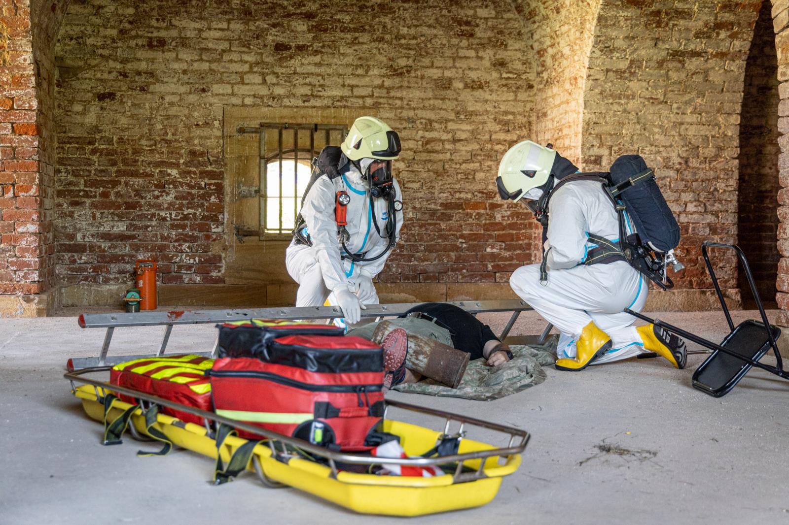 Pevnost Josefov RAVELIN XIV je díky své rozmanitosti ideálním cvičným prostorem i pro zásahy jednotek požární ochrany. Tentokrát zde profesionální hasiči z jaroměřské stanice prováděli taktické cvičení při nálezu zdroje ionizujícího záření, takový zásah by se řadil do kategorie radiační havárie.