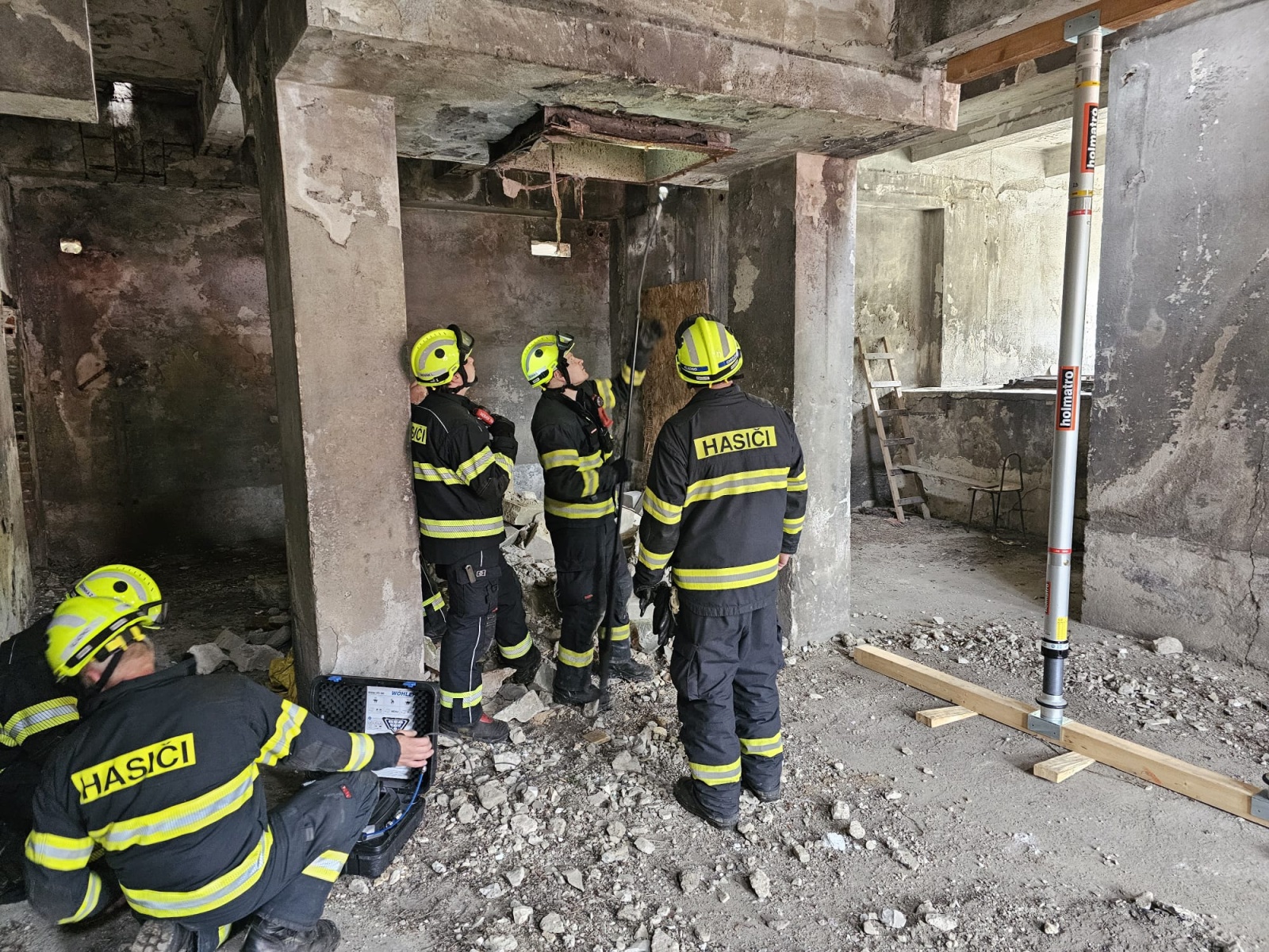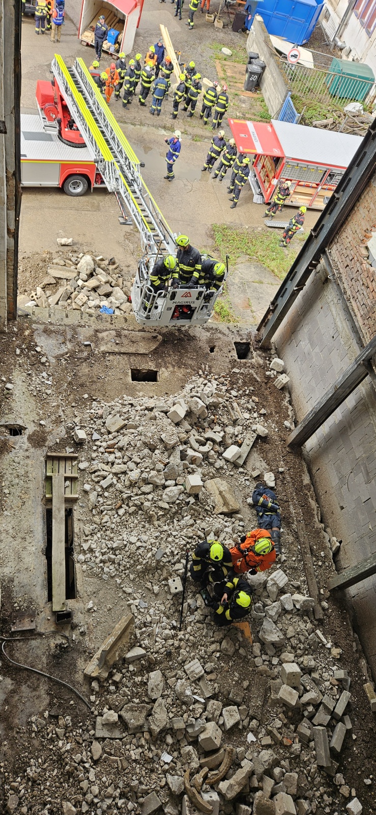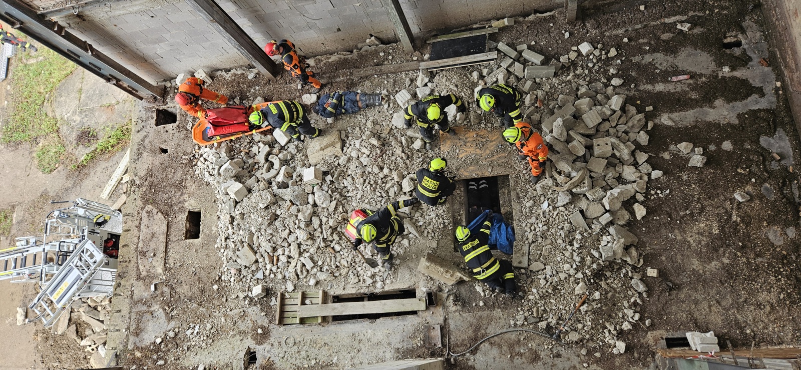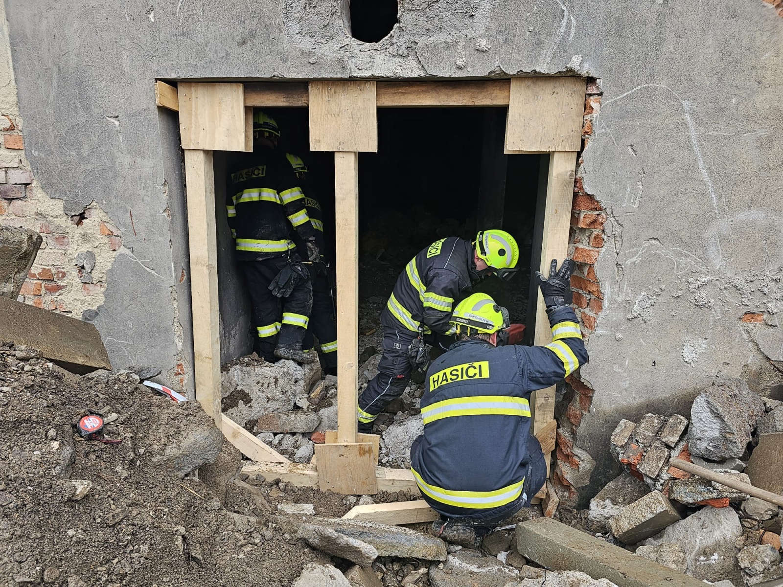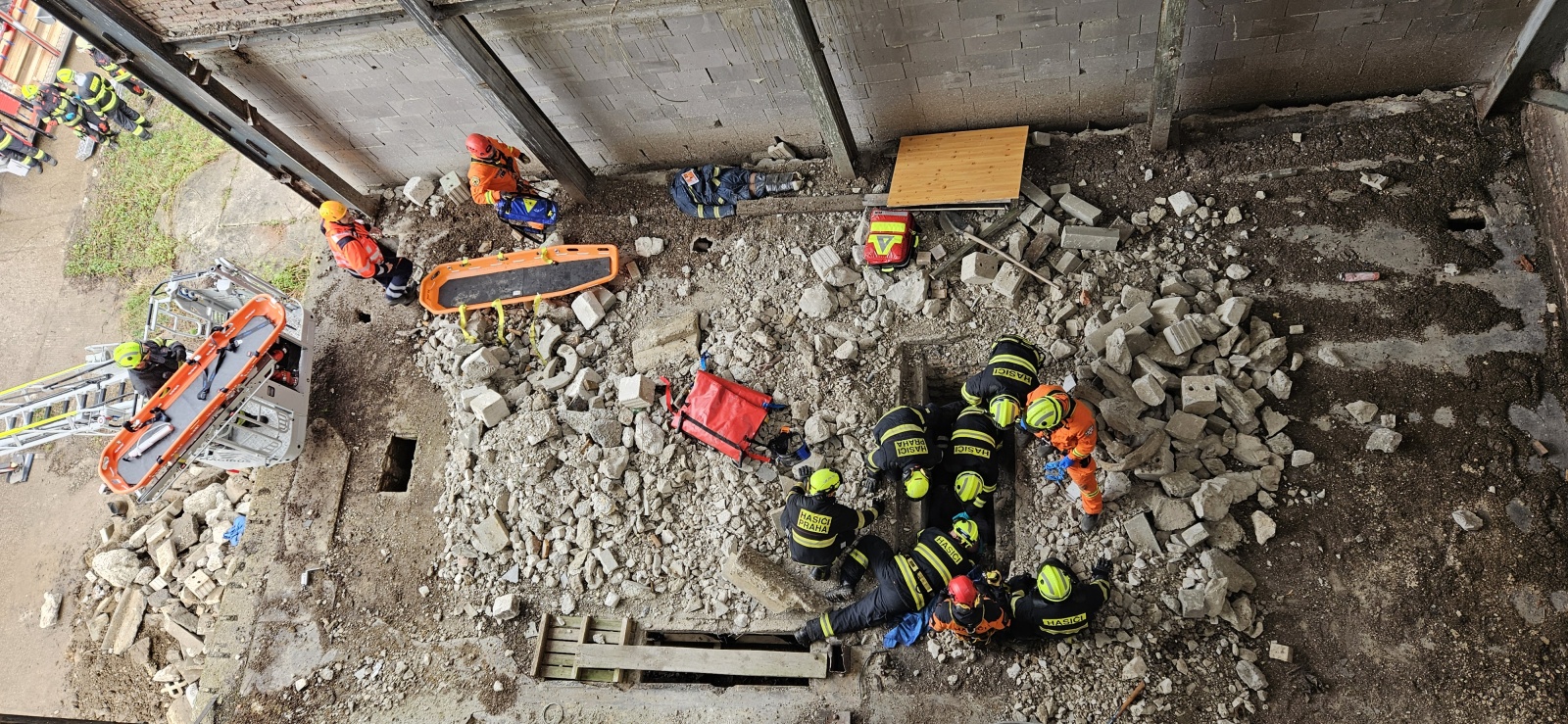 V rámci námětu vyprošťování zavalených osob ze sutin byla procvičena částečná stabilizace budovy pomocí výdřevy a také postupy vyhledávání osob v sutinách nejen nasazením kynologů se speciálně cvičenýcmi psy, ale i pomocí moderních elektronických zařízení – štěrbinových kamer. Připravena byla také speciální technika Záchranného útvaru HZS ČR, a to sací bagr k efektivnímu transportu sypkých trosek ze sutin.