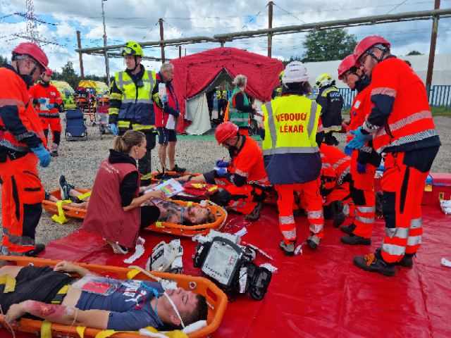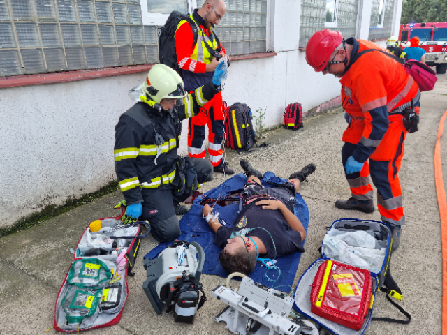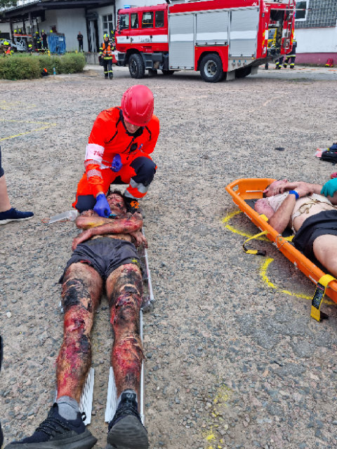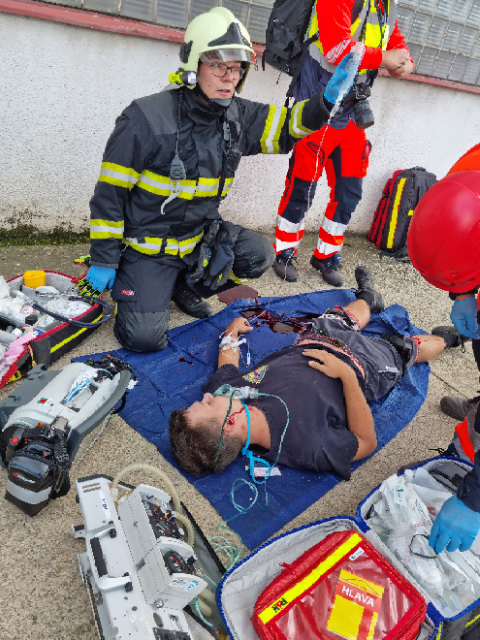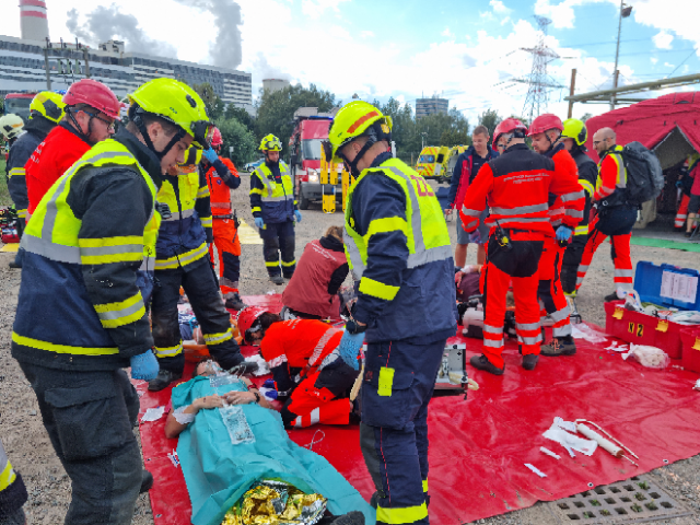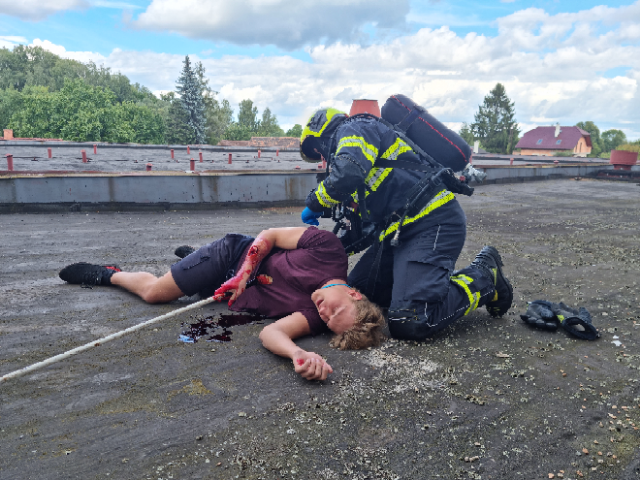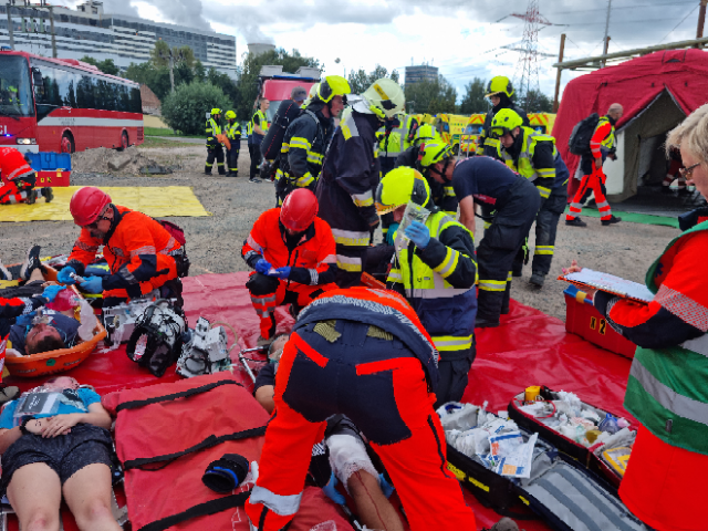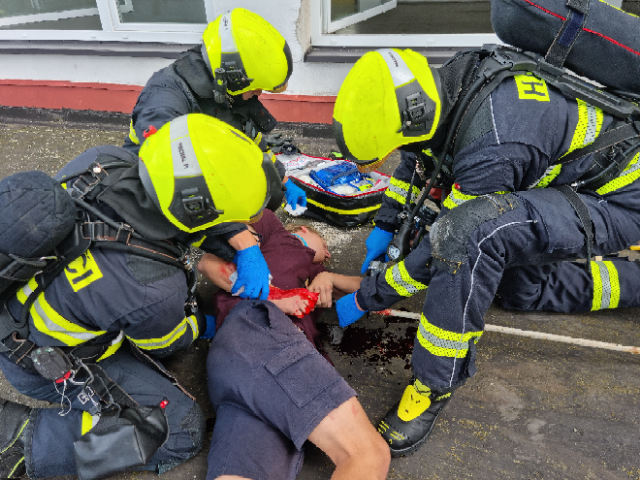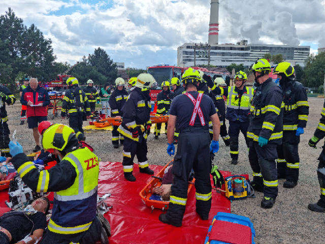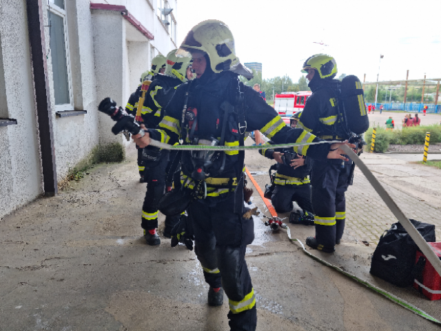 Cílem dnešního cvičení bylo zjistit, zda velitel zásahu efektivně řídí zásah, jak spolupracují hasiči s dalšími zasahujícími složkami IZS a dalšími subjekty podílejícími se při řešení mimořádné události. Ověřili jsme si činnosti vedoucích a členů jednotlivých složek IZS na místě zásahu a jednotek požární ochrany při zásahu na požár výškové budovy, provádění průzkumu, označování prostor, vybavení jednotek na tyto typy zásahů.