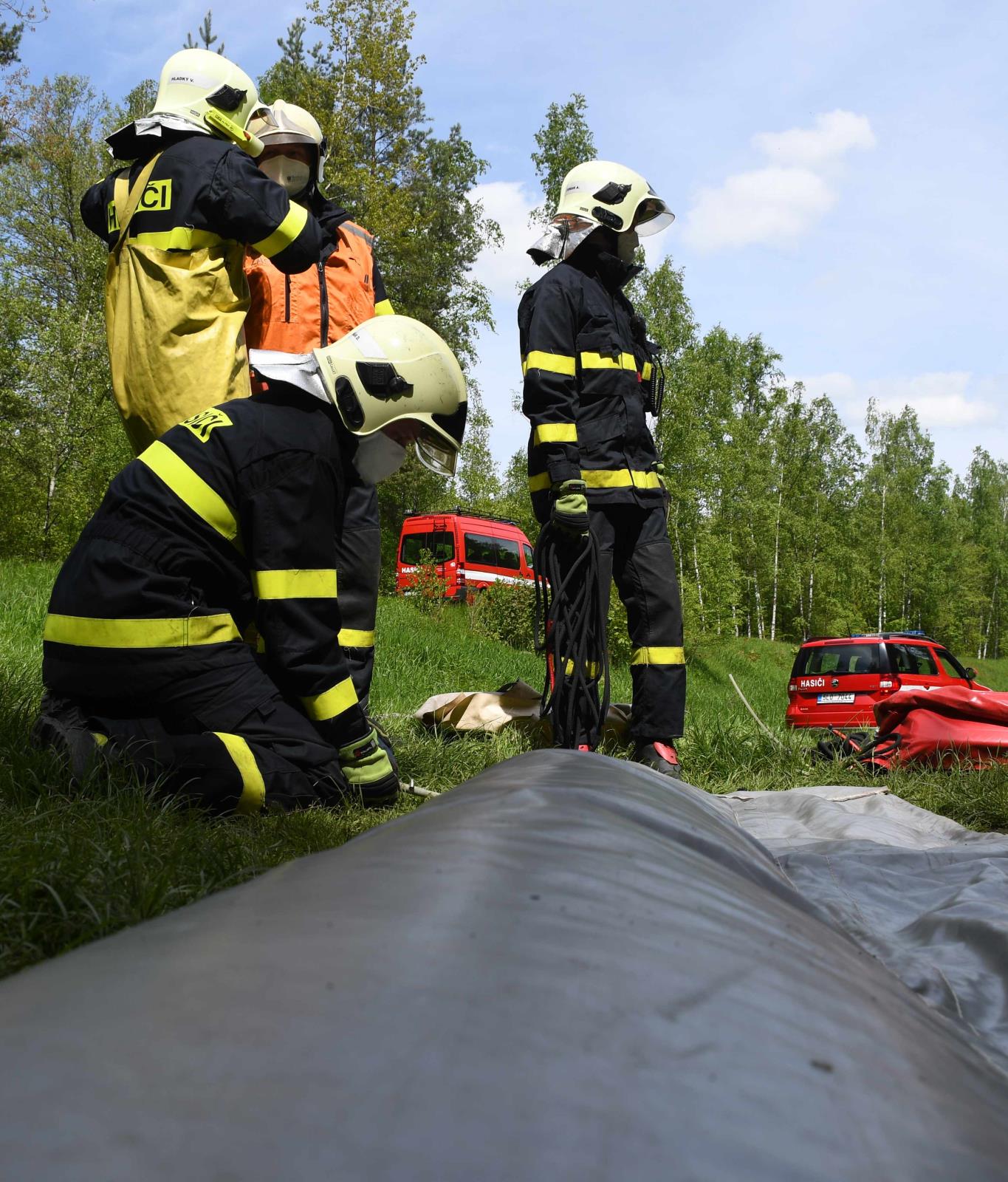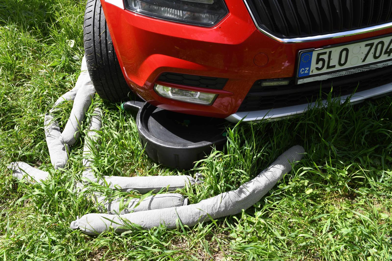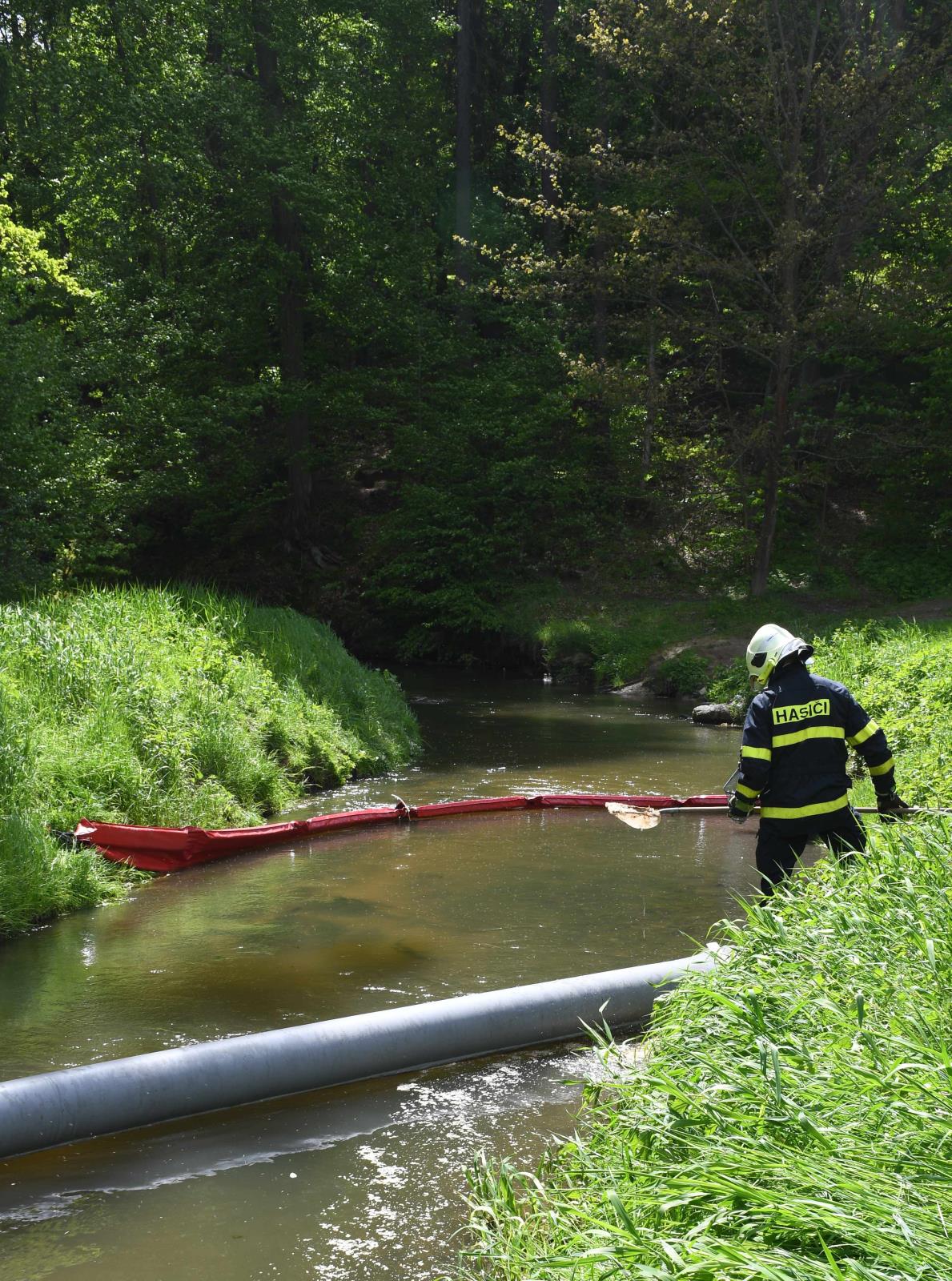 Hasiči si tak po předchozí teoretické přípravě prakticky procvičili činnosti vedoucí k zamezení úniku provozních kapalin z vozidla. Na vodní hladinu instalovali norné stěny pro záchyt motorového oleje (imitováno dřevěnými hoblinami) a následně látku nasáklou v hydrofobním sorbentu sbírali do připravených nádob.
