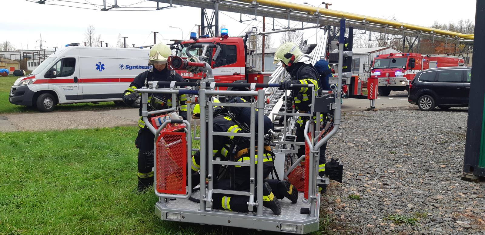 Takový byl námět taktického cvičení na zásah s únikem nebezpečné látky a požárem.