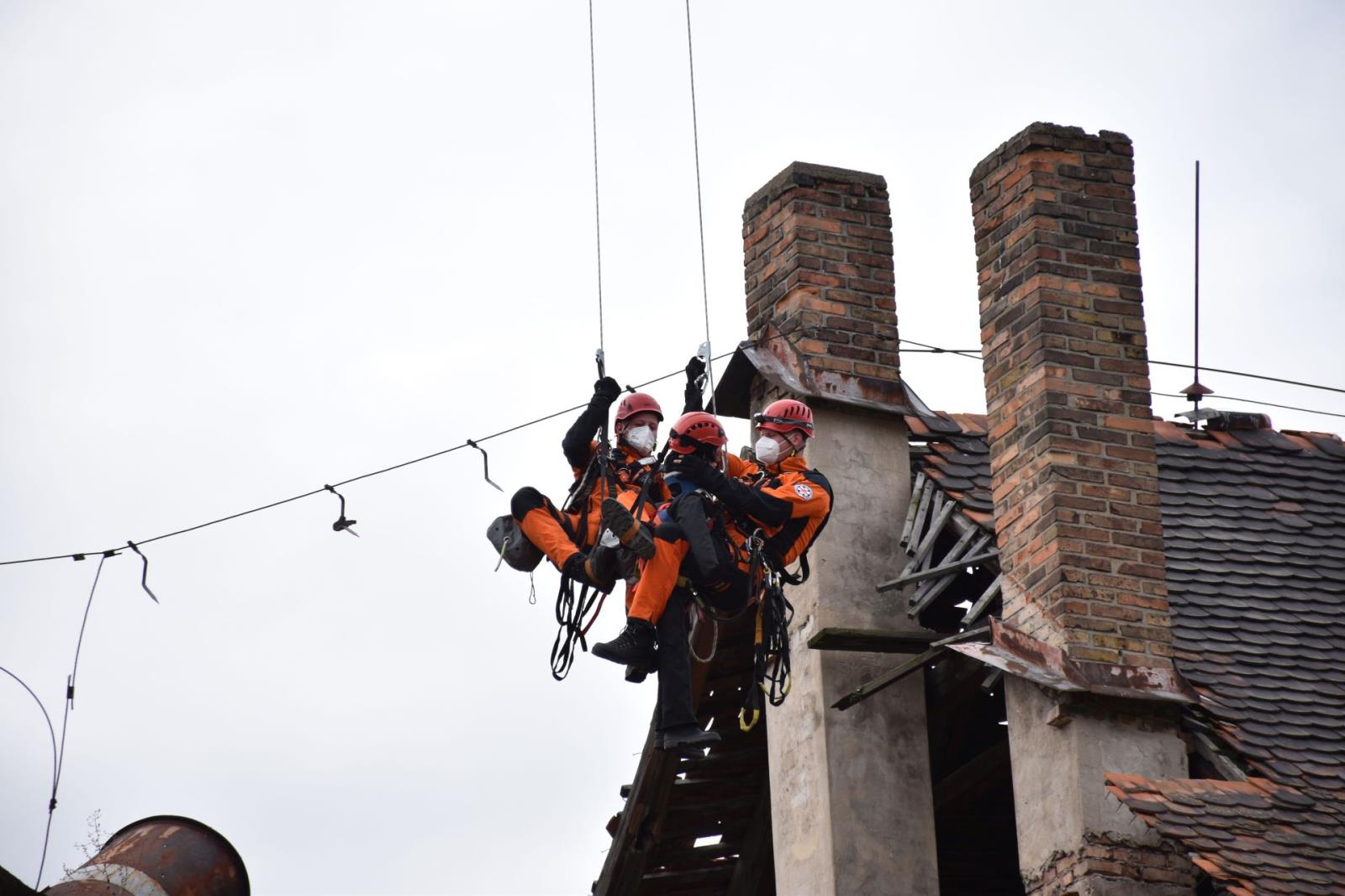 Vyproštění pěti osob ze sutin.