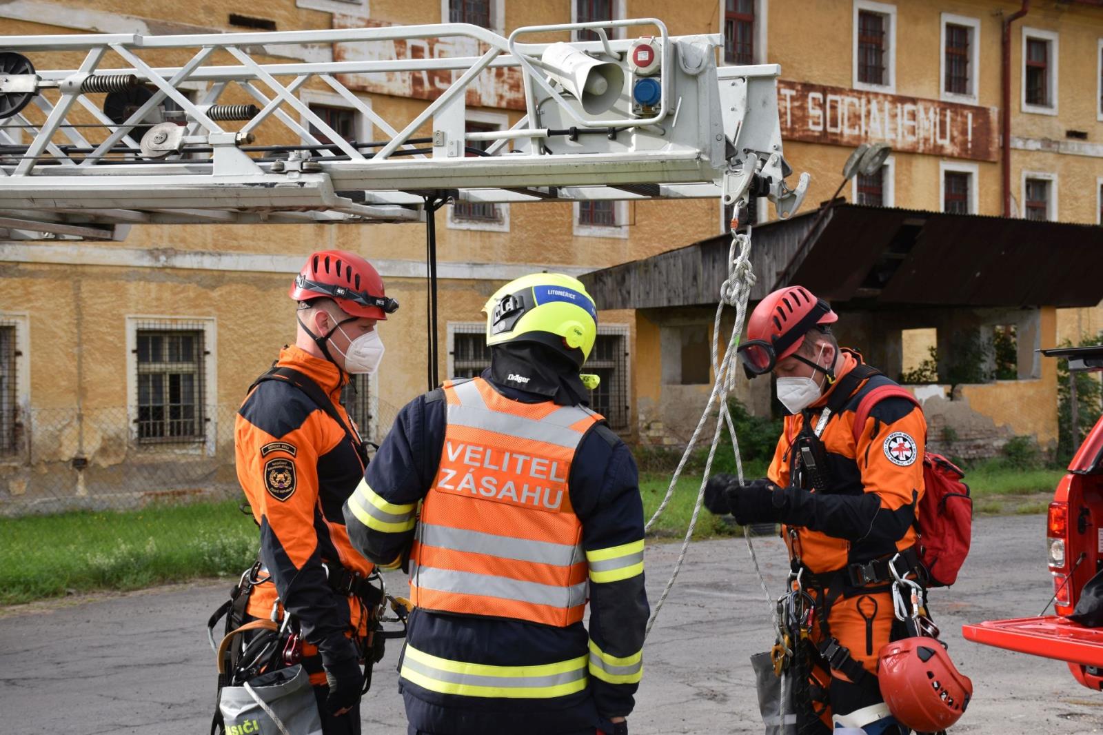 Taktické cvičení IZS vyhledávání osob ze zřícené budovy dnes proběhlo v bývalých kasárnách v Terezíně. Sutiny budovy měly zavalit...
