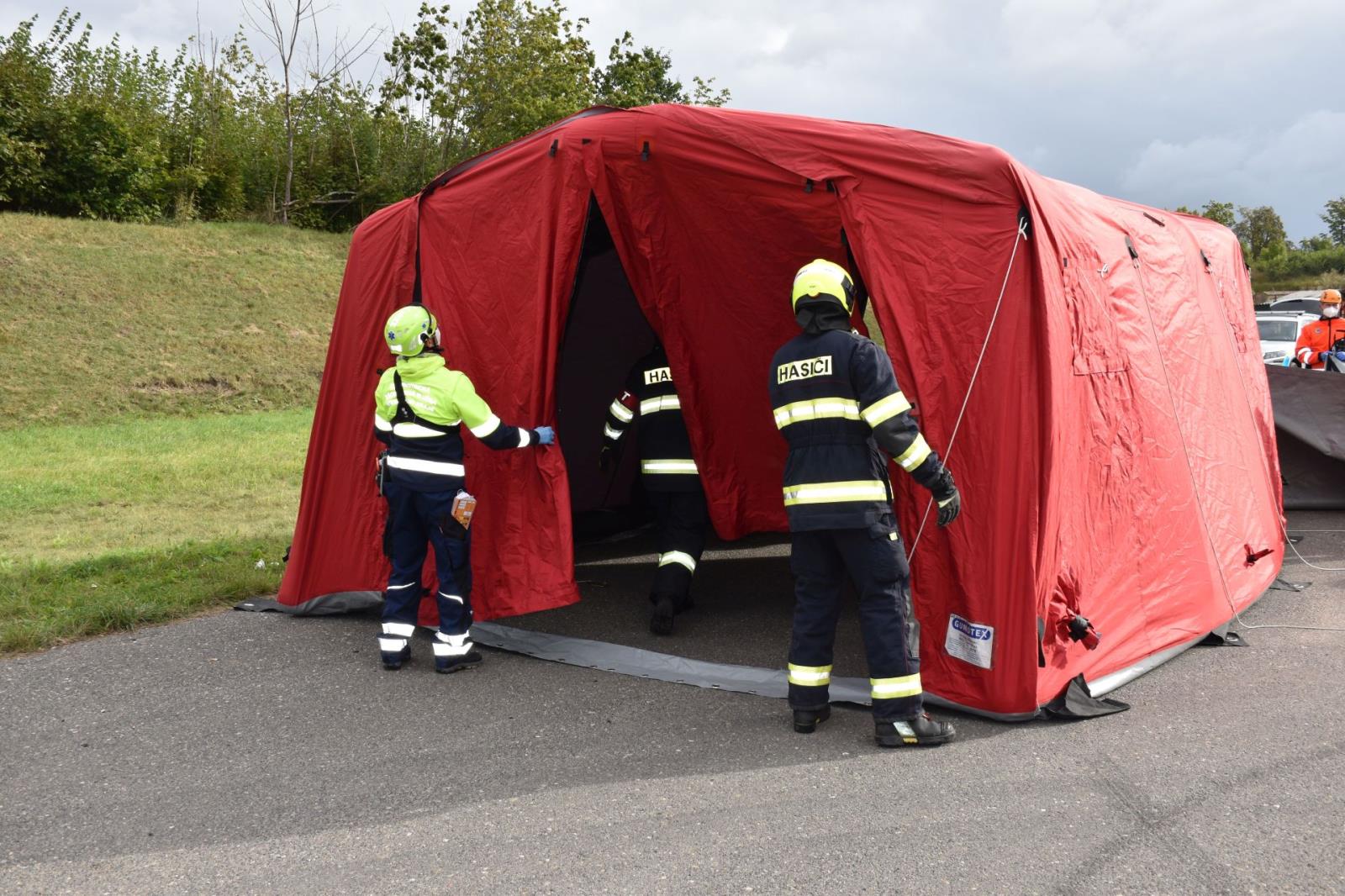 Taktické cvičení IZS vyhledávání osob ze zřícené budovy dnes proběhlo v bývalých kasárnách v Terezíně. Sutiny budovy měly zavalit pět dělníků. Hasiči je měli za úkol najít, za použití speciální techniky vyprostit a předat Zdravotnické záchranné službě. Cvičení se zúčastnily jednotky z Litoměřic, Lovosic, Mostu, Teplic, dobrovolná jednotka z Terezína, Zdravotnická záchranná služba a Policie ČR. Cílem taktického cvičení bylo ověření rozhodovacích schopností velitele zásahu, nasazení sil a prostředků při vyhledávání a záchraně osob ze závalu a ověření spolupráce se složkami IZS.