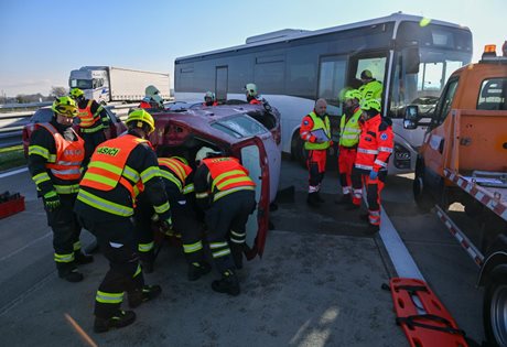 Na dálnici D1 u Přerova se ve středu odehrálo krajské cvičení složek IZS simulující hromadnou nehodu autobusu, nákladního vozu údržby a cisterny s nebezpečnou látkou. Desítky zraněných figurantů, evakuace, likvidace úniku chemikálie a koordinace všech složek prověřily schopnost rychlé a bezpečné reakce při mimořádných událostech.