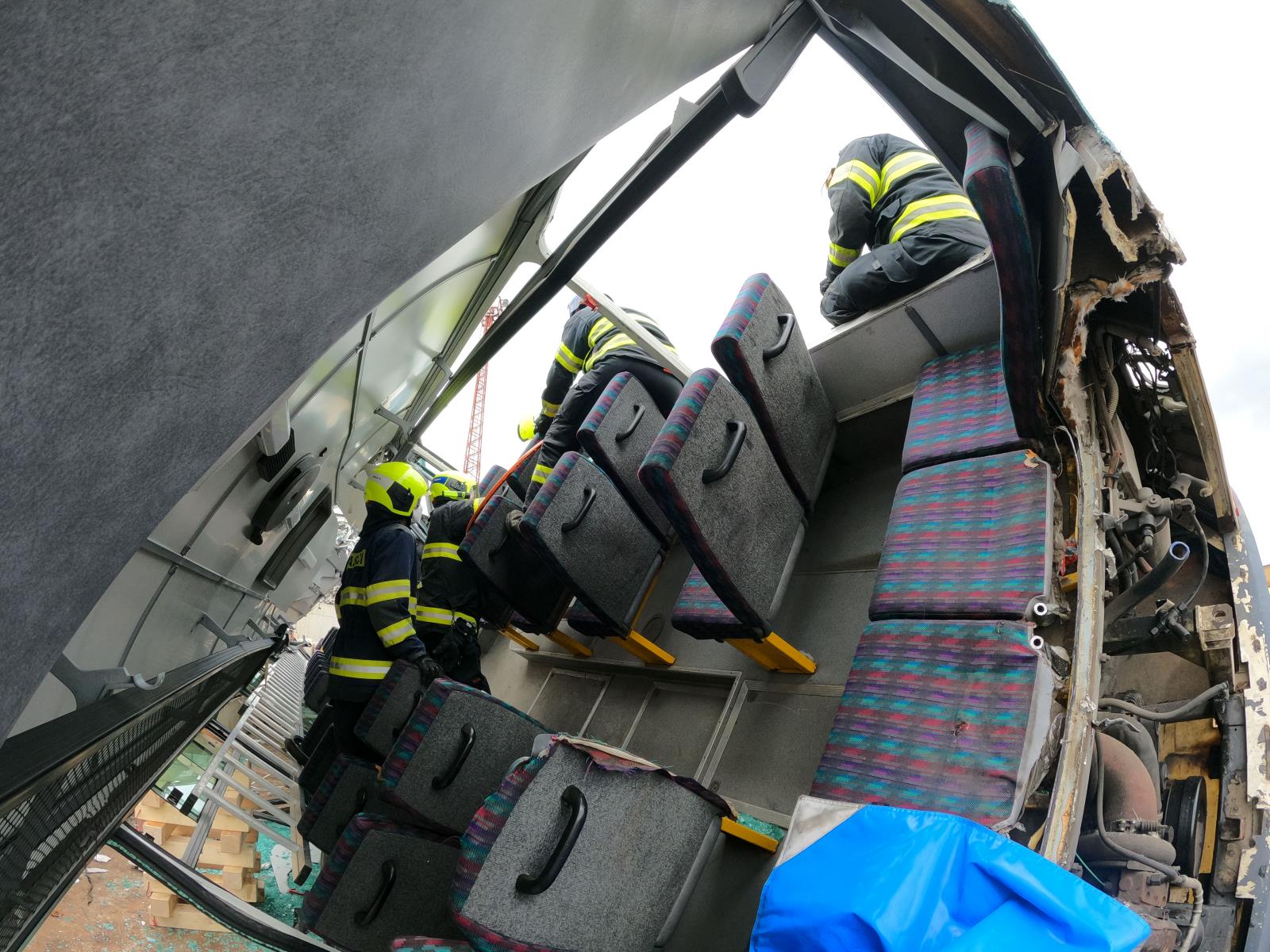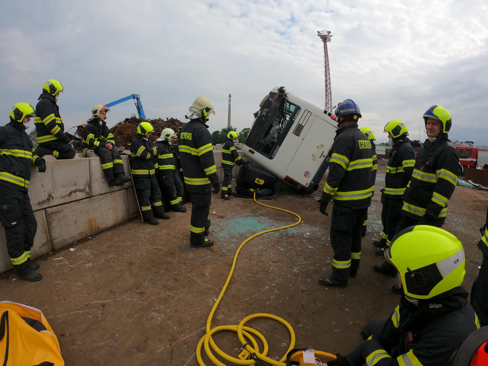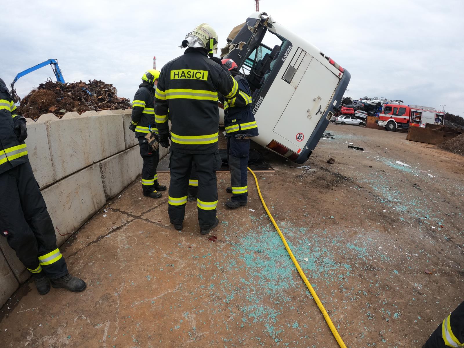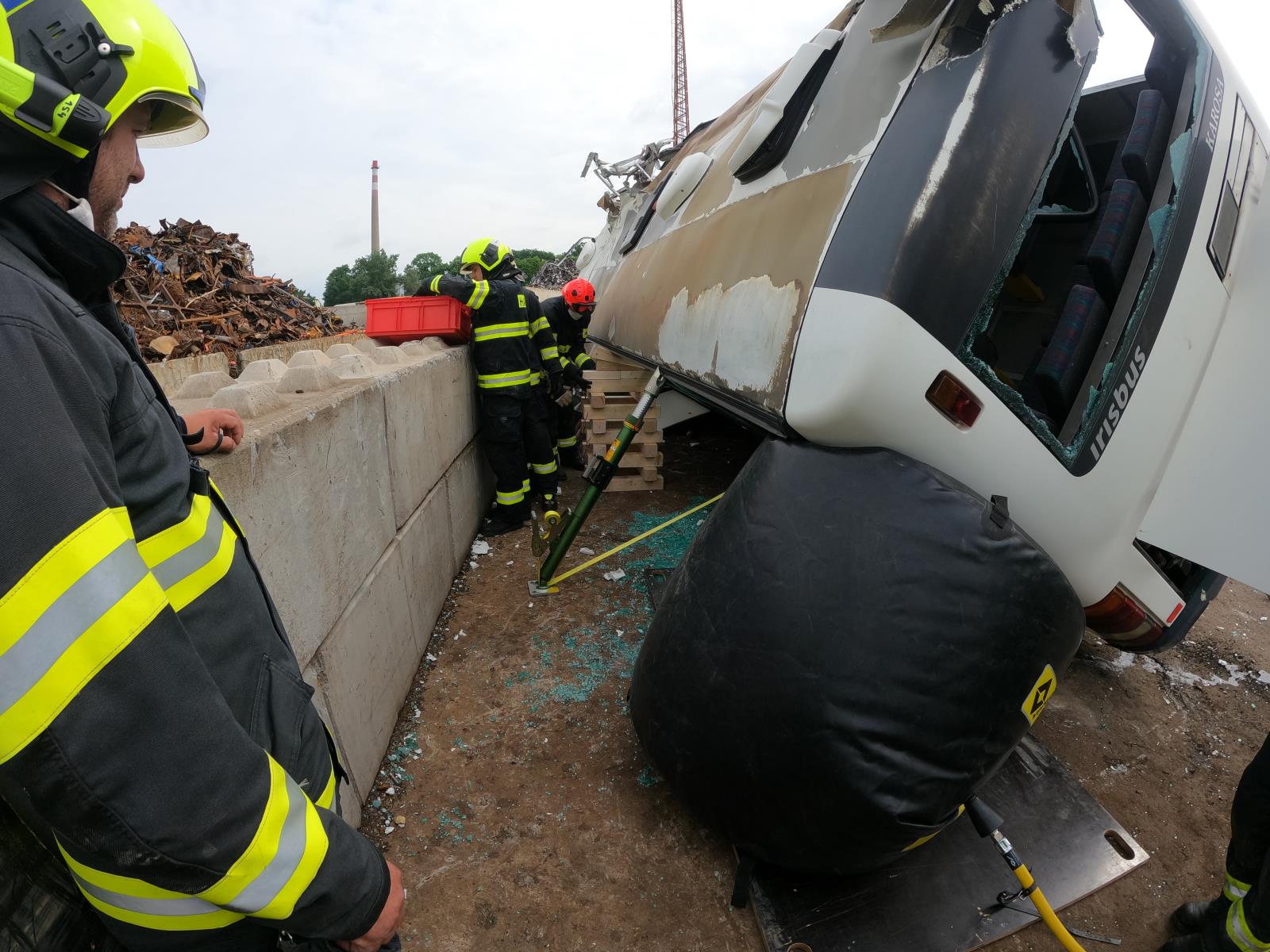 Poslední v řadě se uskutečnilo zaměstnání se zaměřením na vyprošťování z autobusu. Díky firmě Kovosteel Recycling s.r.o. se podařilo nasimulovat velmi obtížný, avšak reálný scénář dopravní nehody, kde si hasiči vyzkoušeli nejprve možnosti stabilizace velkého dopravního prostředku a následně vytvoření zásahových koridorů pro záchranu osob z útrob havarovaného vozu. V rámci výcviku bylo provedeno seznámení se s nově pořízenými technickými prostředky, kterými jsou například nízkotlaké zvedací vaky, které se ukázaly býti velmi dobrým pomocníkem při řešení dopravní nehody autobusu.