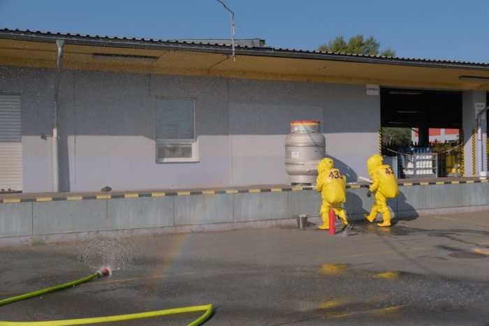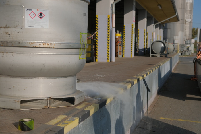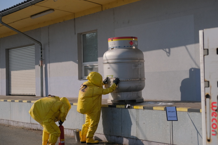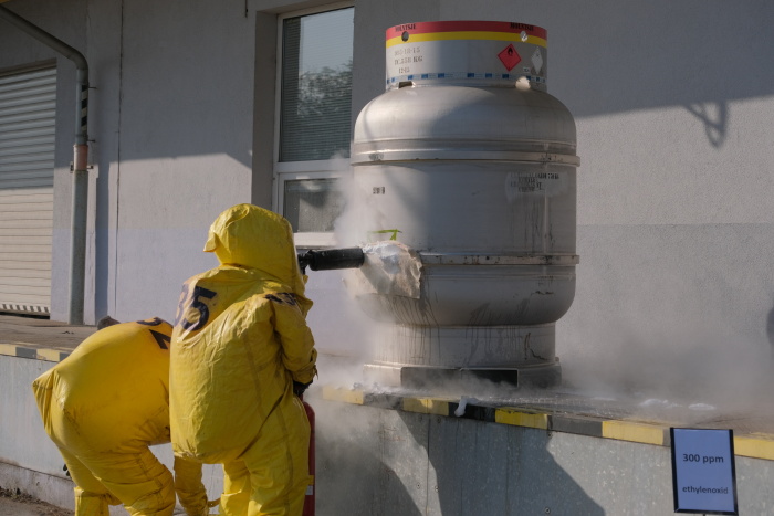 Hasiči skrápěli prostor kolem skladu toxických plynů kvůli zamezení šíření toxického oblaku do okolí a naředění ethylenoxidu. Pomocí bandáže, kterou mj. nejprve ochlazovali sněhovým hasicím přístrojem, zabránili dalšímu úniku ethylenoxidu z poškozeného pláště zásobníku. Všichni museli nakonec projít dekontaminačními sprchami.