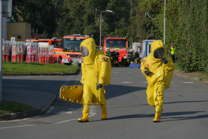 Tři desítky profesionálních a dobrovolných hasičů a s nimi dvě desítky příslušníků Policie ČR, Městské policie Ostrava, pracovníků Zdravotnické záchranné služby MSK a zaměstnanců firmy Linde se zapojily v úterý 22.9.2020 dopoledne do taktického cvičení integrovaného záchranného systému (IZS) v areálu firmy Linde Gas, a.s., výrobně distribučního centra Ostrava v Ostravě-Hrabové. Simuloval se zde únik toxického plynu ethylenoxidu z poškozeného zásobníku.