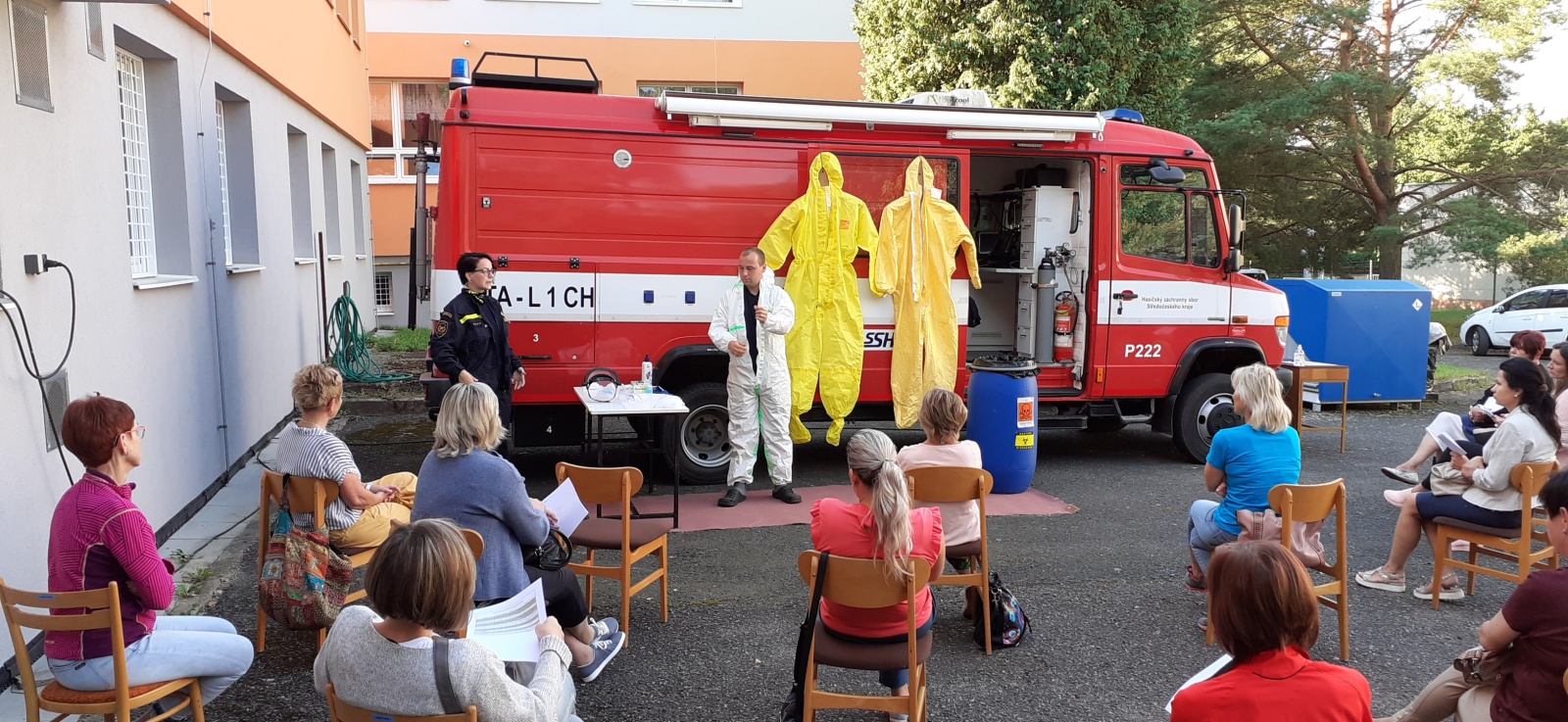Ve středu 16. září proběhla v areálu Školicího střediska a chemické laboratoře HZS Středočeského kraje v Kamenici v okrese Praha-východ instruktáž pro pracovníky sociálních zařízení zaměřená na správné používání individuálních ochranných prostředků.