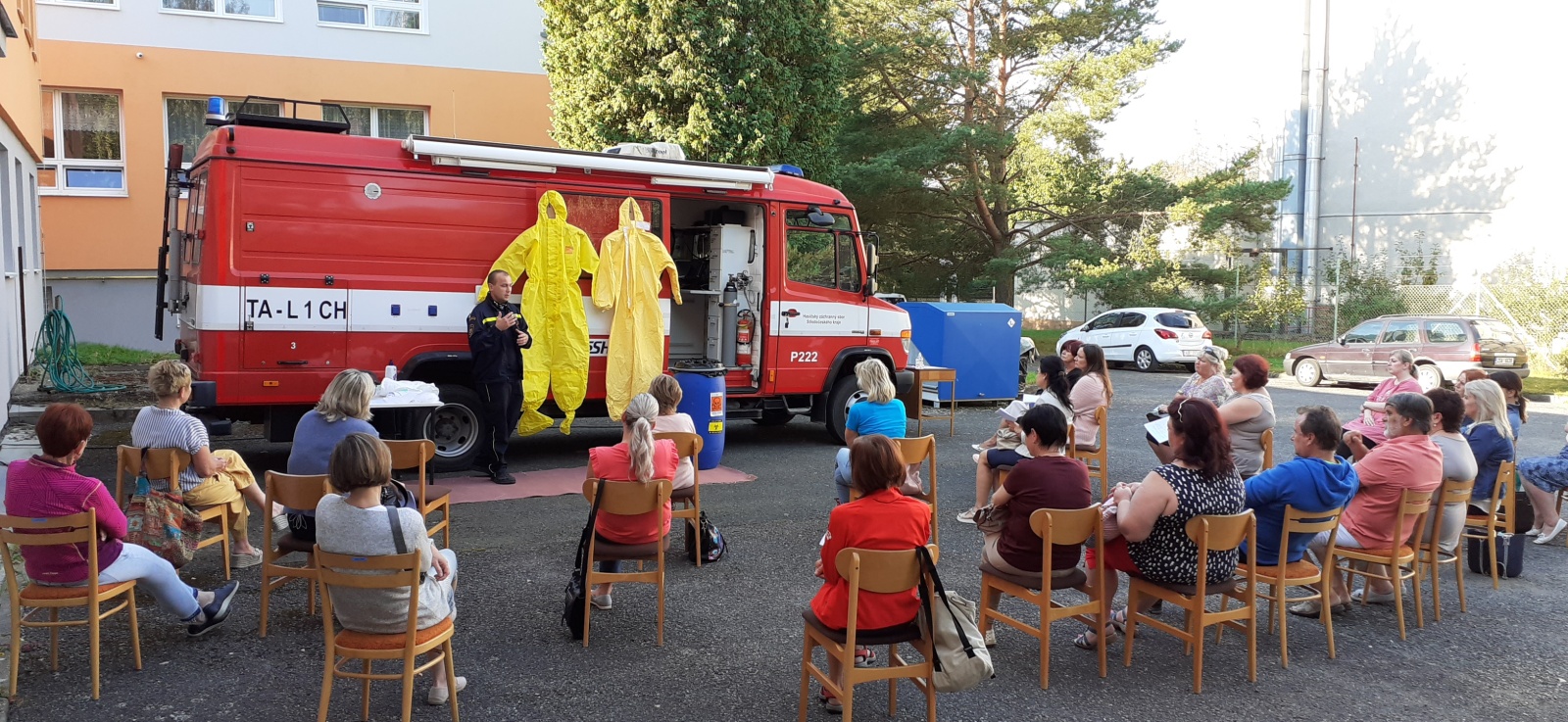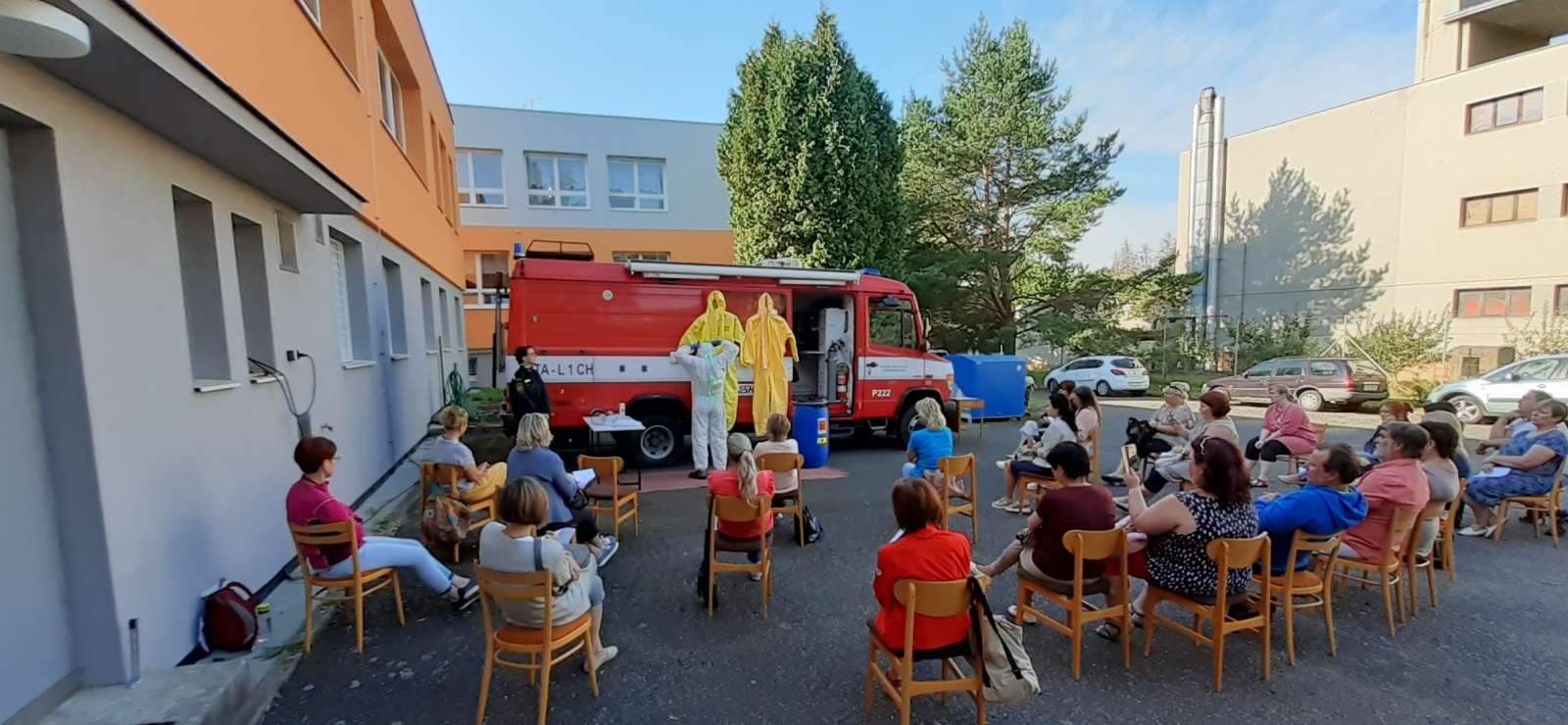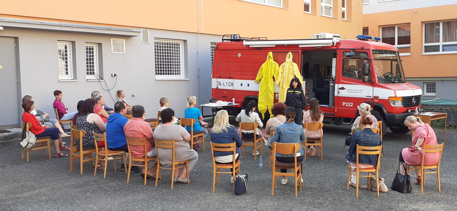 Ideální počasí umožnilo uspořádat školení venku, takže byl dostatečný prostor k dodržení rozestupů a všech nutných hygienických opatření. Mnozí z proškolovaných si pořizovali fotografie a videa, protože hlavní částí programu byla praktická ukázka, ve které příslušníci školicího střediska názorně předváděli, jak se osobní ochranné prostředky správně používají.