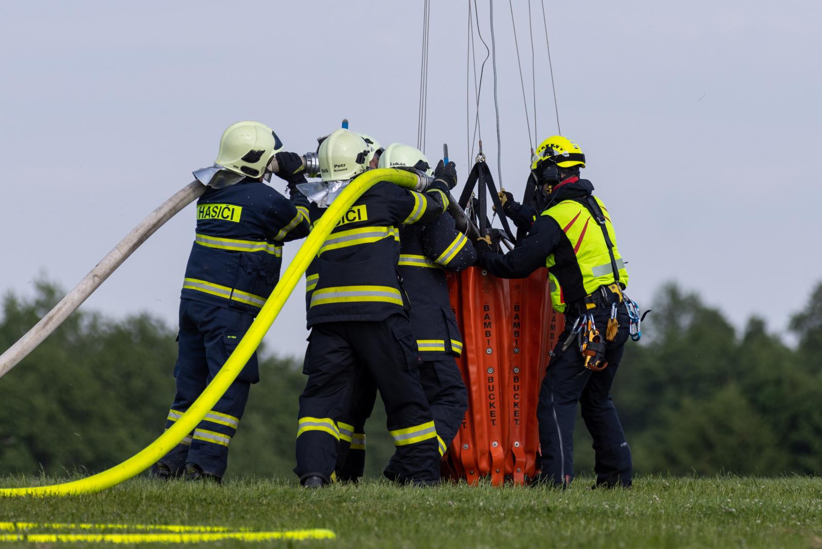 Profesionální a dobrovolní hasiči ve spolupráci s Leteckou službou Policie České republiky, která pro účely výcviku poskytla vrtulník, procvičili součinnost při provádění leteckého hašení. To nachází uplatnění při likvidaci požárů v nepřístupném terénu. V praxi bylo využito v poslední době například při hašení nejrozsáhlejšího přírodního požáru v historii České republiky – požáru v Českém Švýcarsku v létě minulého roku.