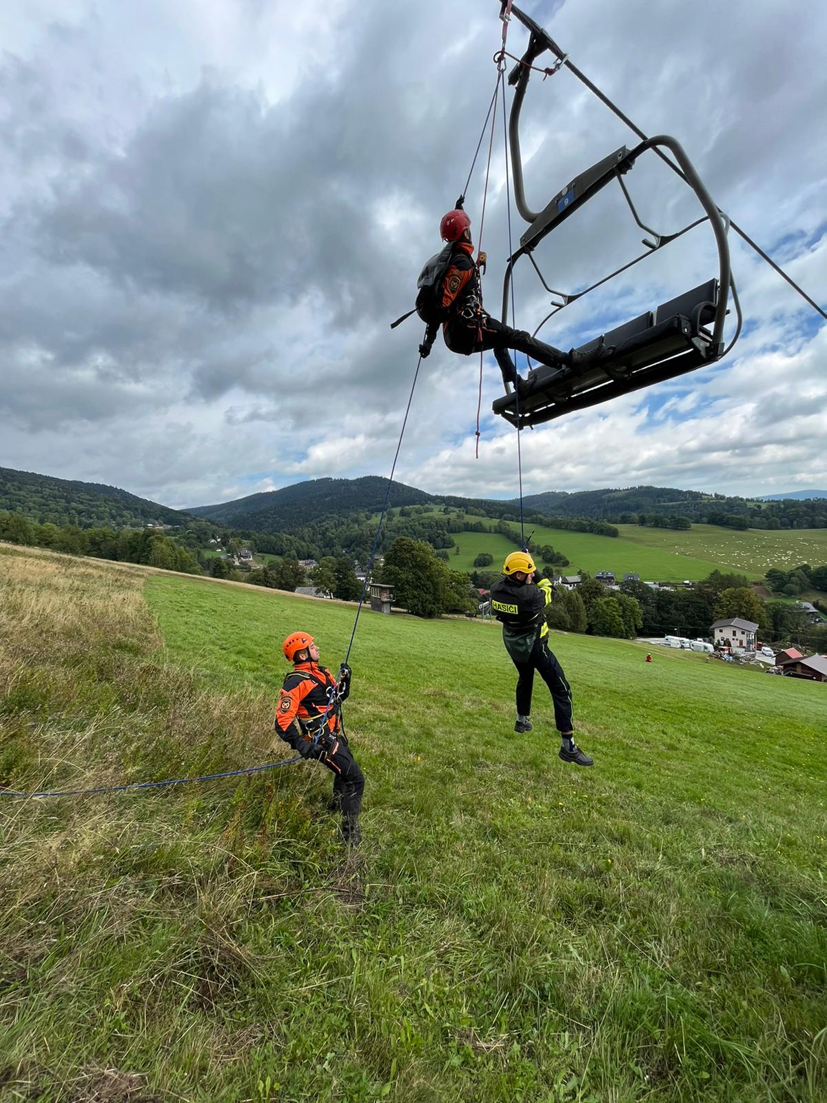 Cílem výcviku tak bylo koordinovat postup záchrany našich lezeckých družstev a skupin s leteckými záchranáři a vyzkoušet si výsadky přímo na sloupy lanovky či na sjezdovku. Zároveň jsme cvičili také postupy při spouštění jednotlivých osob ze sedaček, pohyb lezců na ocelových lanech a práci s mechanismy různých typů lanovek. Díky spolupráci s provozovateli lyžařských středisek jsme tentokrát vyzkoušeli zásahovou činnost v areálech v Kunčicích a v nedalekých Hynčicích pod Sušinou.